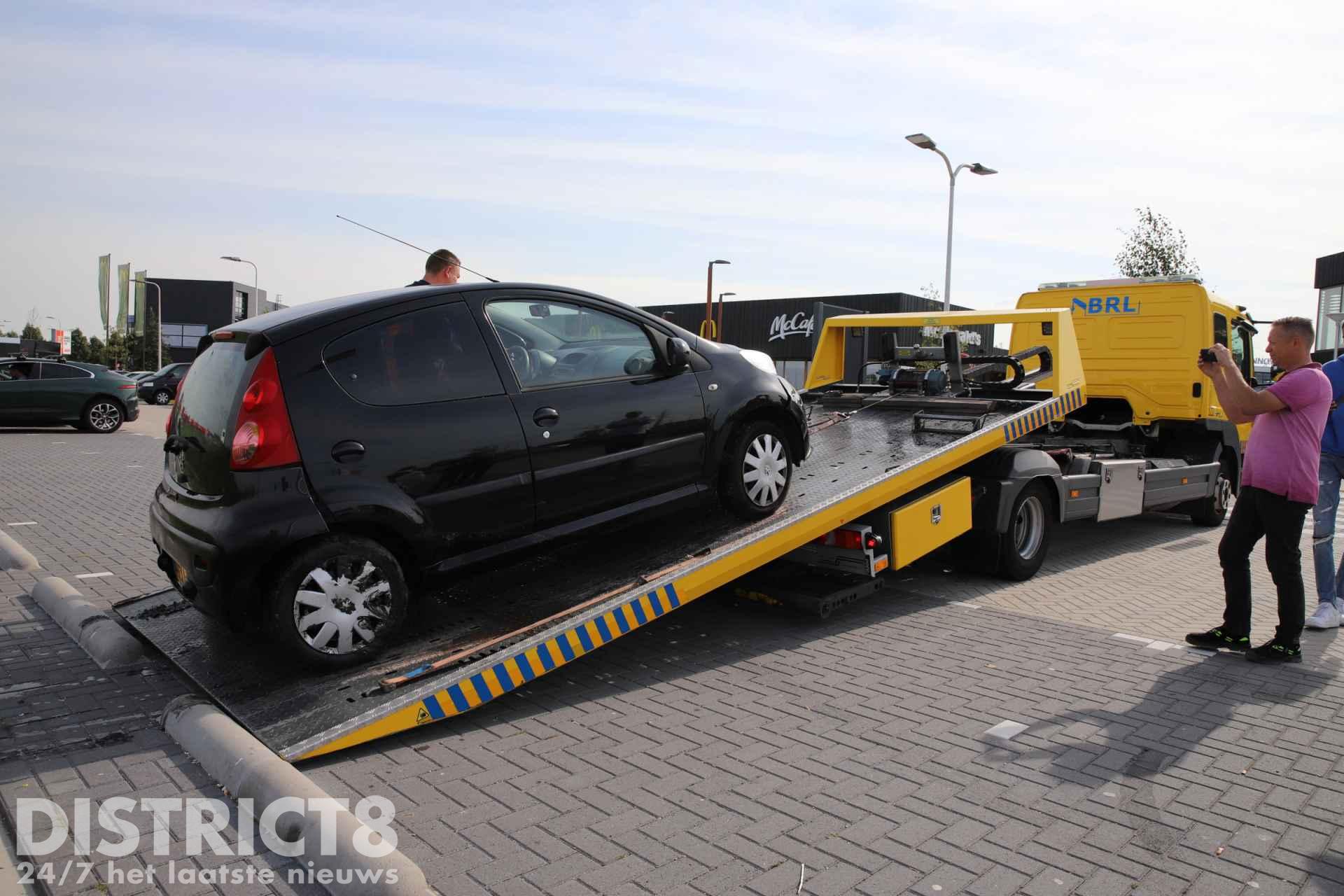Den Hoorn – Op het parkeerterrein van het Foodpark aan de Hogenhoorn in Den Hoorn is een parkeeractie dinsdagmiddag niet helemaal goed verlopen. Nadat de automobilist zijn plekje had gevonden vergat hij de handrem.