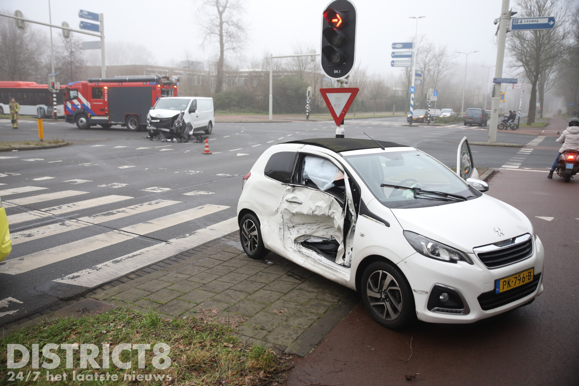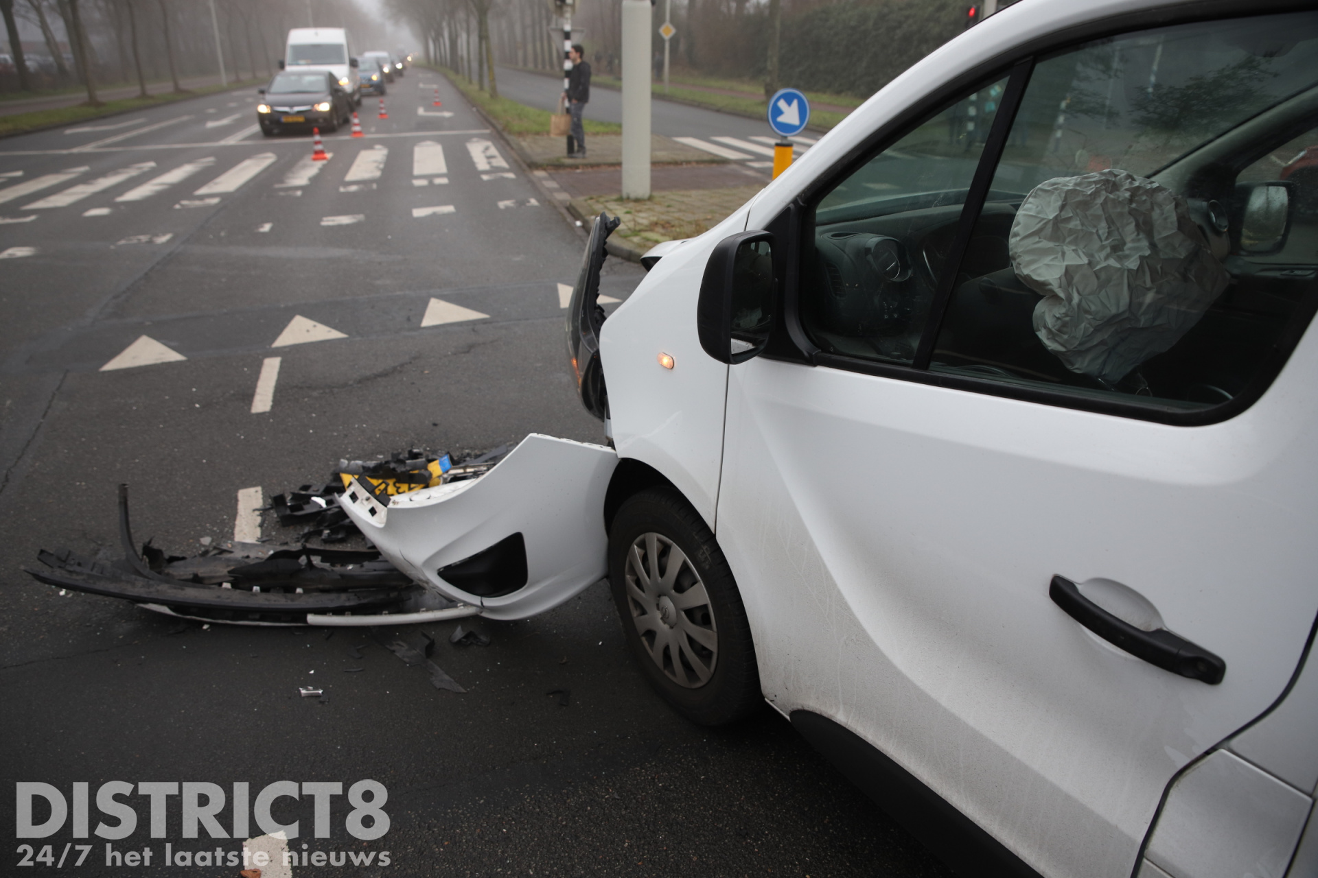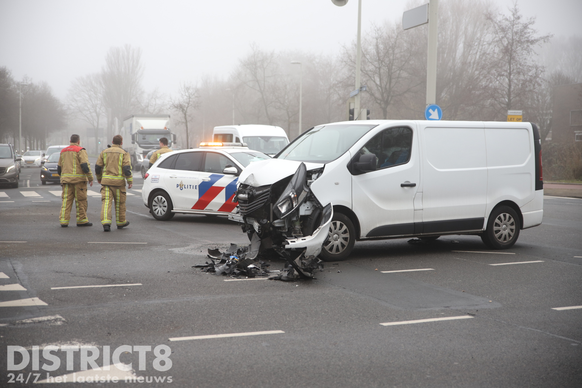Den Haag – Op de kruising van de Escamplaan en de Houtwijklaan in Den Haag heeft dinsdagmiddag 21 januari een aanrijding plaatsgevonden. Bij het ongeval waren een auto en een busje betrokken.