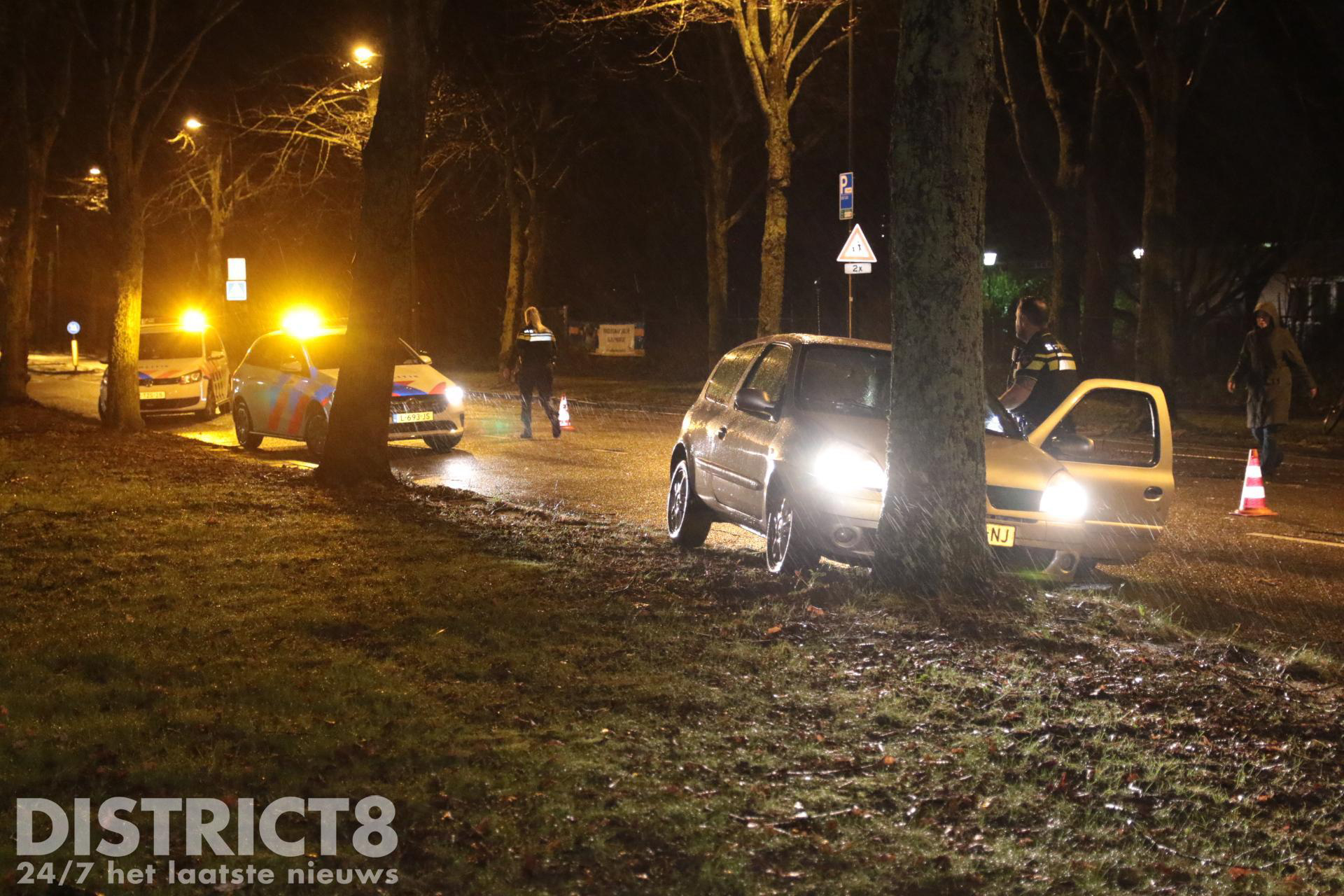Even na middernacht ging het mis. De automobilist raakte door nog onbekende oorzaak van de weg en knalde tegen de boom.