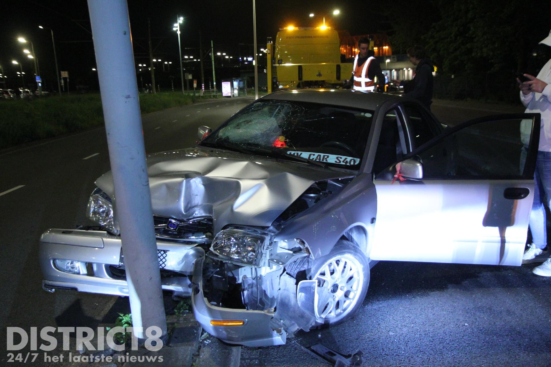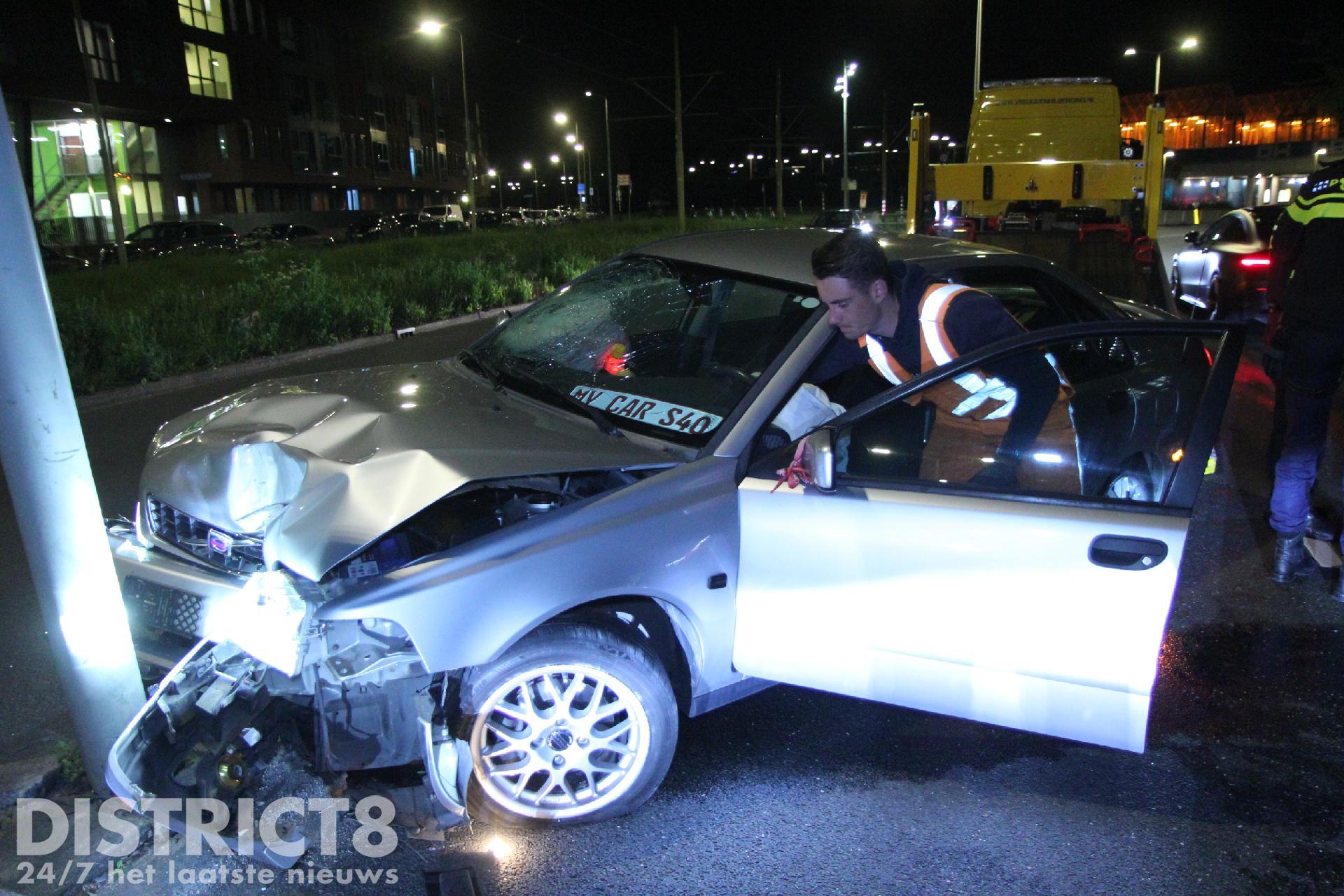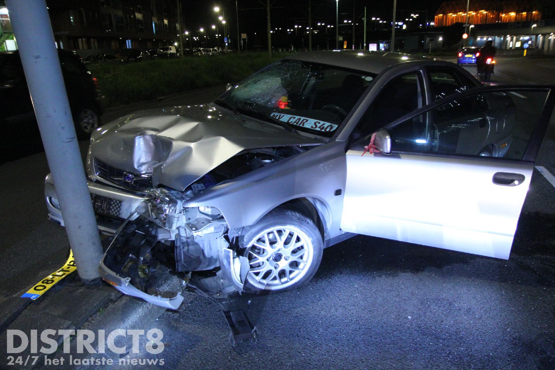 Automobilist gewond na knal tegen lichtmast Hildebrandplein Den Haag