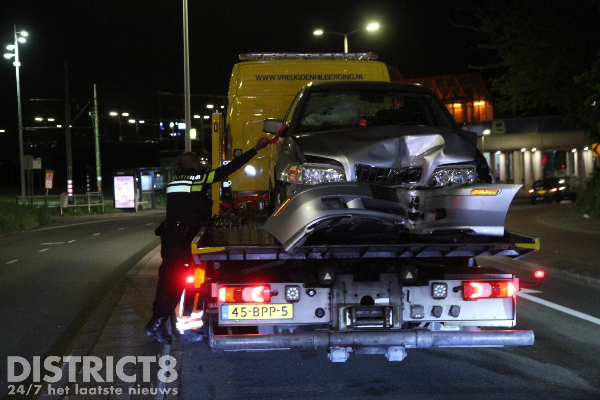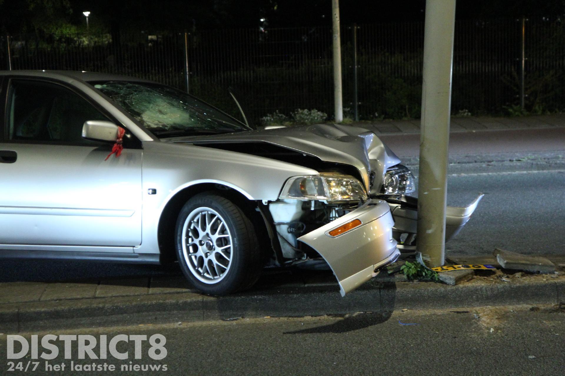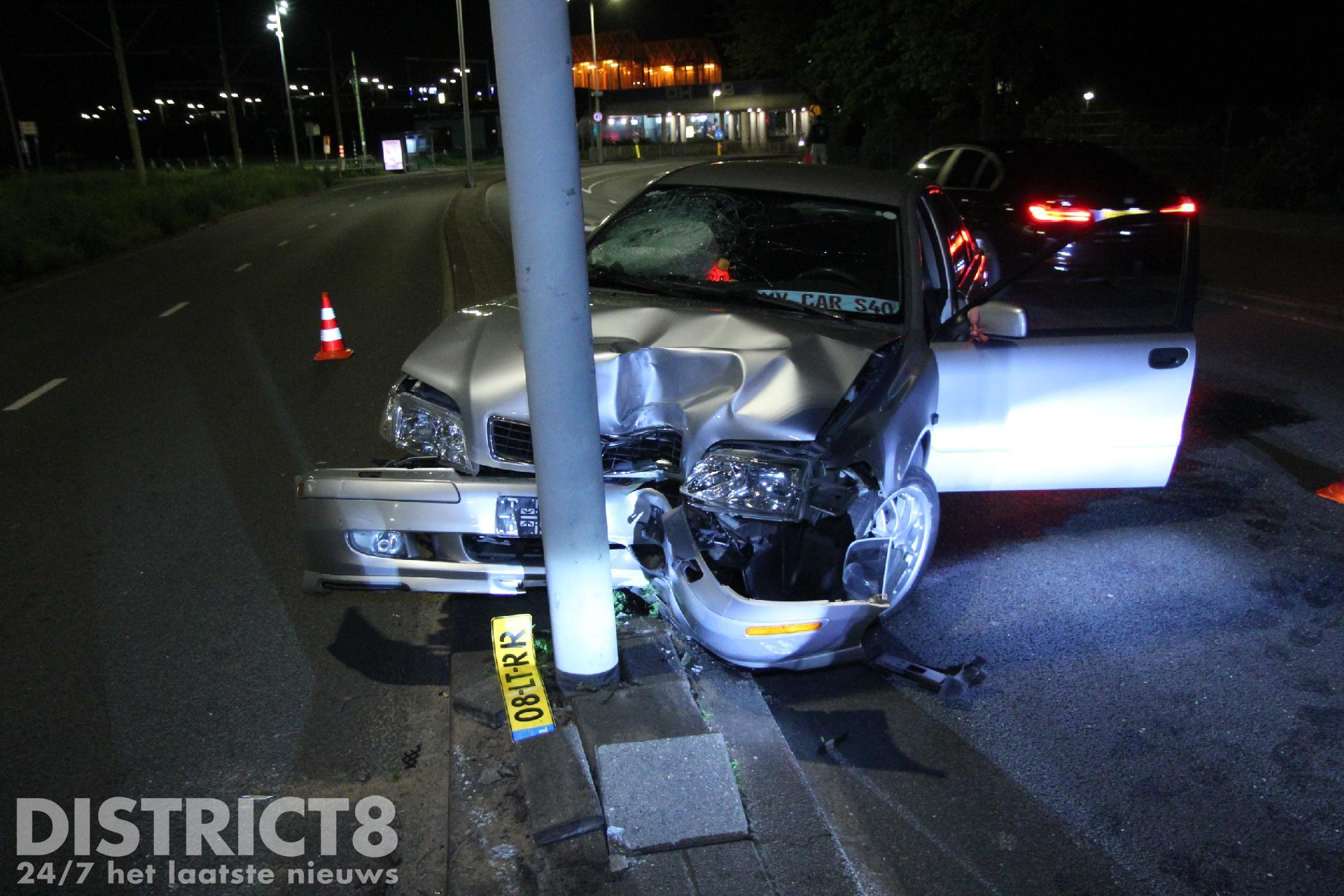 Automobilist gewond na knal tegen lichtmast Hildebrandplein Den Haag