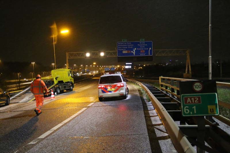 De rijbaan vanaf de A12 (Den Haag) richting de A4 (Rijswijk) is volledig afgesloten.