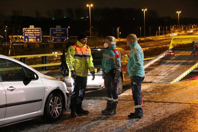 Een ambulance kwam met spoed ter plaatse. Het ambulancepersoneel heeft de bestuurder onderzocht in de ambulance, vervoer naar het ziekenhuis bleek niet noodzakelijk.