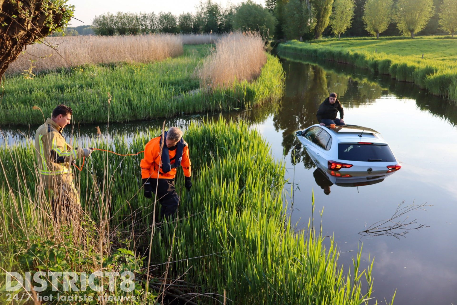 De politie is inmiddels ter plaatse, omdat de man nog steeds op het dak van zijn auto zit is de brandweer ter plaatse gevraagd om hem met een ladder van het dak te halen. Uiteindelijk kon de automobilist met een ladder zelf van het dak af klimmen, hij raakte niet gewond.