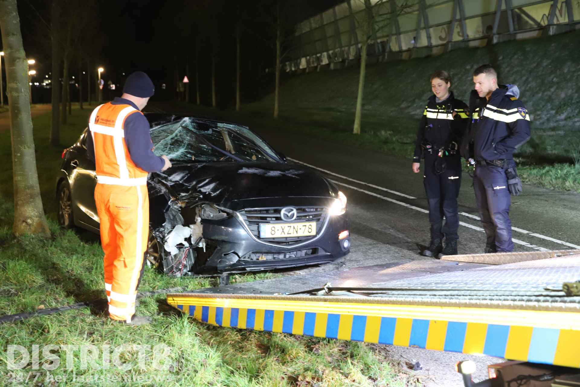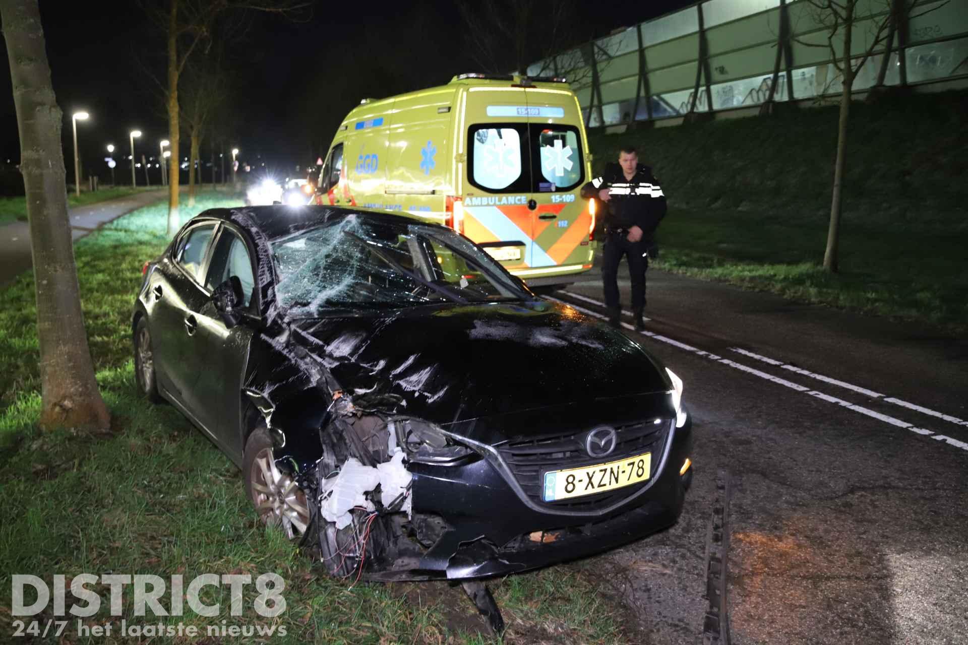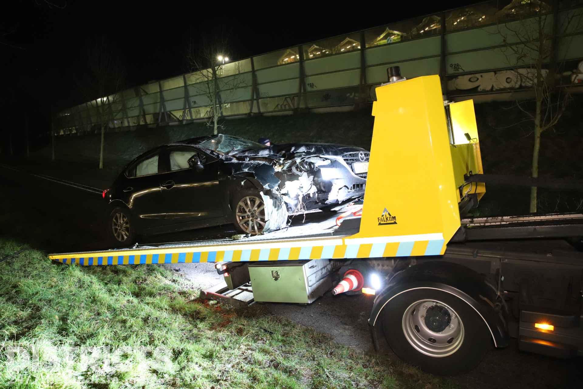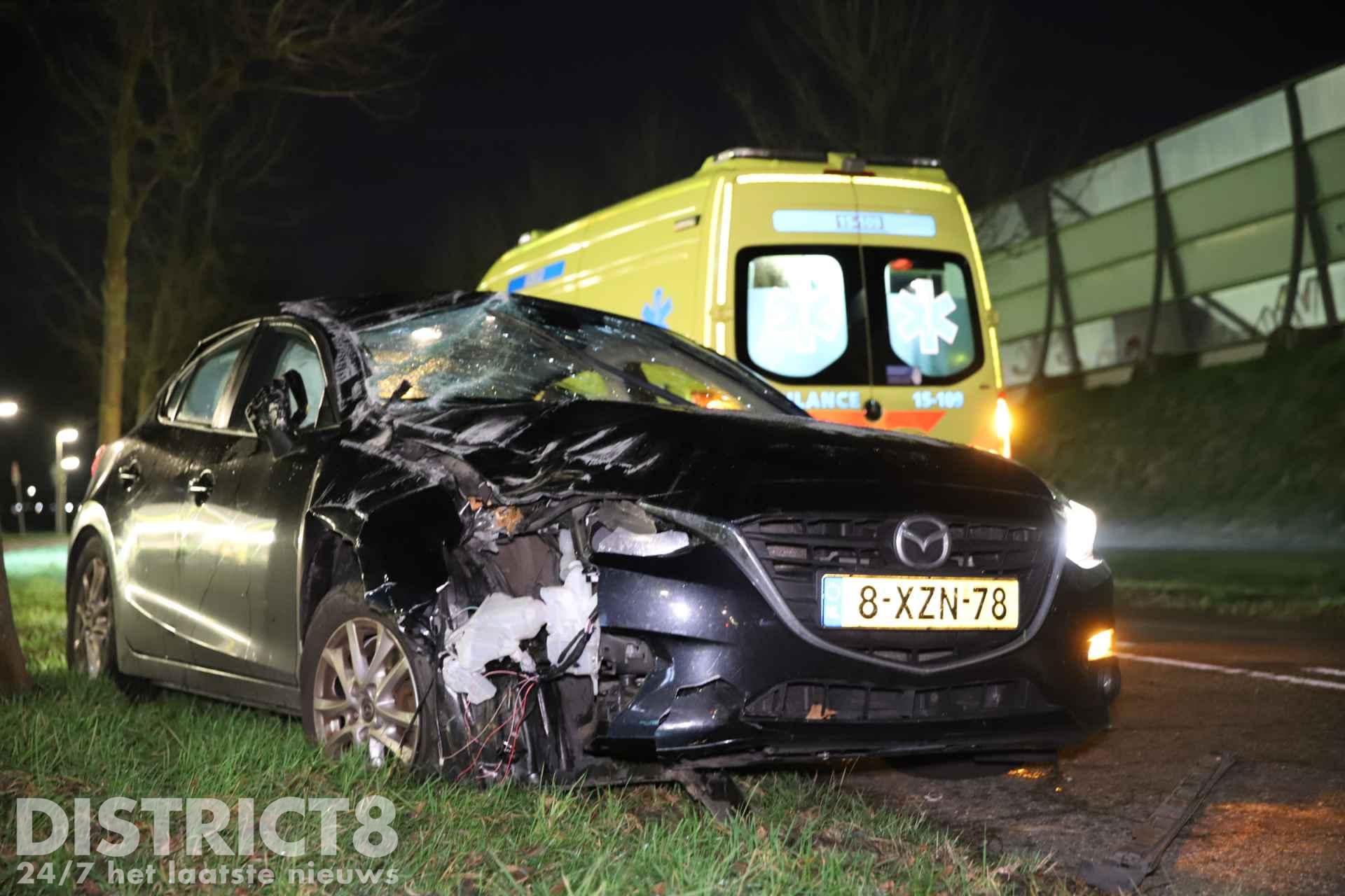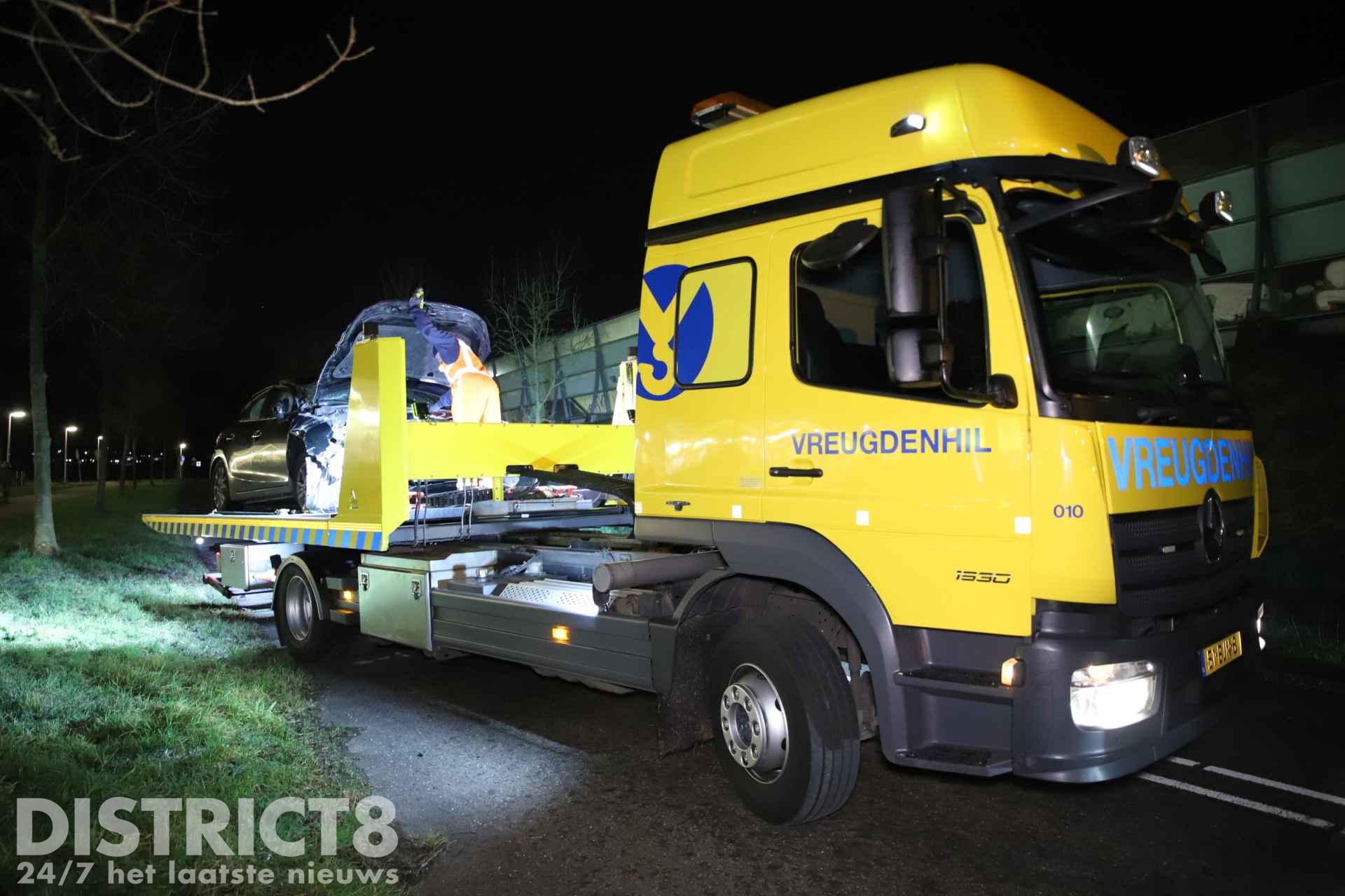 De schade aan het voertuig is fors en zal worden afgesleept door Vreugdenhil.