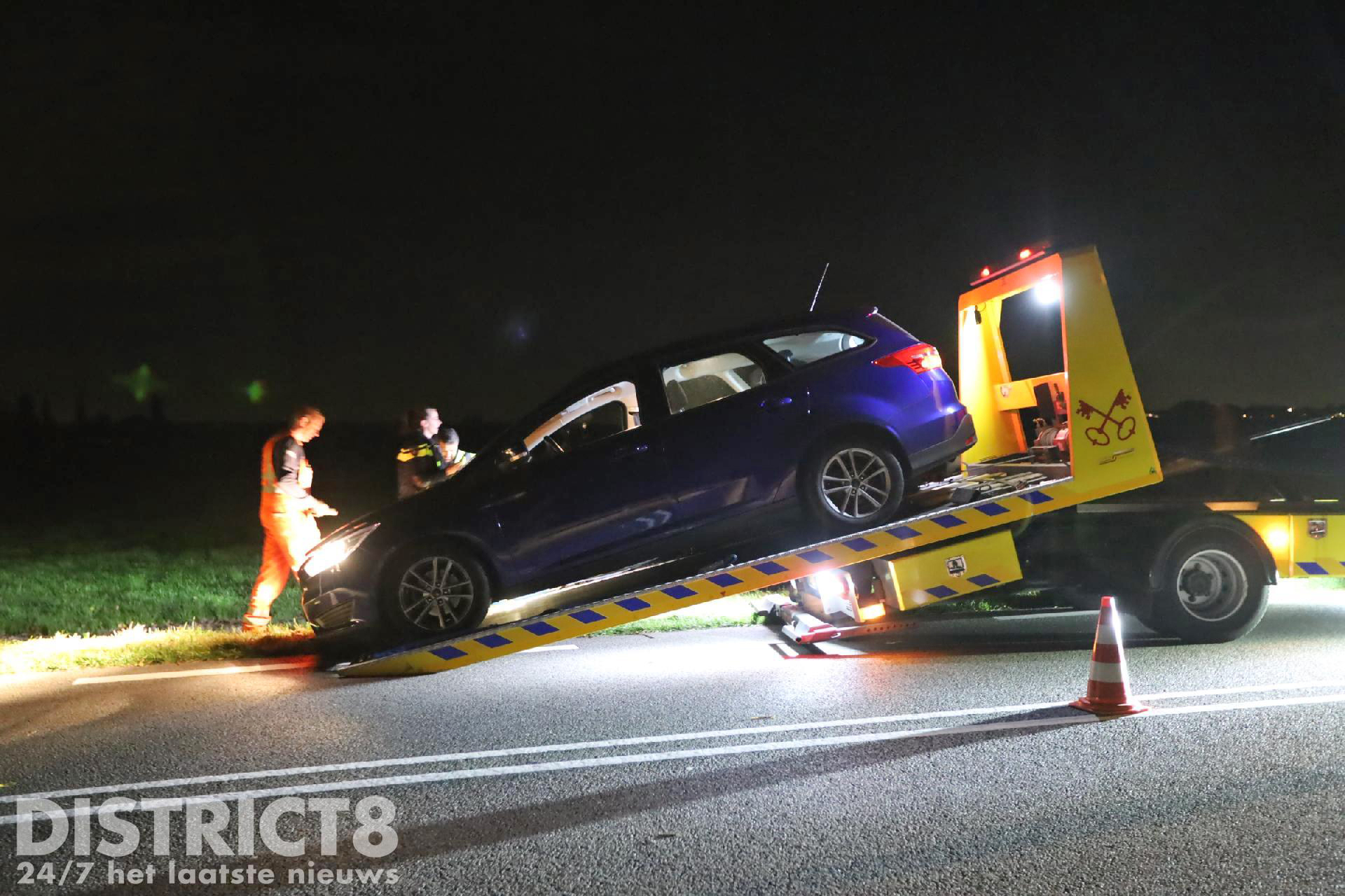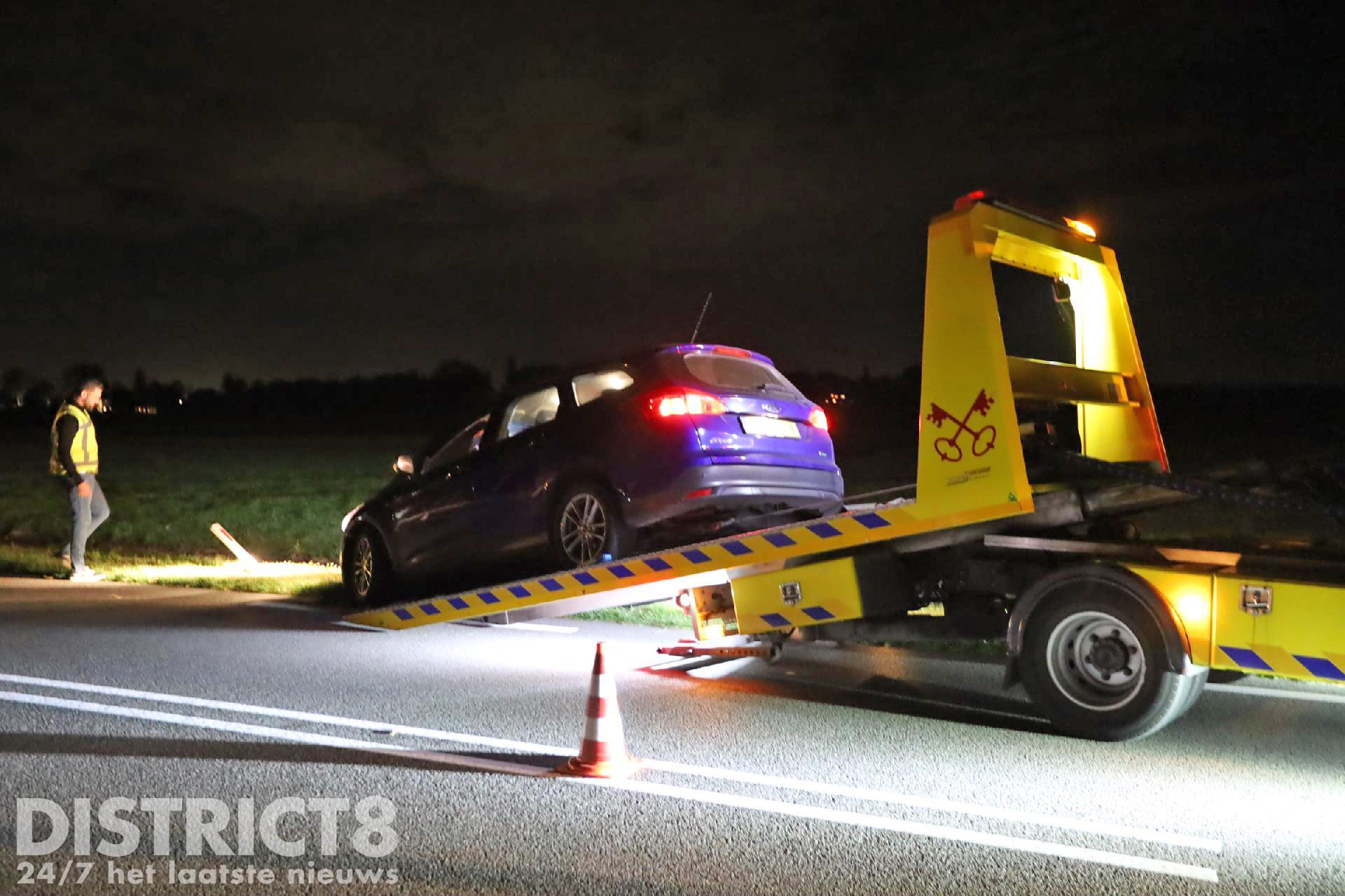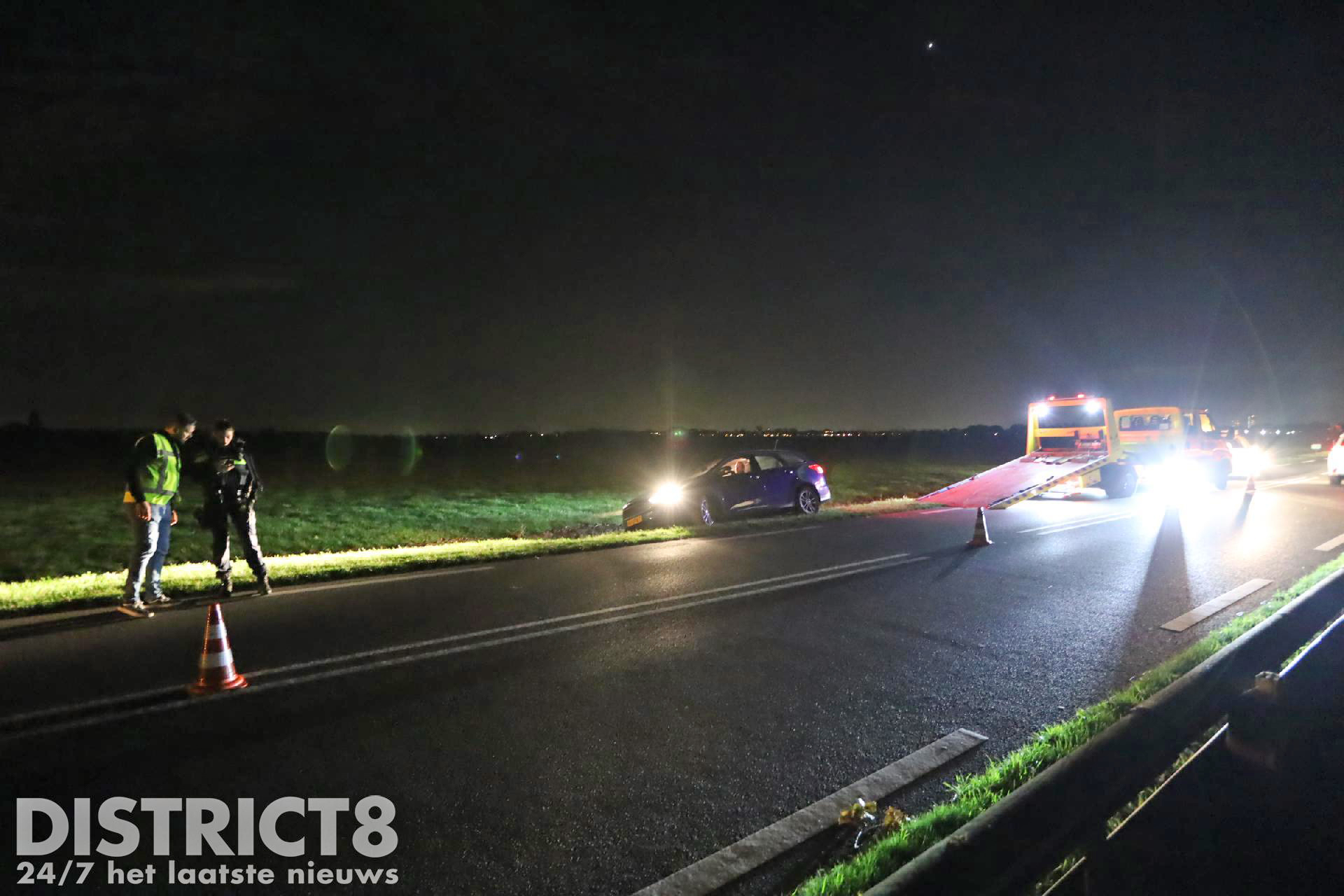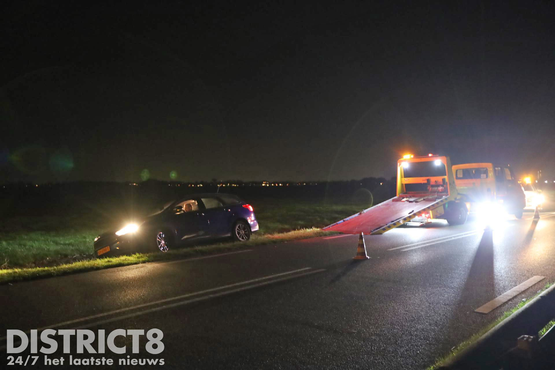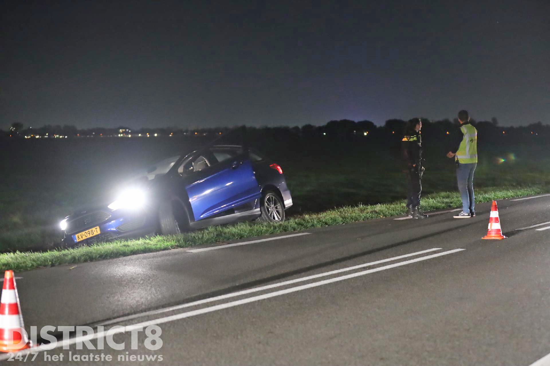 Even na acht uur ging het mis. De automobilist kwam door nog onbekende oorzaak in de berm terecht met zijn auto. De auto kwam daarbij snel tot stilstand. Een voorbijganger belde direct 112. Omdat er mogelijk sprake was van het feit dat de auto in het water zou liggen werd ook de brandweer opgeroepen. Voor de melding Voertuig te water worden in de regio meerdere brandweerkorpsen gealarmeerd. Dit is protocol.