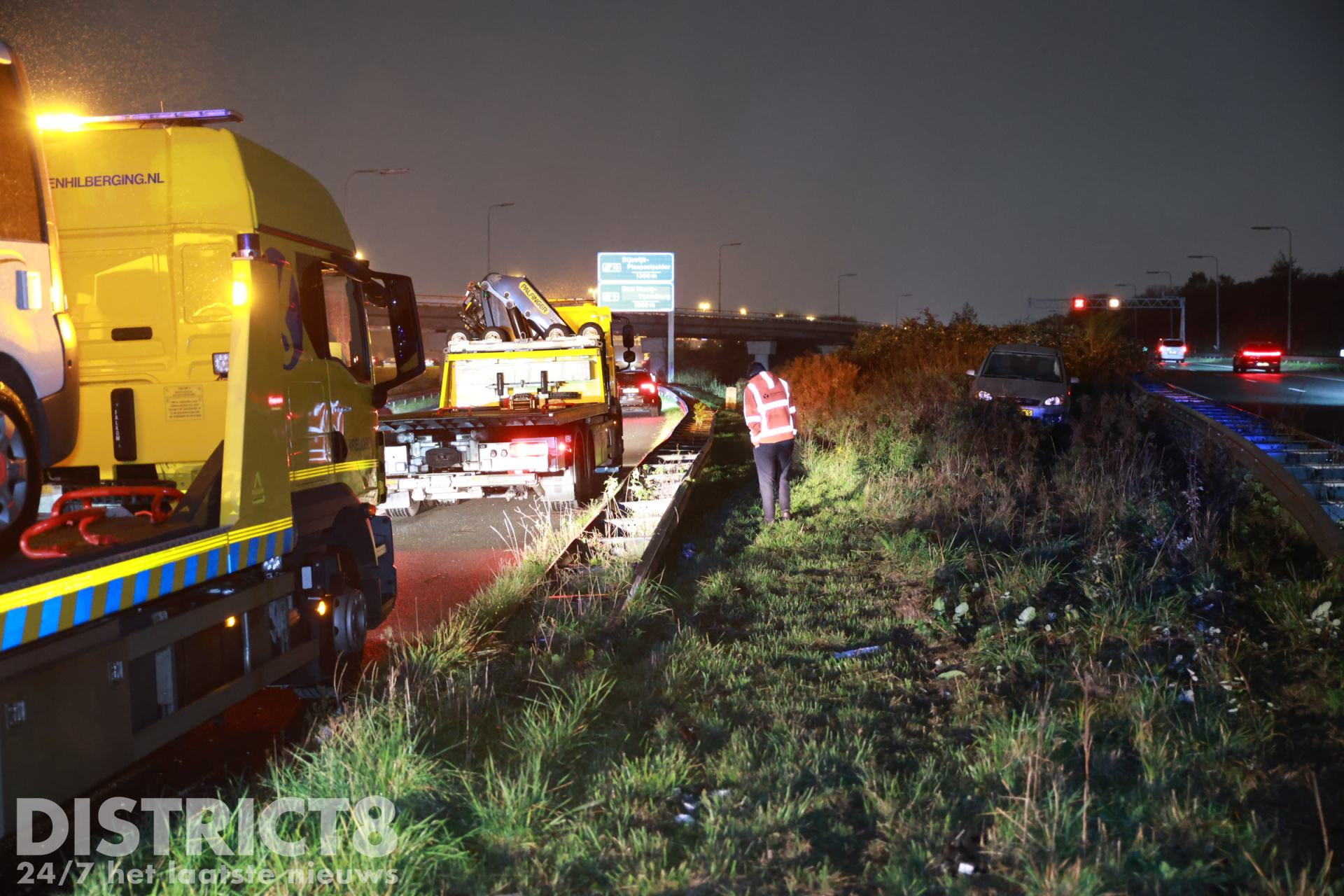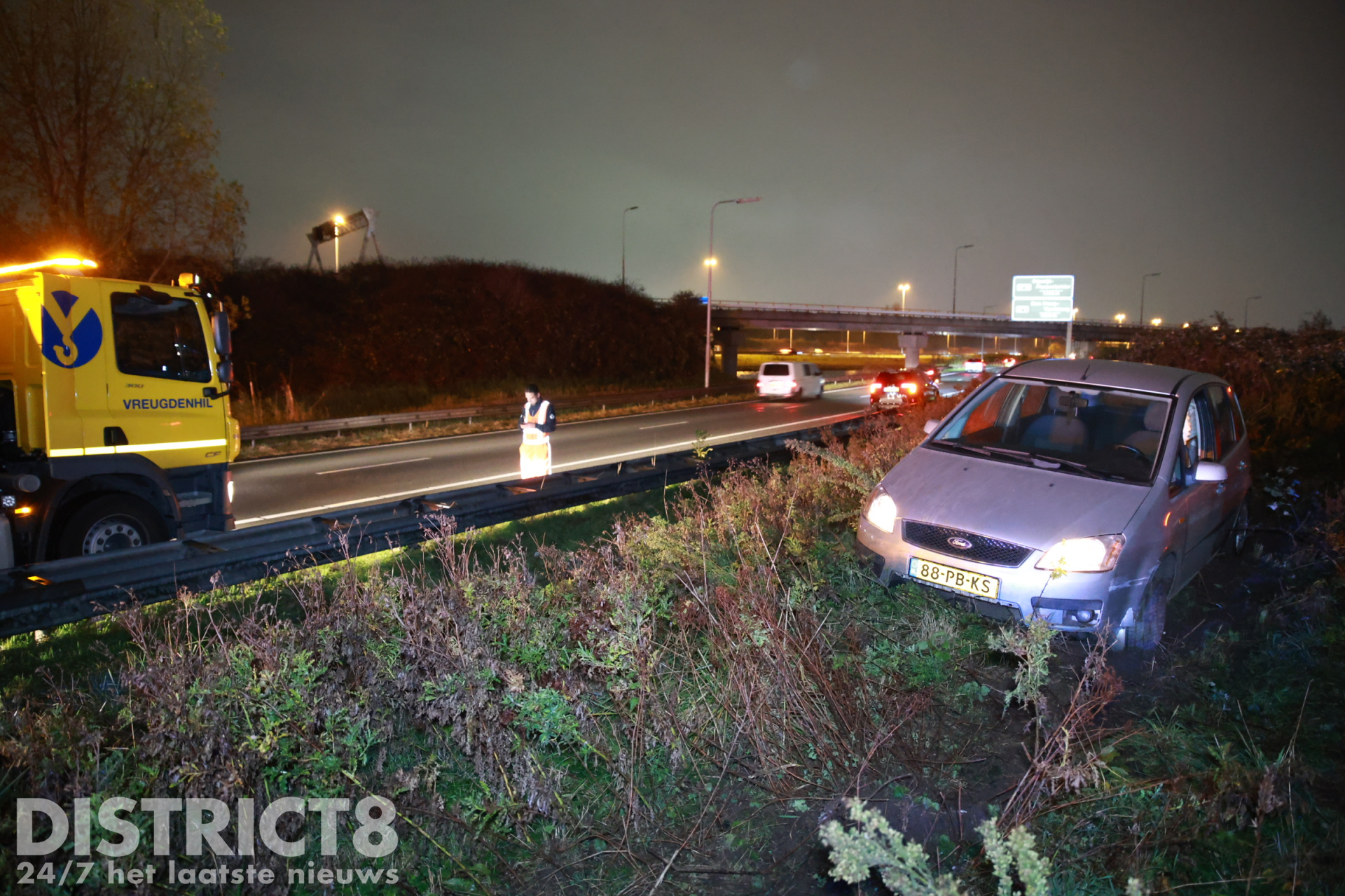 Den Haag – Op de A12 is maandagavond een automobilist in de berm terechtgekomen ter hoogte van de splitsing richting de A4 en A13.