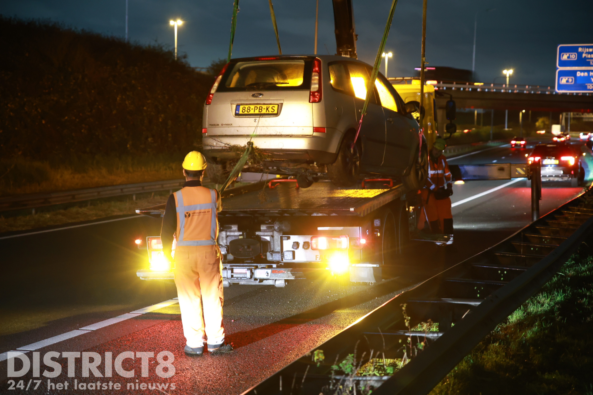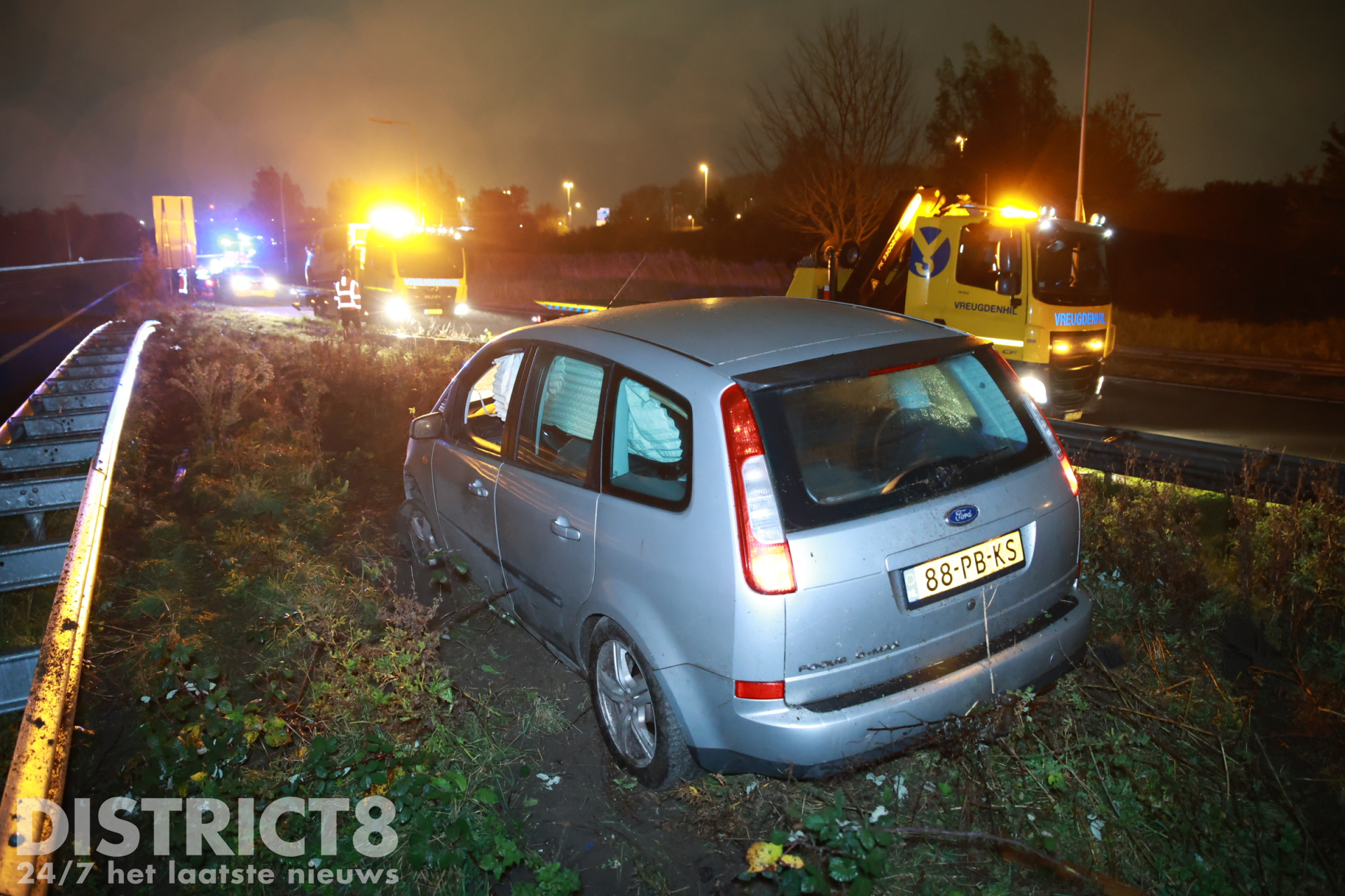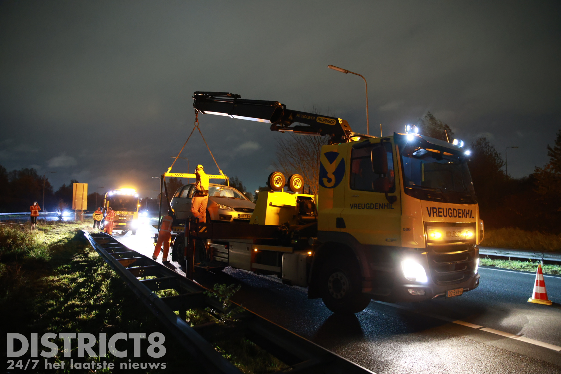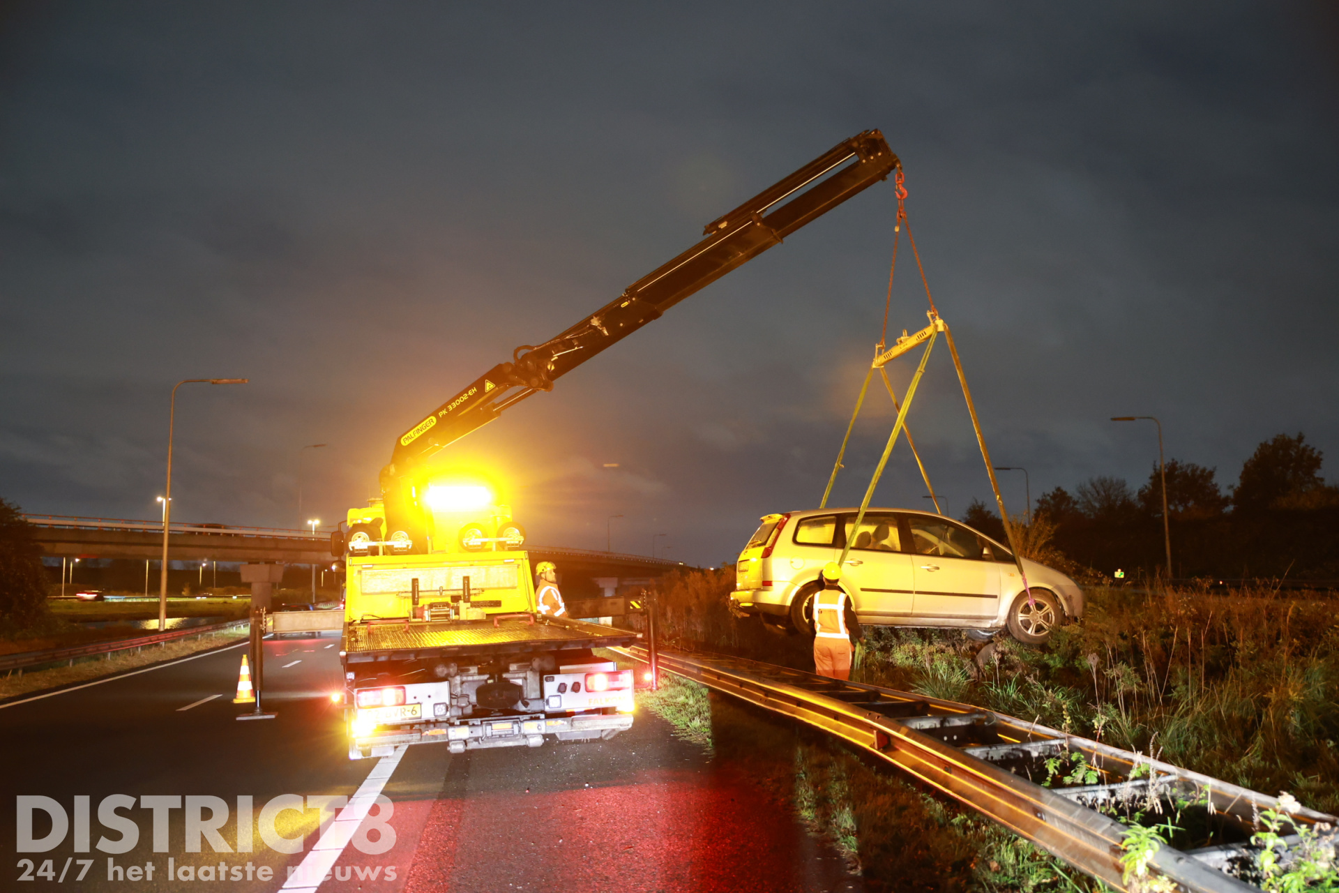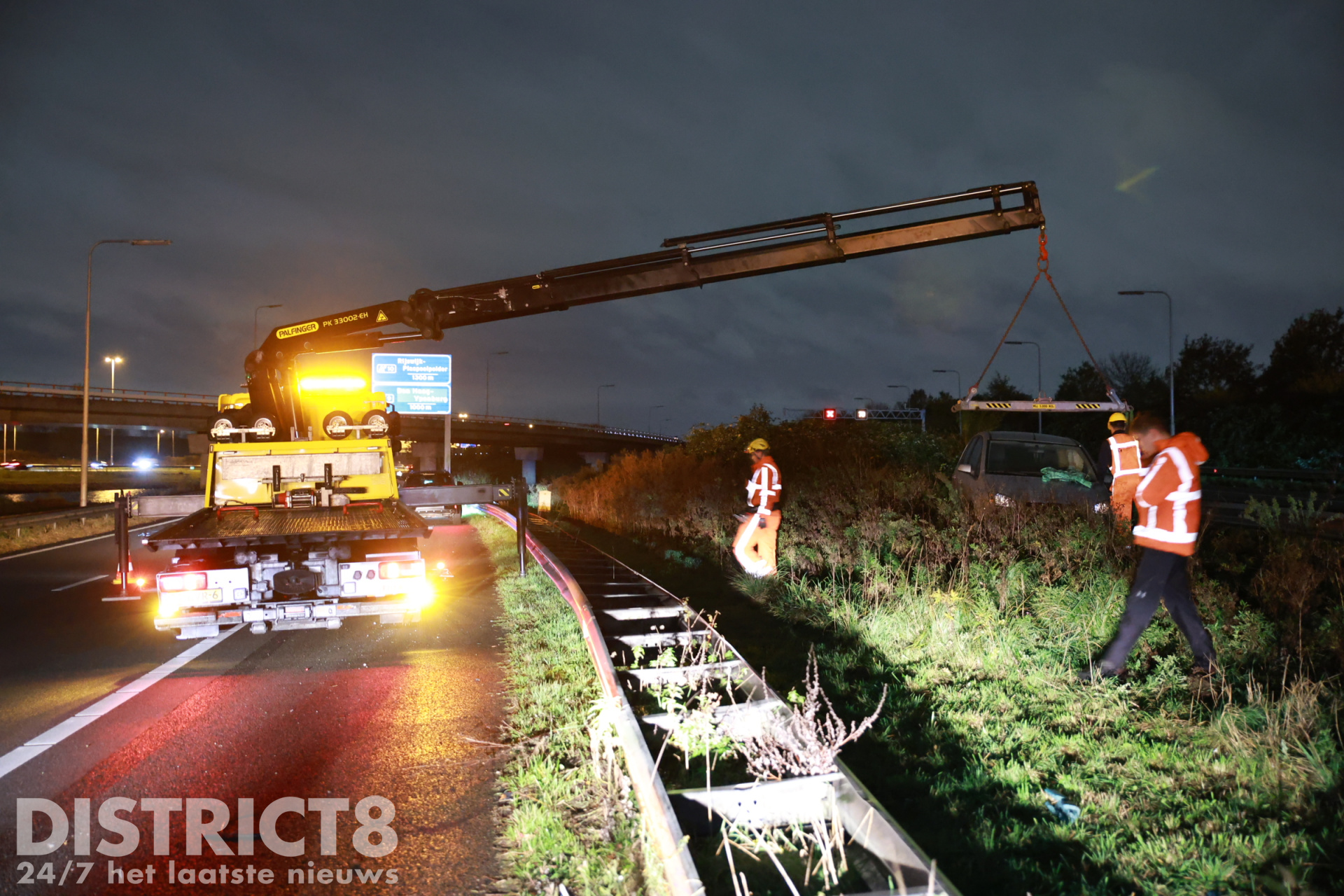 Bij het incident raakte niemand gewond. De auto is door een bergingsdienst uit de berm gehaald.