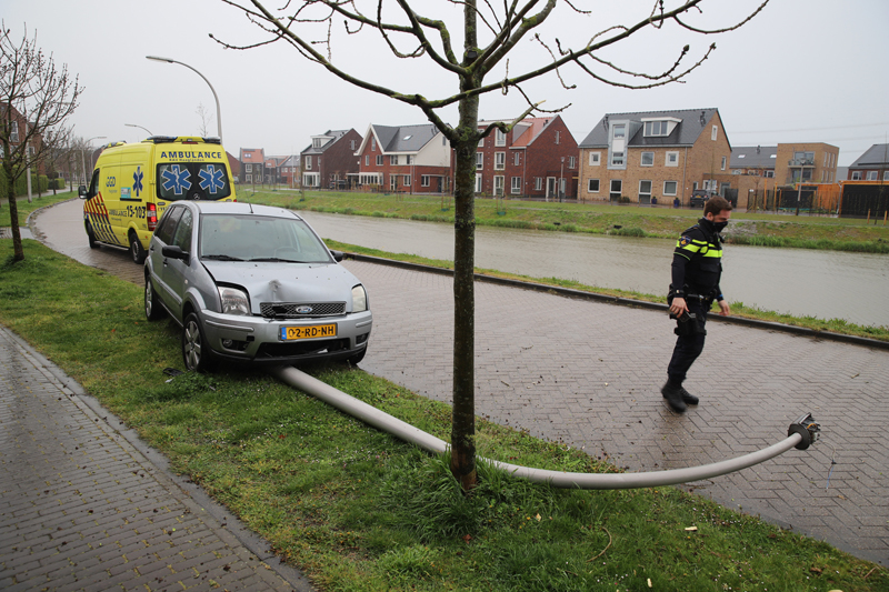De auto raakte door het ongeval aan de voorzijde beschadigd. Hoe het eenzijdige ongeval heeft kunnen gebeuren is niet bekend.