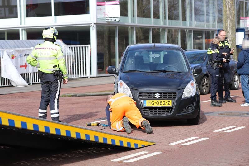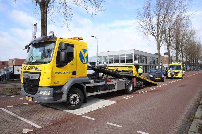 Bergingsbedrijf Vreugdenhil is ter plaatse om de personenauto af te slepen.