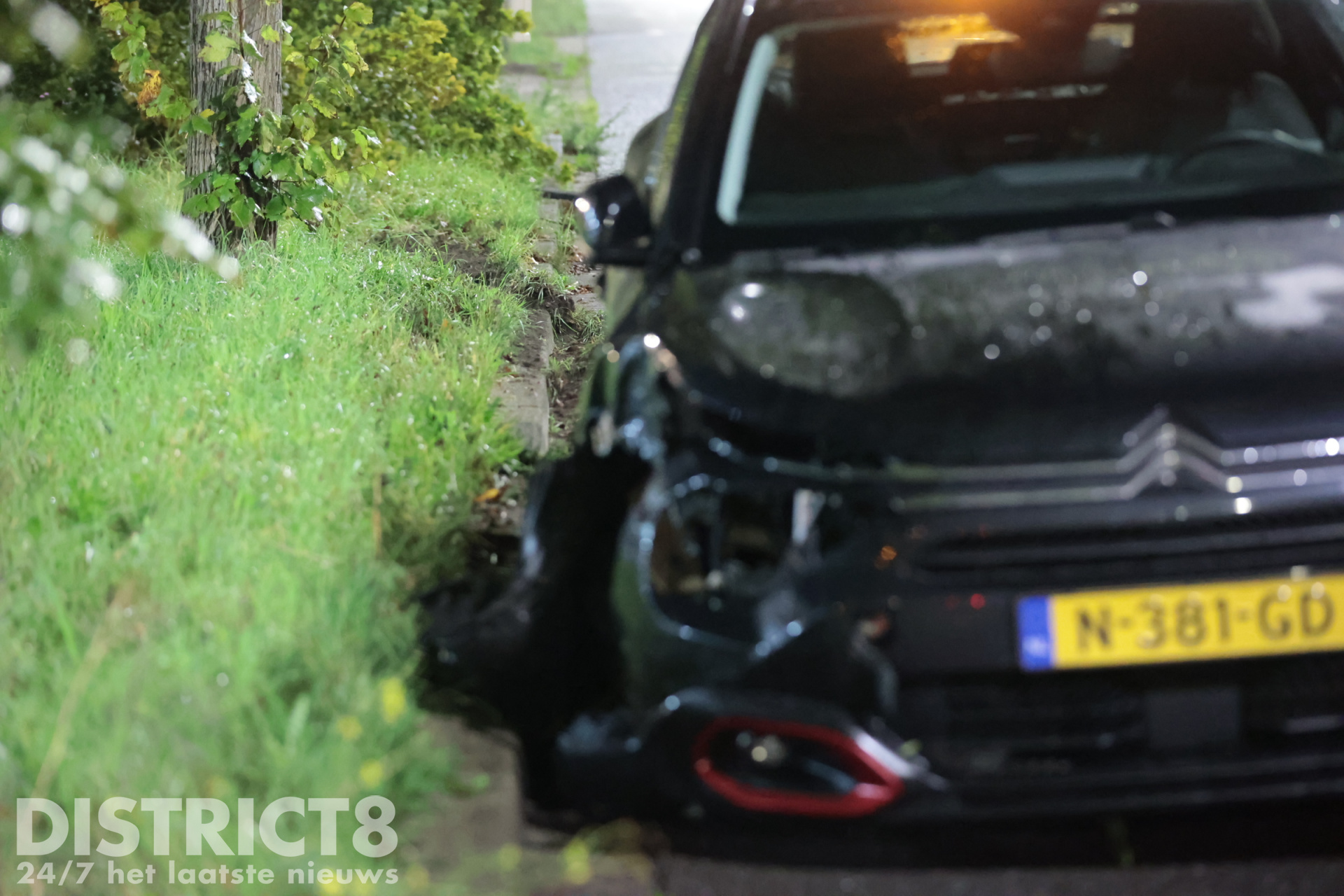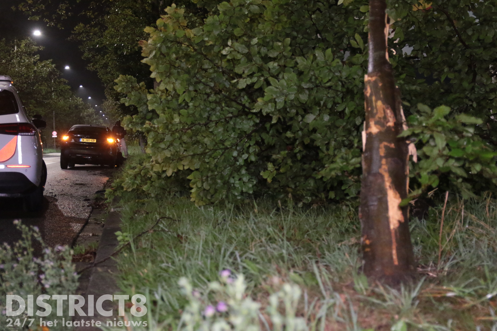 Een automobilist raakte van de weg en ramde een boom, deze brak hierna af. De auto kwam enkele meters verderop tot stilstand.