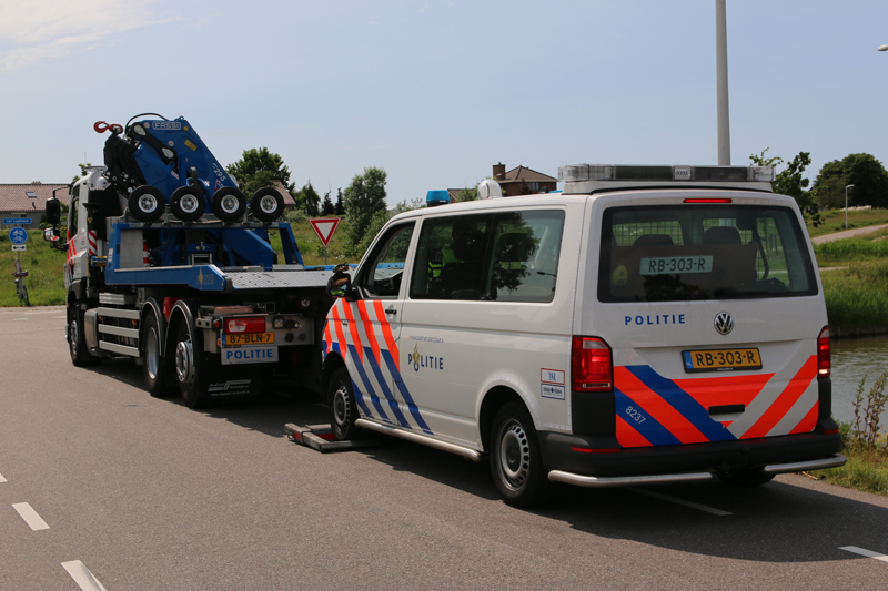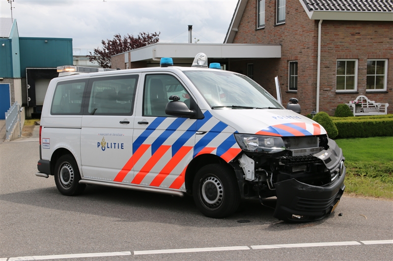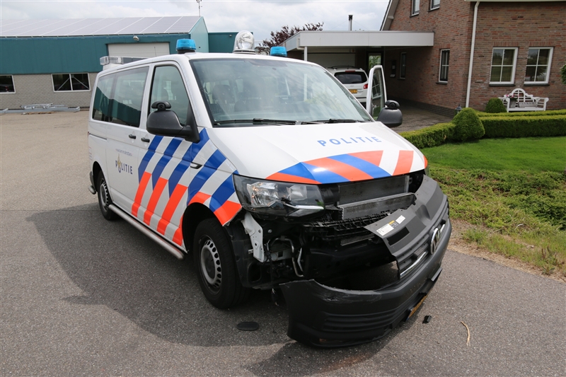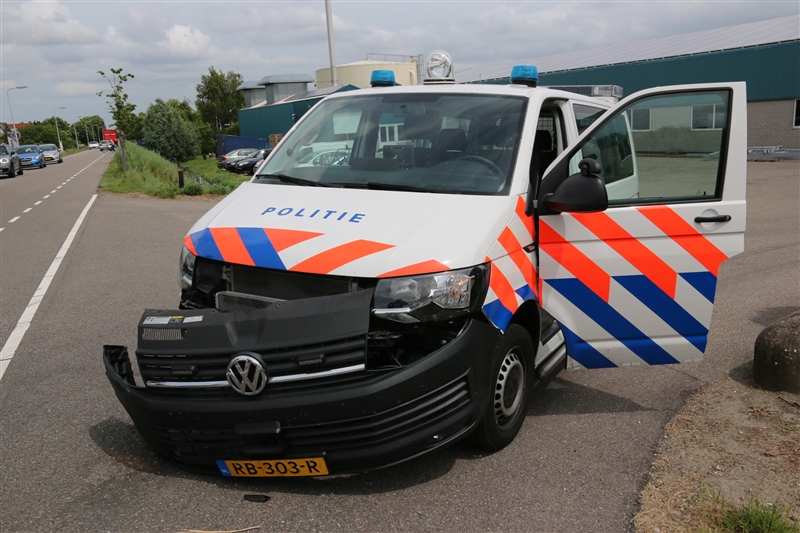 Een politiebusje dat stilstond op een oprit op de Middenzwet heeft daarbij zijn bumper verloren.