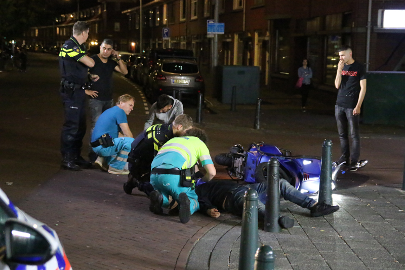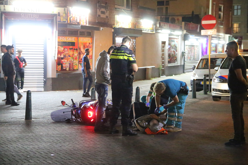 Een automobilist reed volgens getuigen een scooter aan en reed hierna weg in de richting van de Fruitweg. Bij de aanrijding kwamen de twee opzittende van de scooter ten val en raakten gewond.