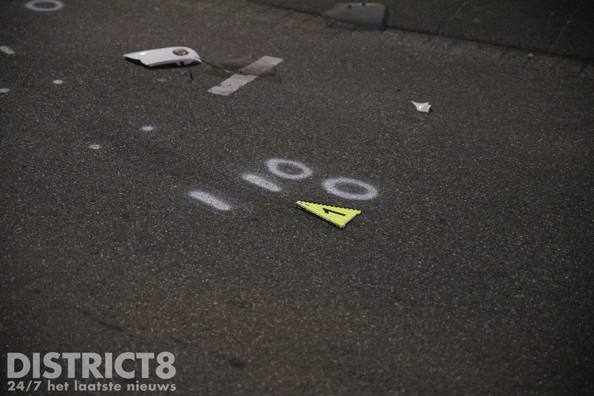 Door de klap brak de scooter doormidden en raakte de weg bezaaid met onderdelen. Ook de auto liep flinke schade op bij de aanrijding.