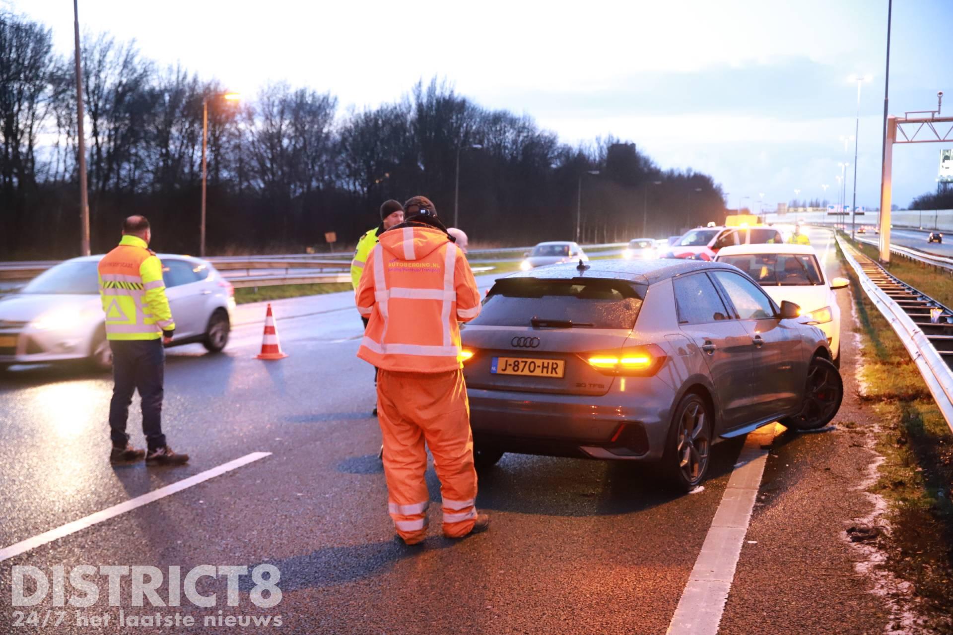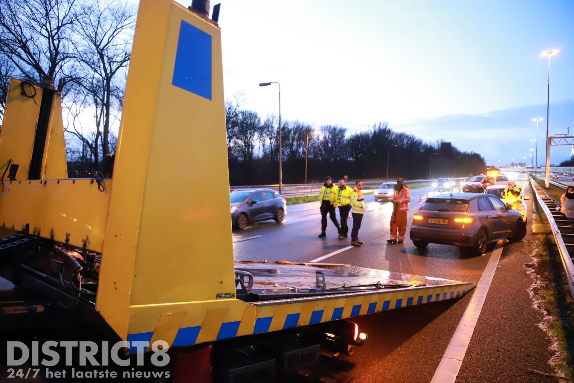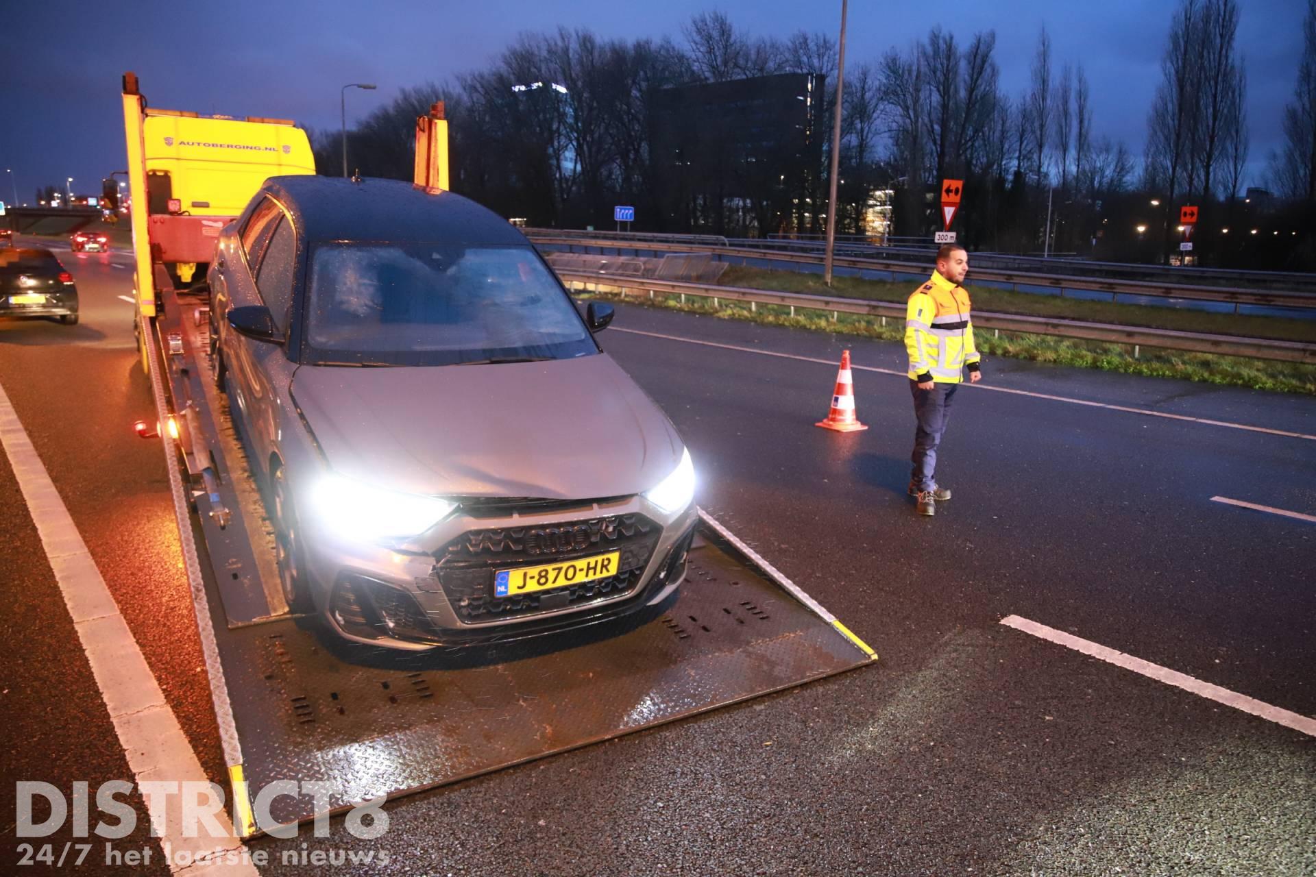 Door het ongeval zijn twee rijstroken afgesloten. Een berger is ter plaatse om de auto mee te nemen.