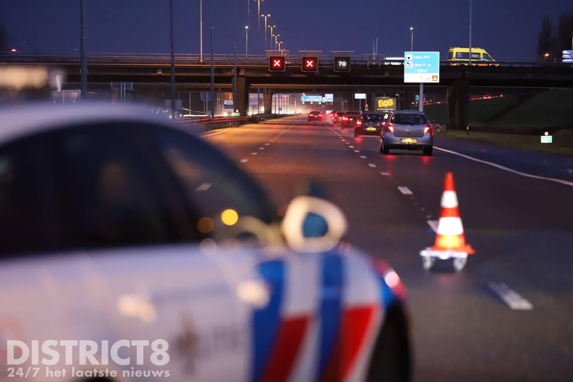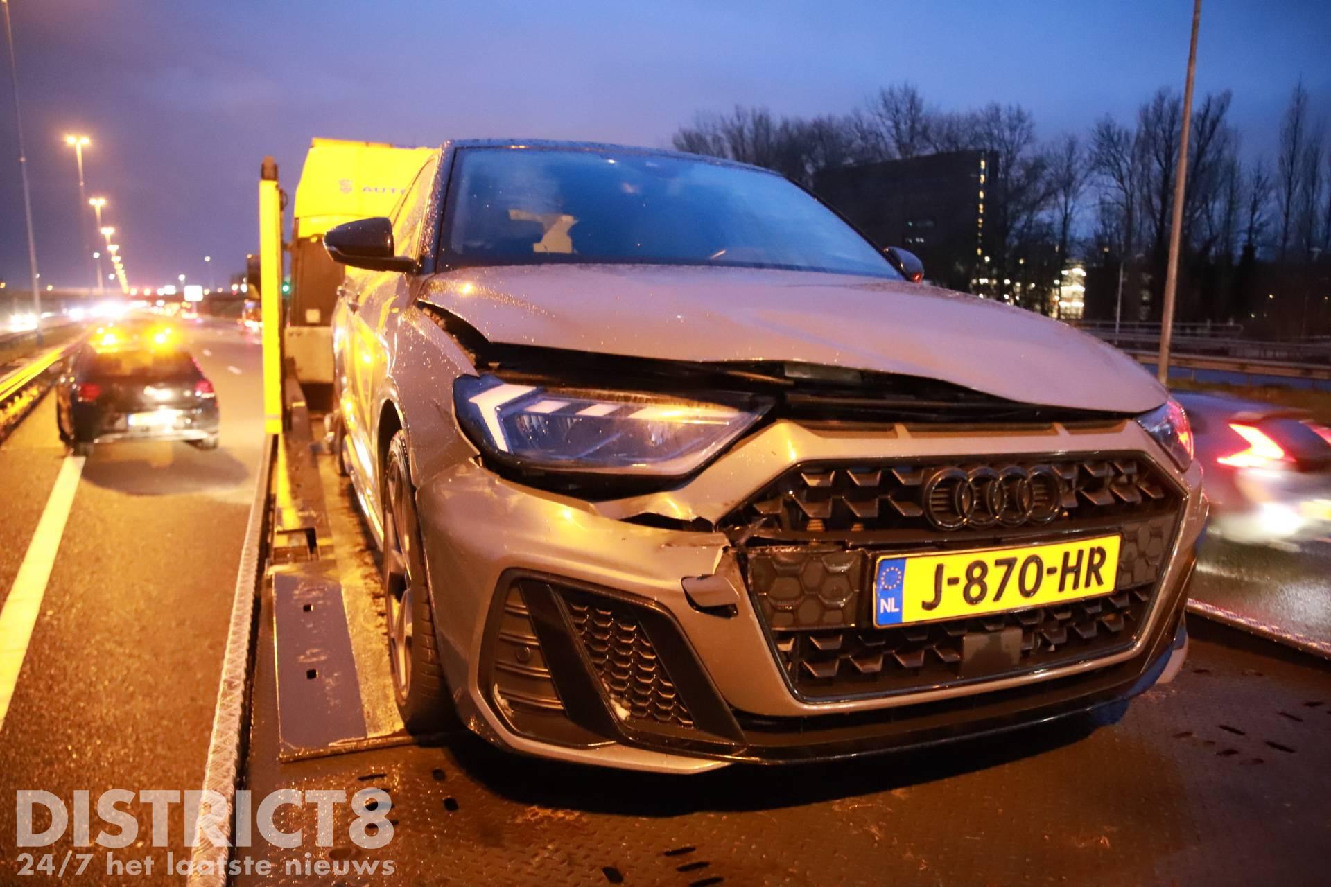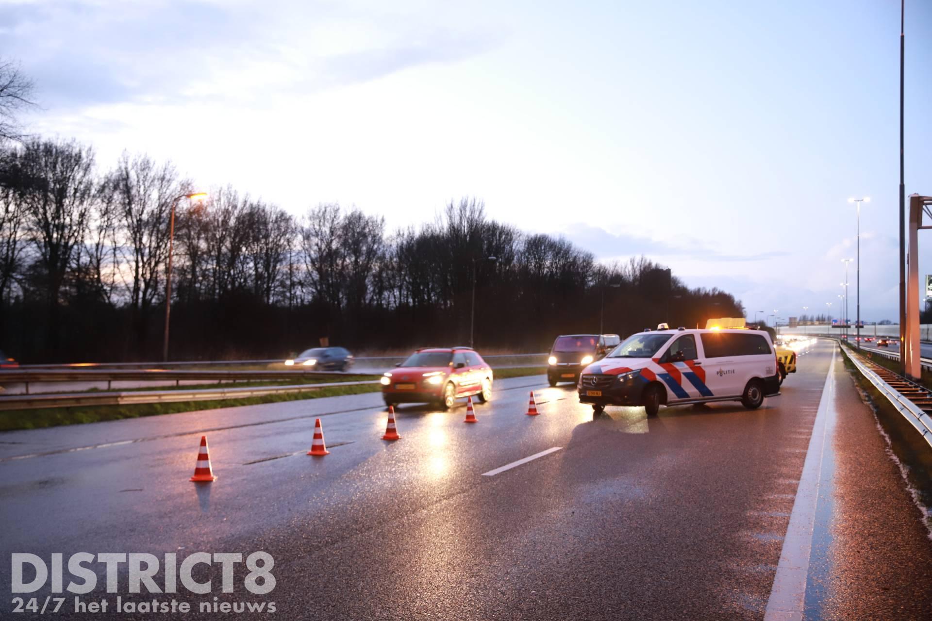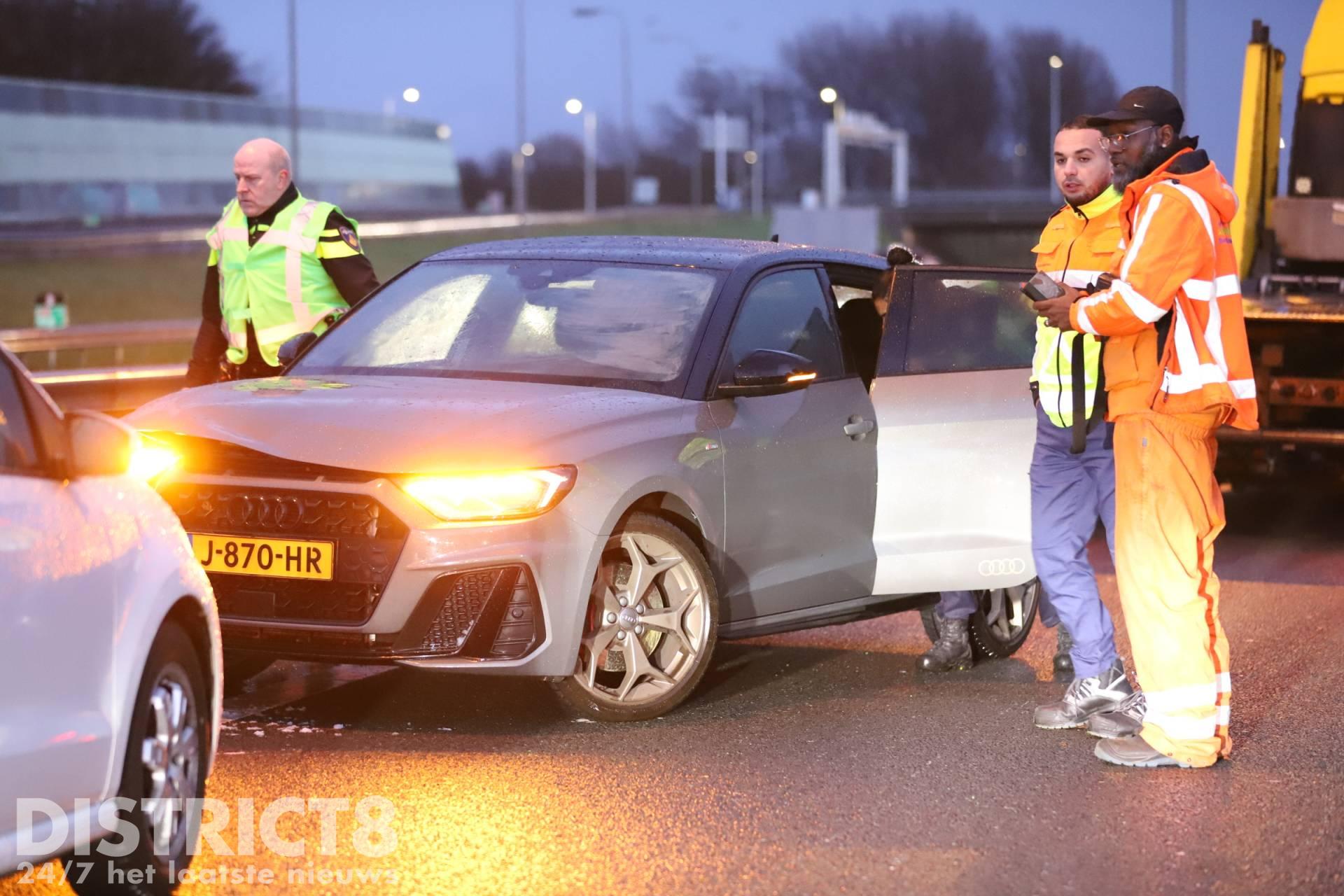 Door het ongeval zijn twee rijstroken afgesloten. Een berger is ter plaatse om de auto mee te nemen.