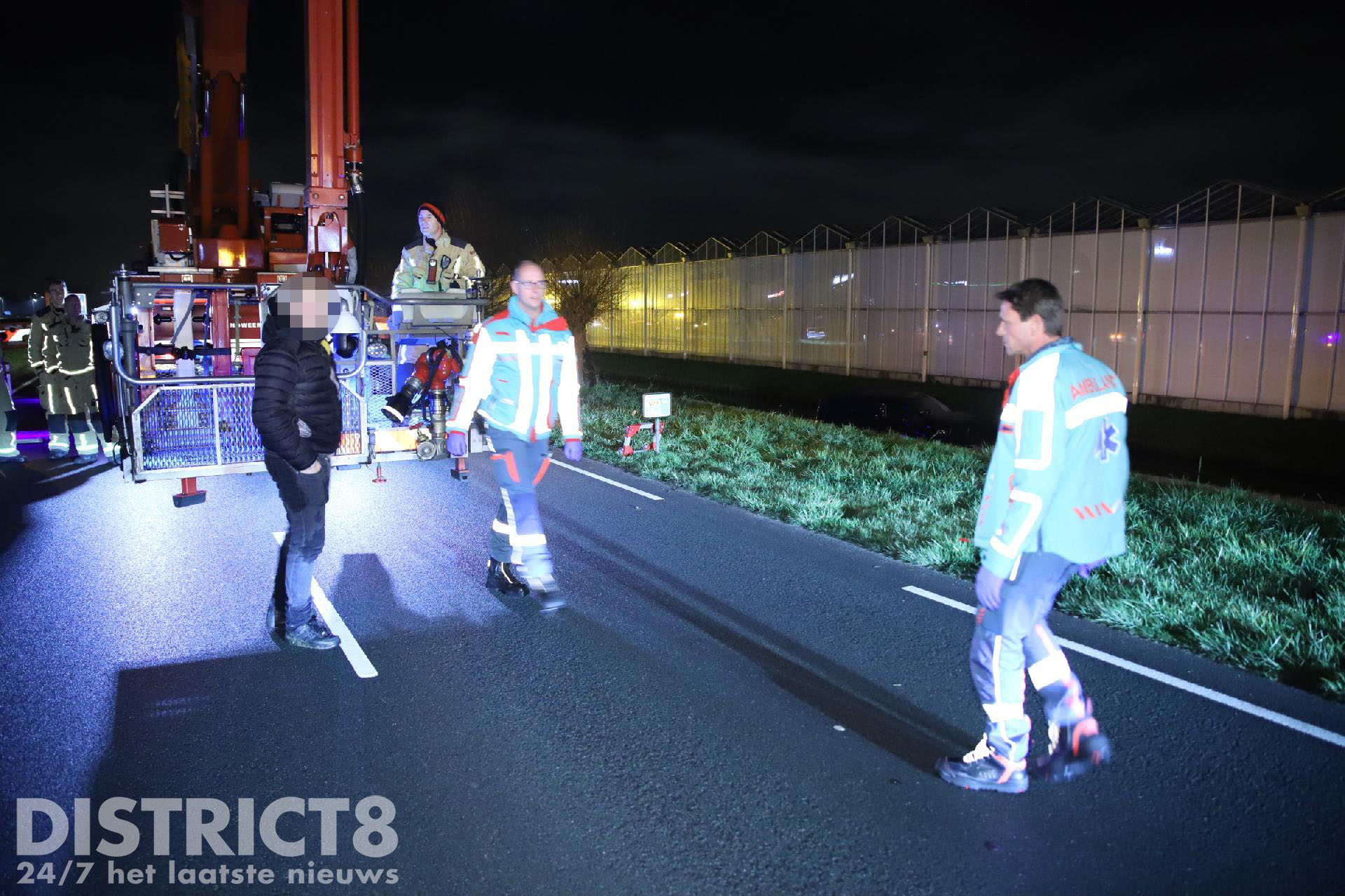 Door nog onbekende oorzaak raakte de automobilist de macht over het stuur kwijt, hij reedt richting Den Haag en schoot de rijbaan richting Den Hoorn over voordat hij te water raakte.