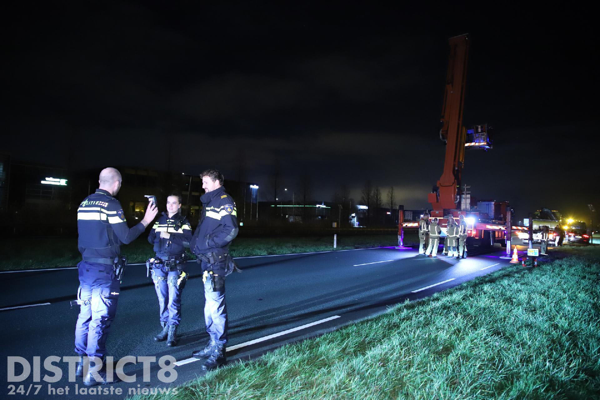 De politie kwam met spoed ter plaatse. Omdat de man aan de andere kant van het water stond, is de brandweer met een hoogwerker ter plekke gekomen. Nadat de man naar de overkant is gebracht werd bij hem gelijk een blaastest gedaan. De bestuurder blies een A (positief) en werd aangehouden voor art. 8 van de wegenverkeerswet (het besturen van een voertuig onder invloed van alcohol en/of drugs).