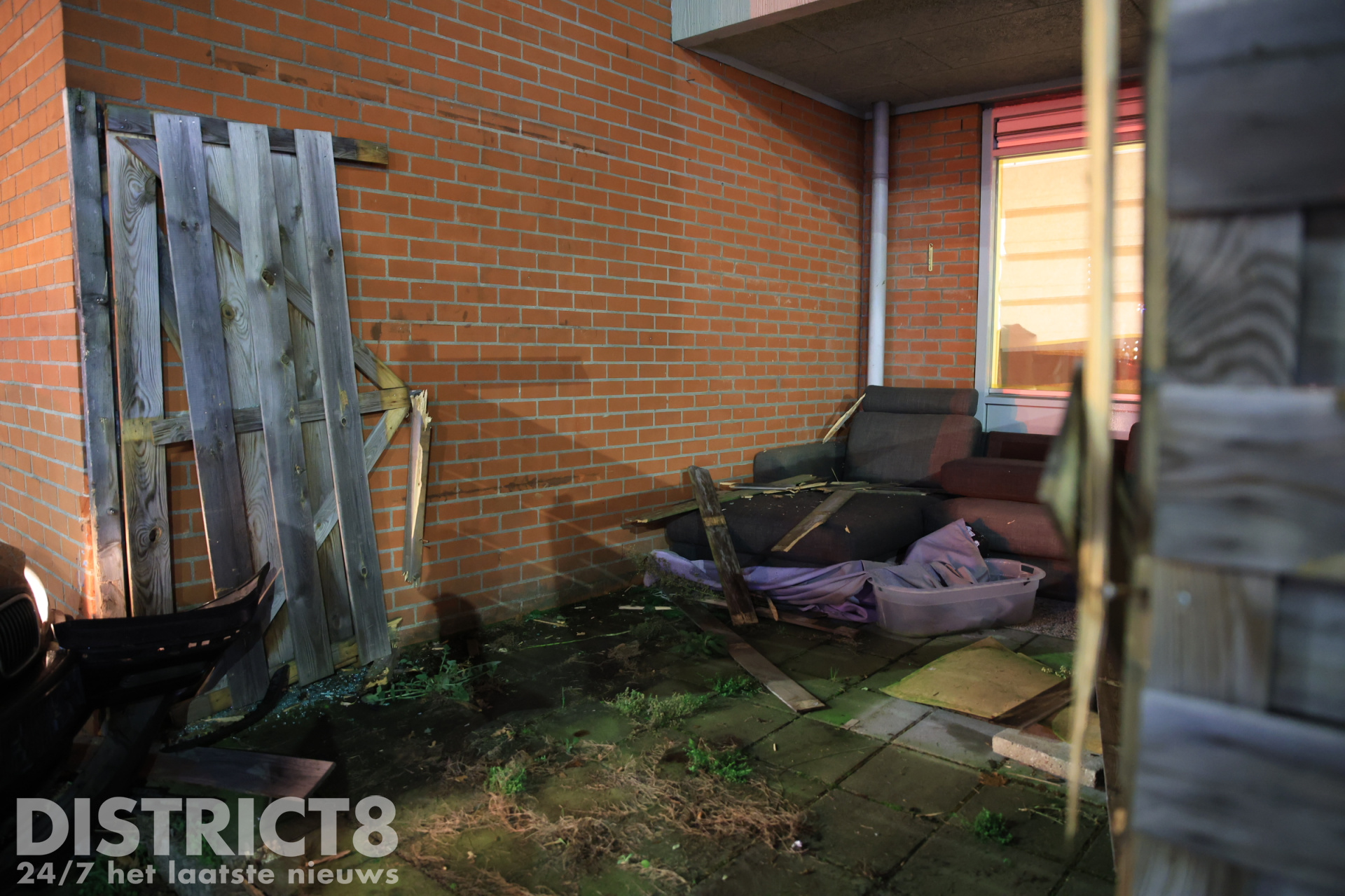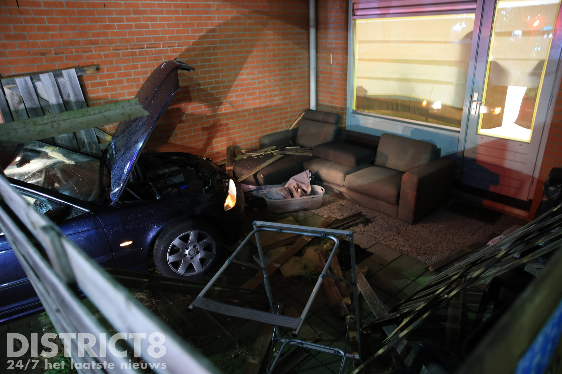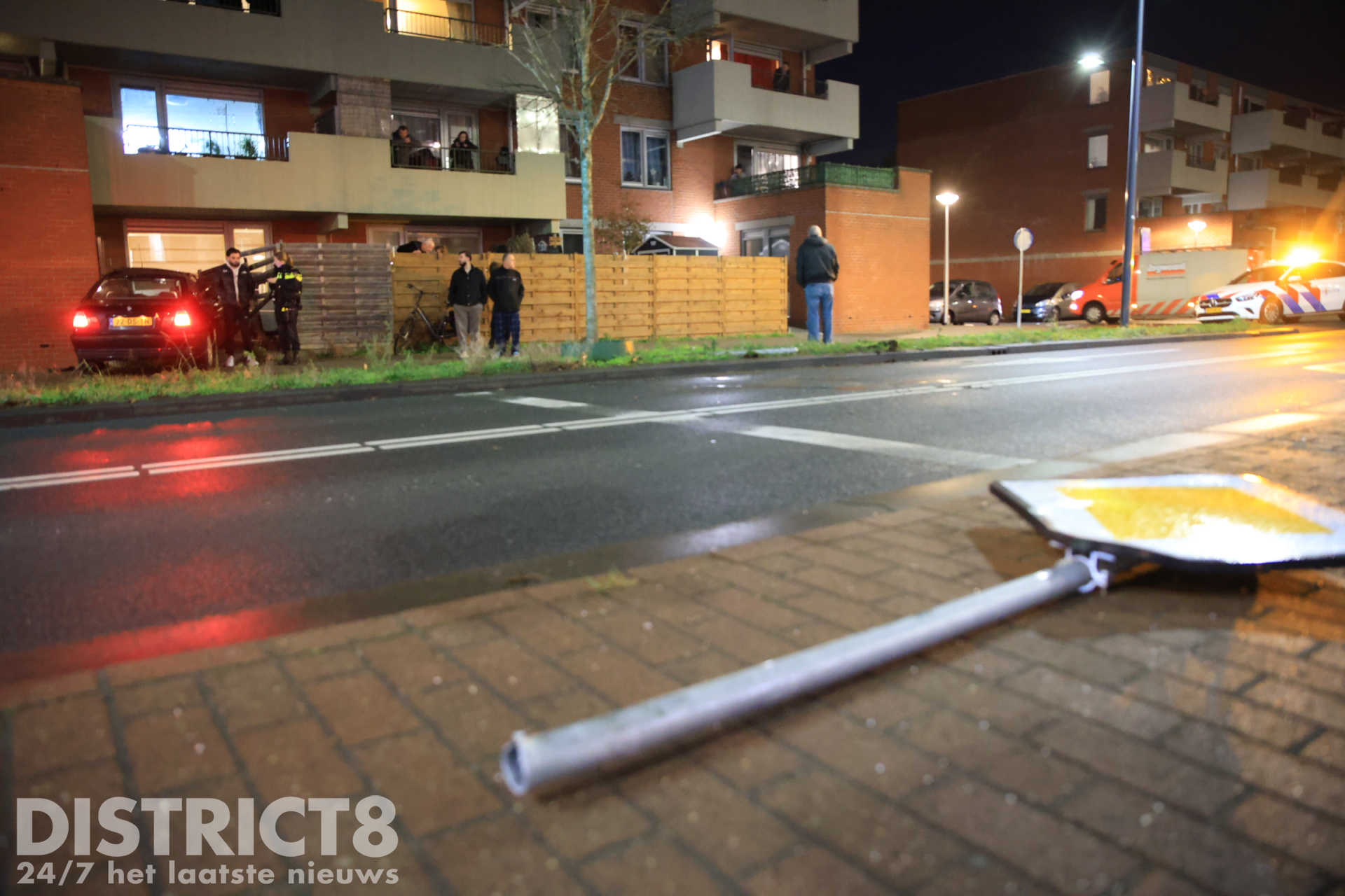 Tijdens het incident heeft de automobilist een verkeersbord omvergereden. Het voertuig reed door een schutting en kwam tot stilstand tegen een schuur.
