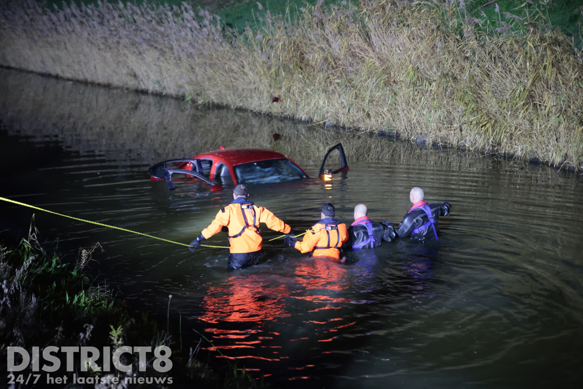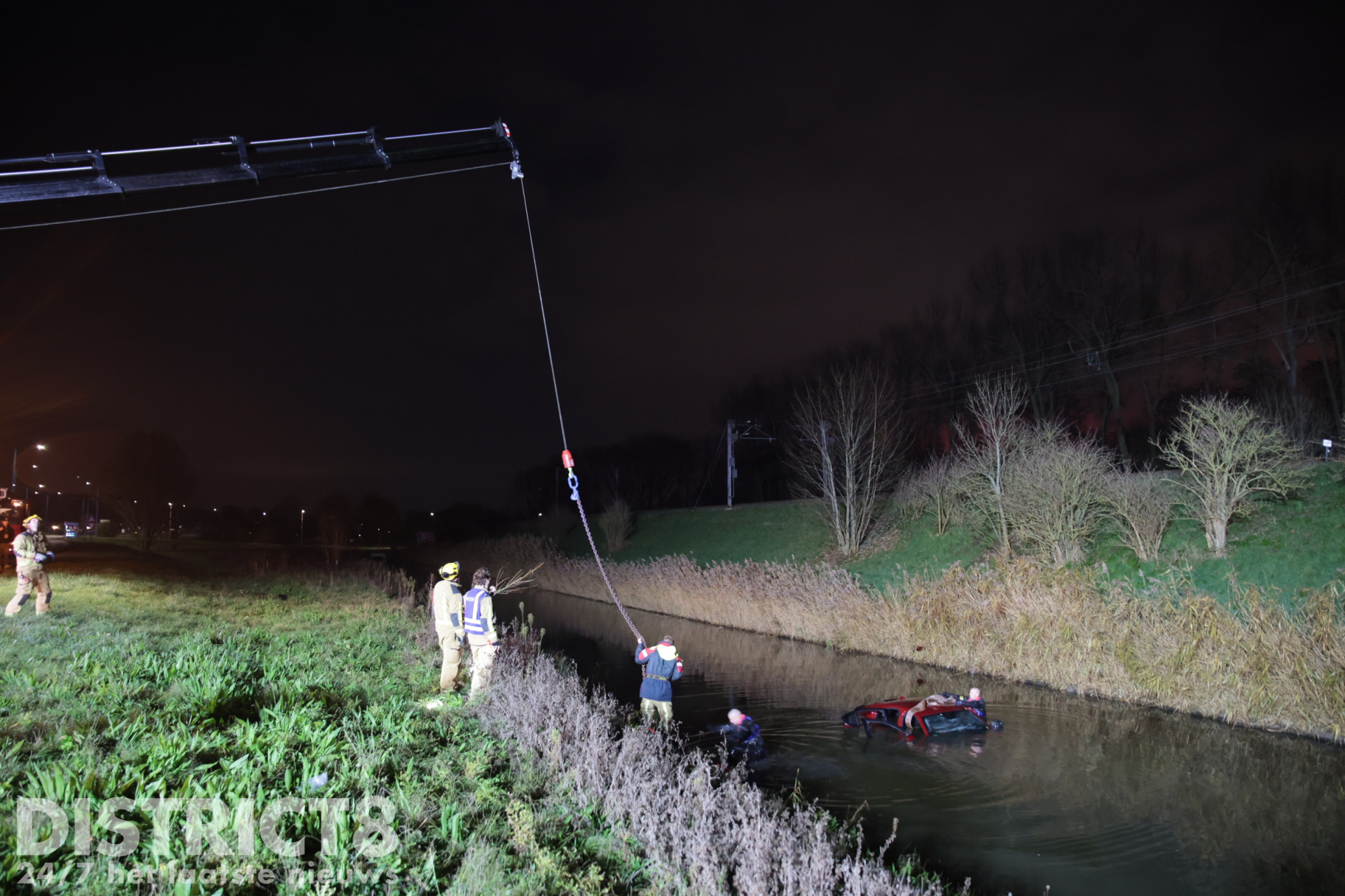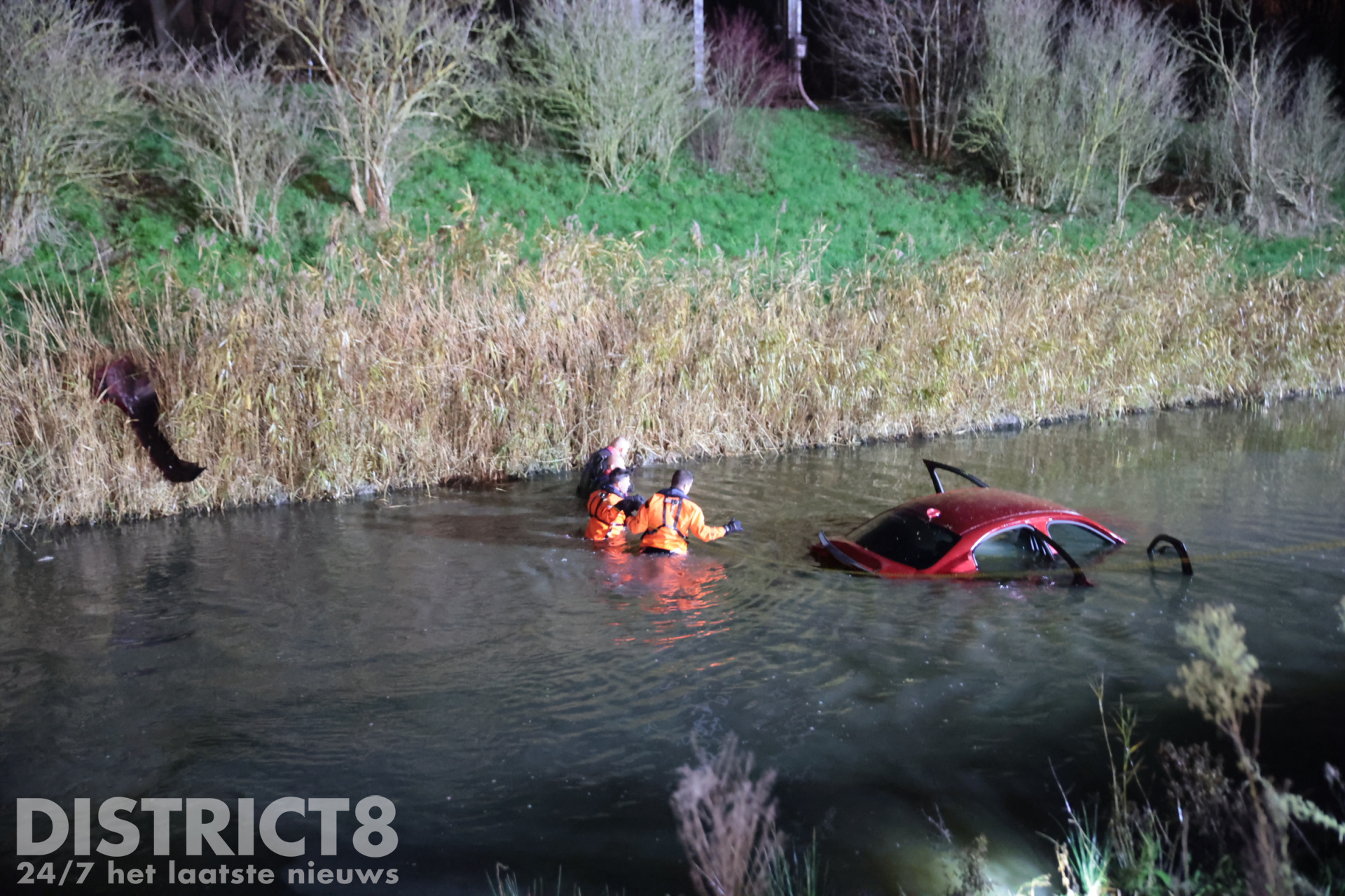 De brandweer heeft geprobeerd het voertuig uit het water te halen. Dit lukte echter niet; zij laten dit over aan een bergingsdienst.