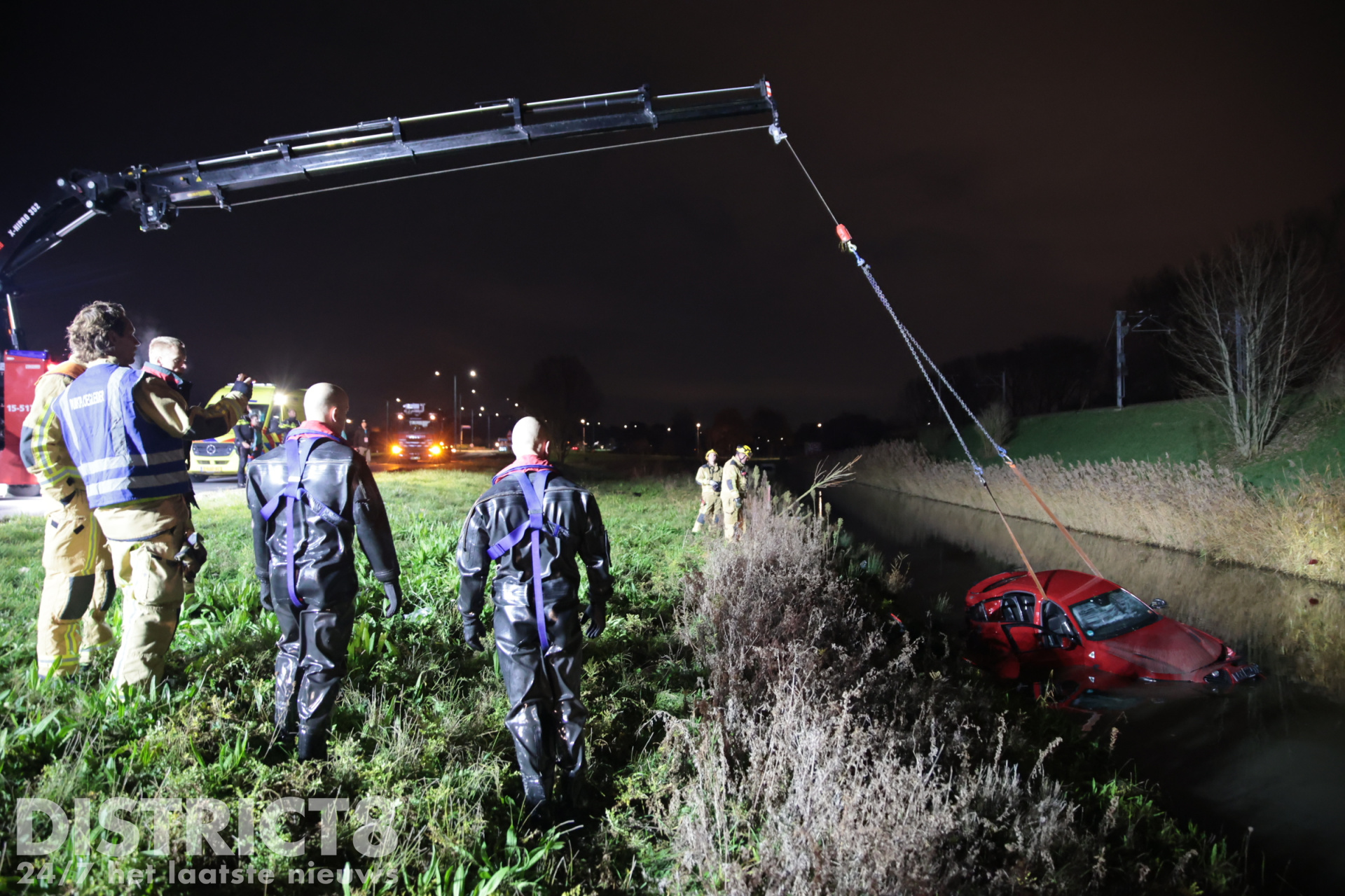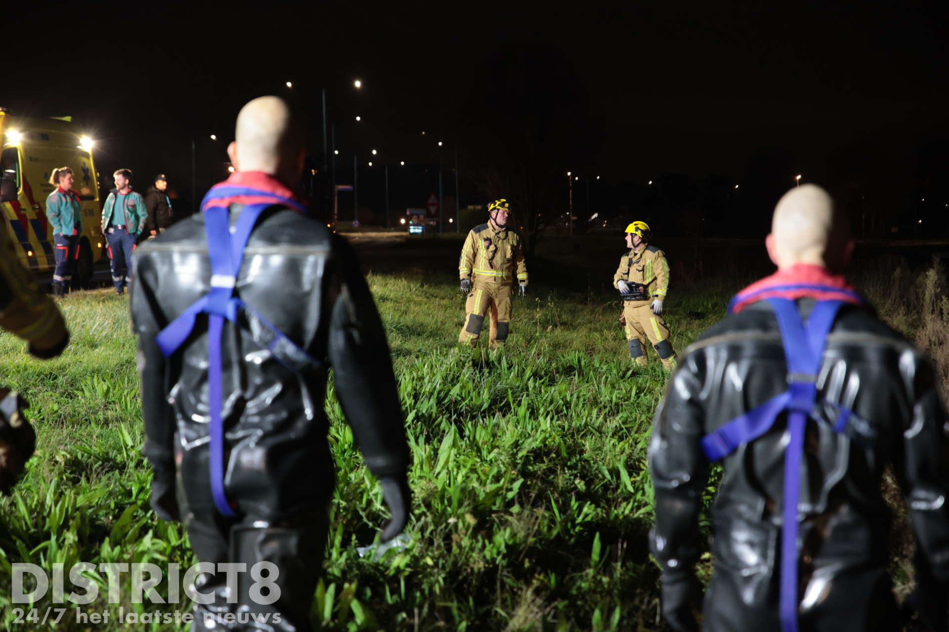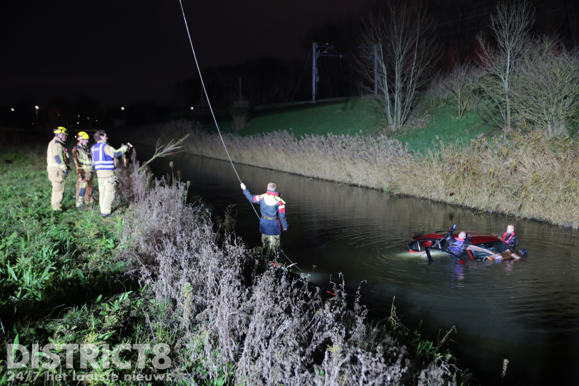 De brandweer heeft geprobeerd het voertuig uit het water te halen. Dit lukte echter niet; zij laten dit over aan een bergingsdienst.