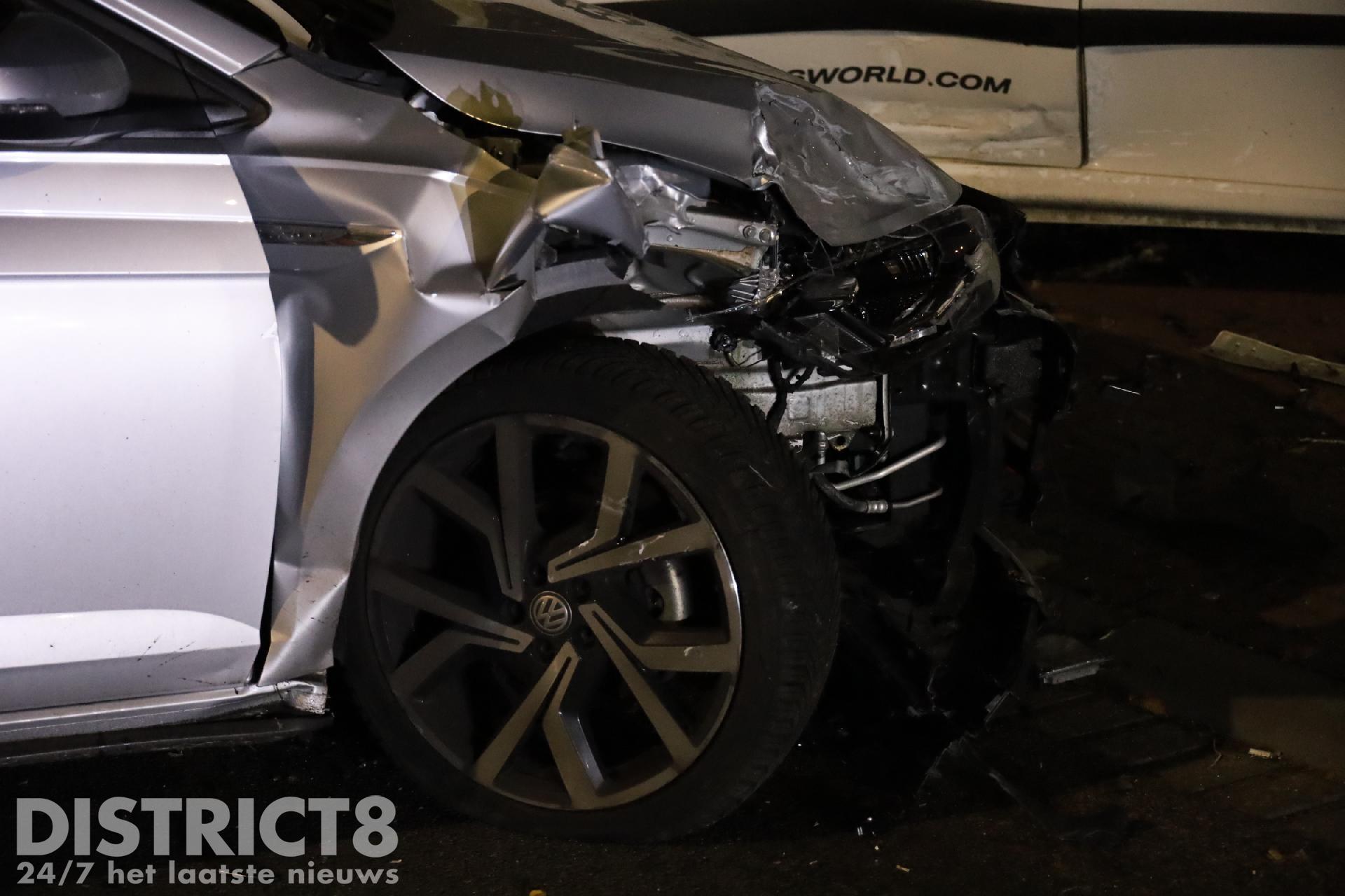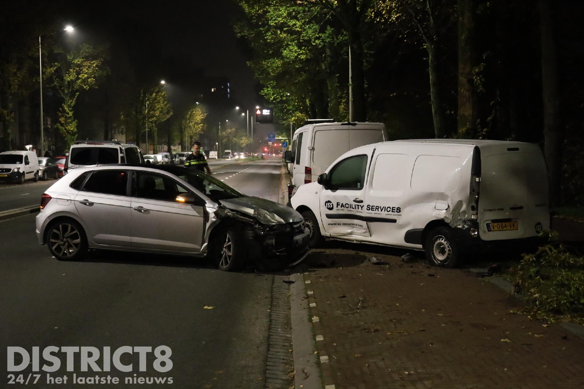 Den Haag – Op de Erasmusweg heeft een automobilist zondagavond rond 22.00 uur een geparkeerde bestelbus geramd ter hoogte van de Betje Wolffstraat.