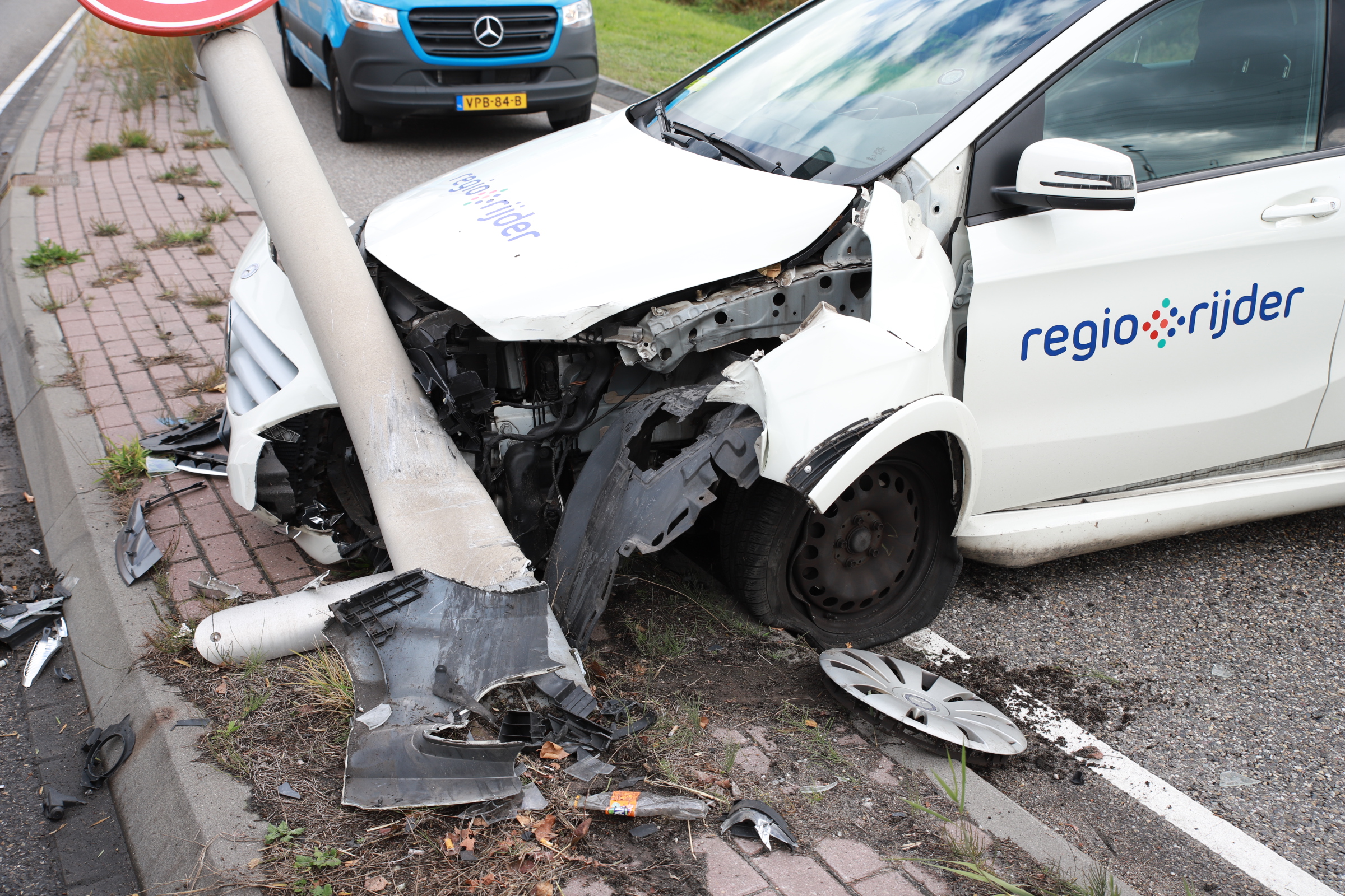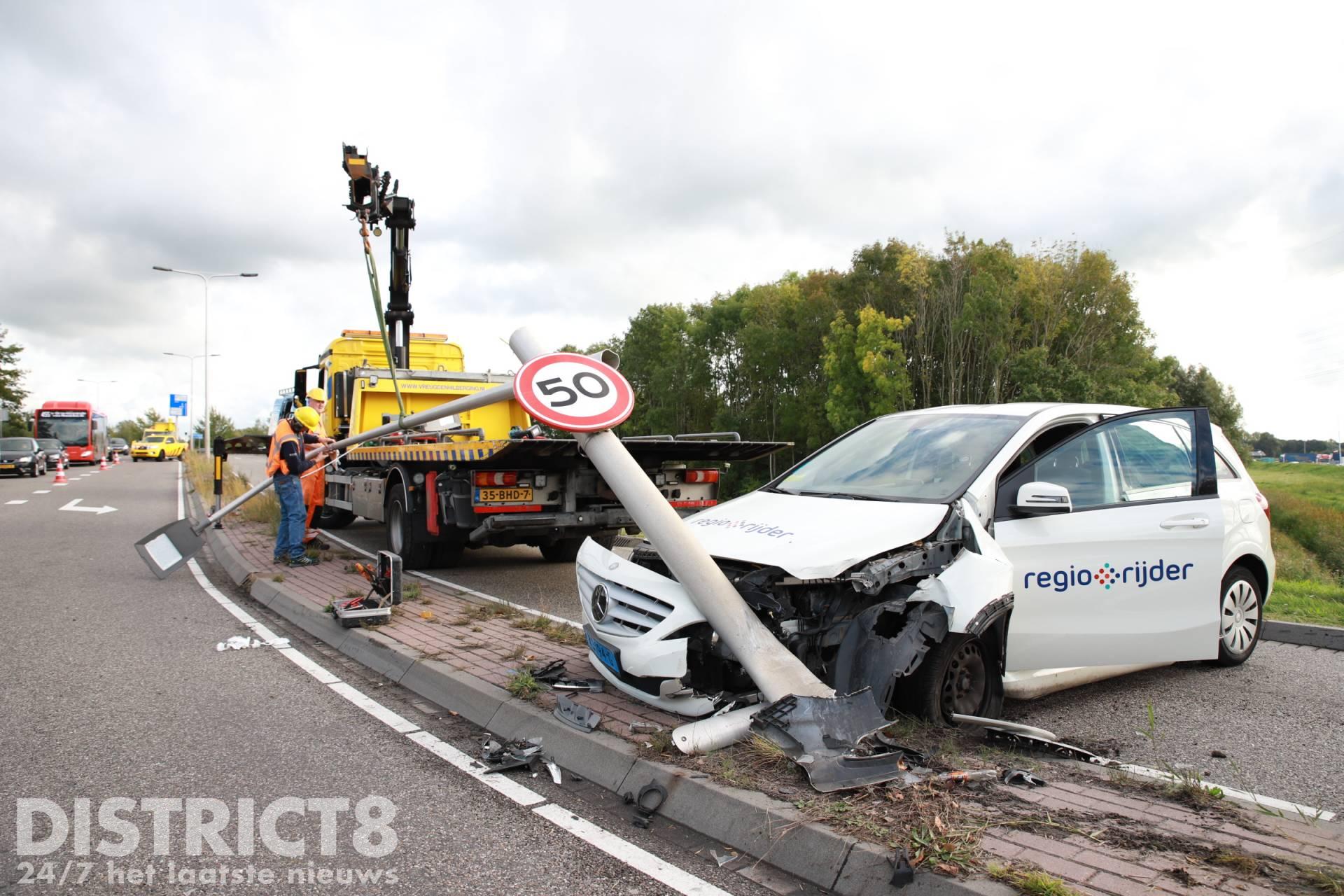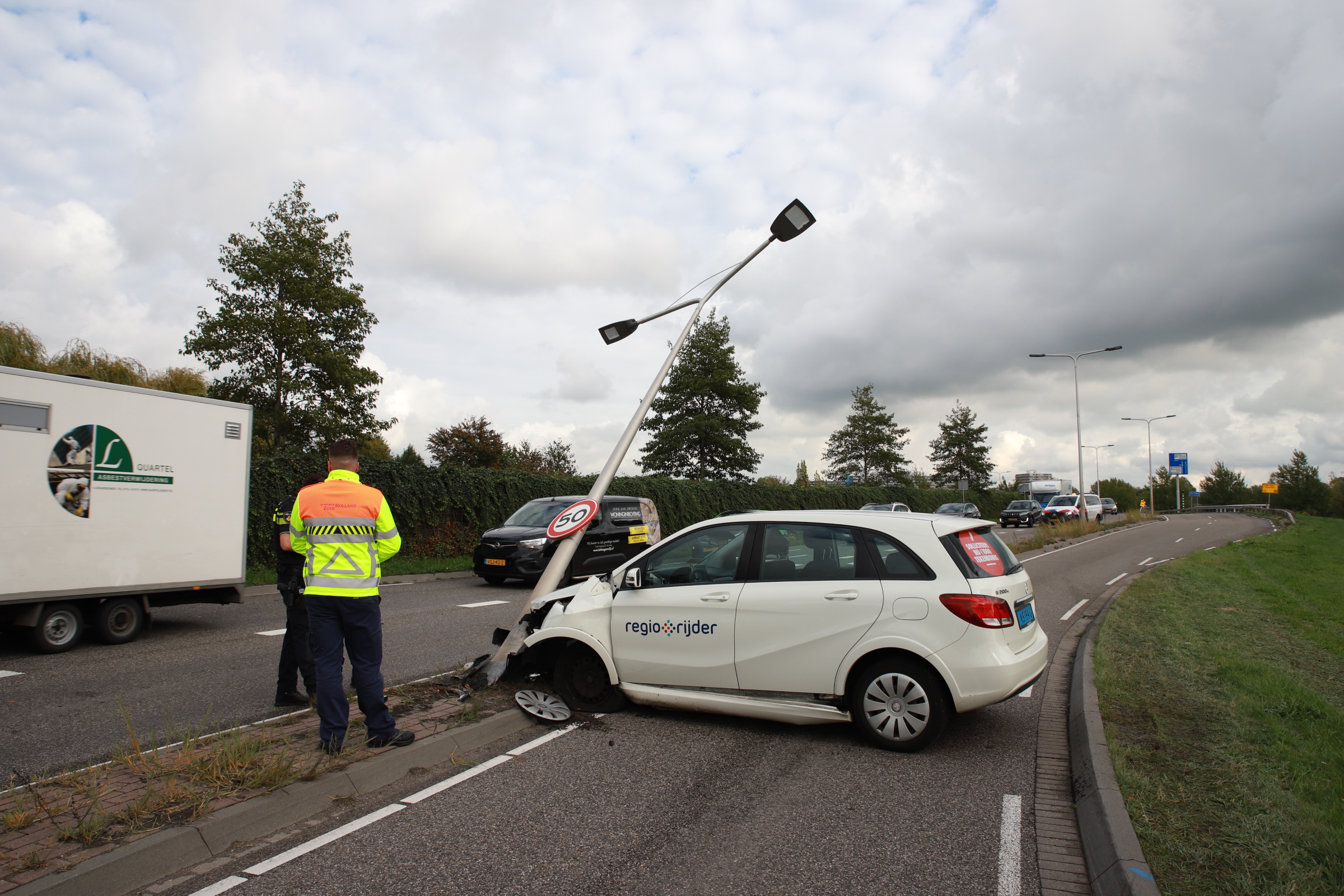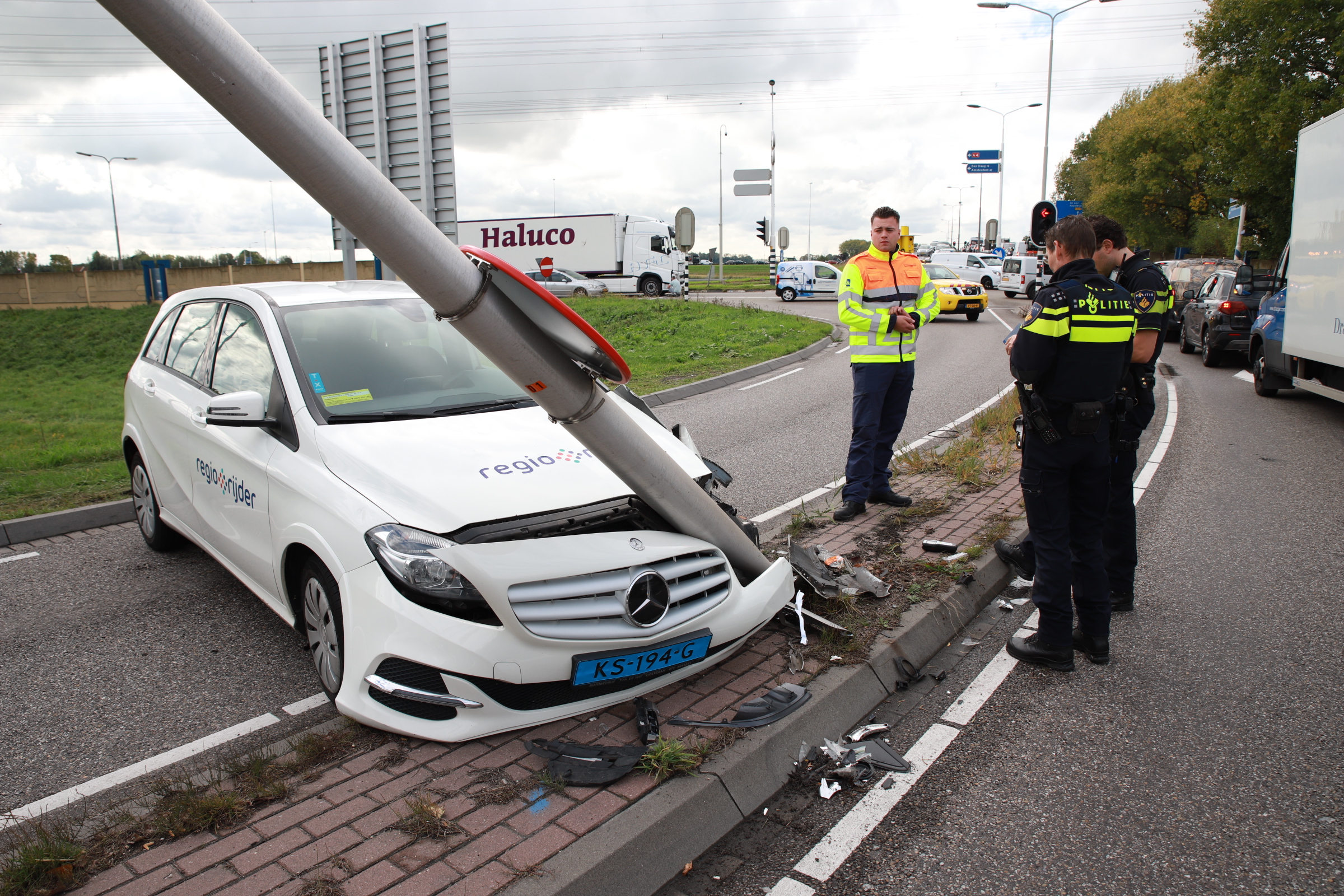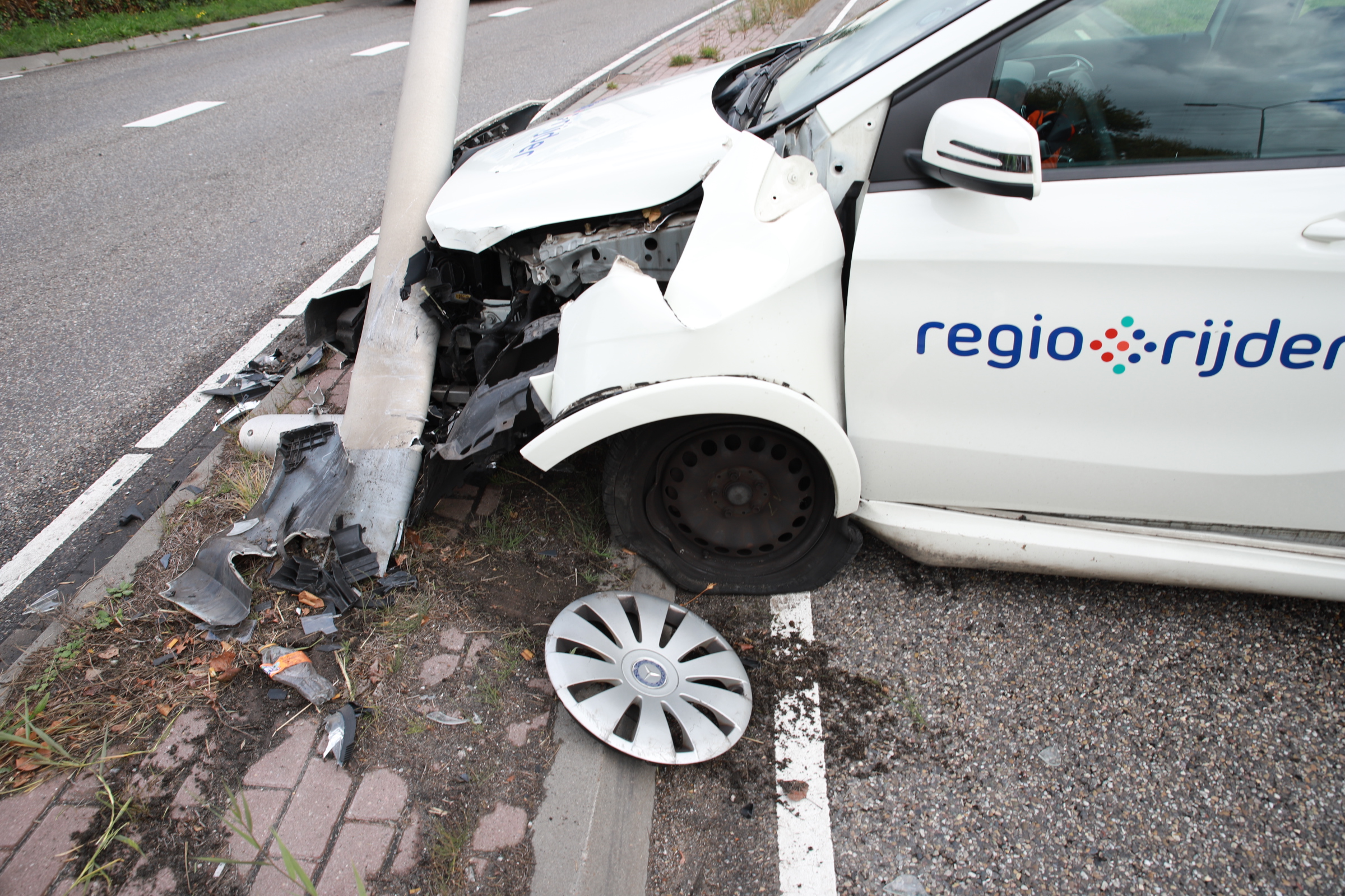 Omstreeks 15:11 ging het mis en knalde de bestuurder van een taxi, door een nog onbekende oorzaak, tegen de lantaarnpaal.