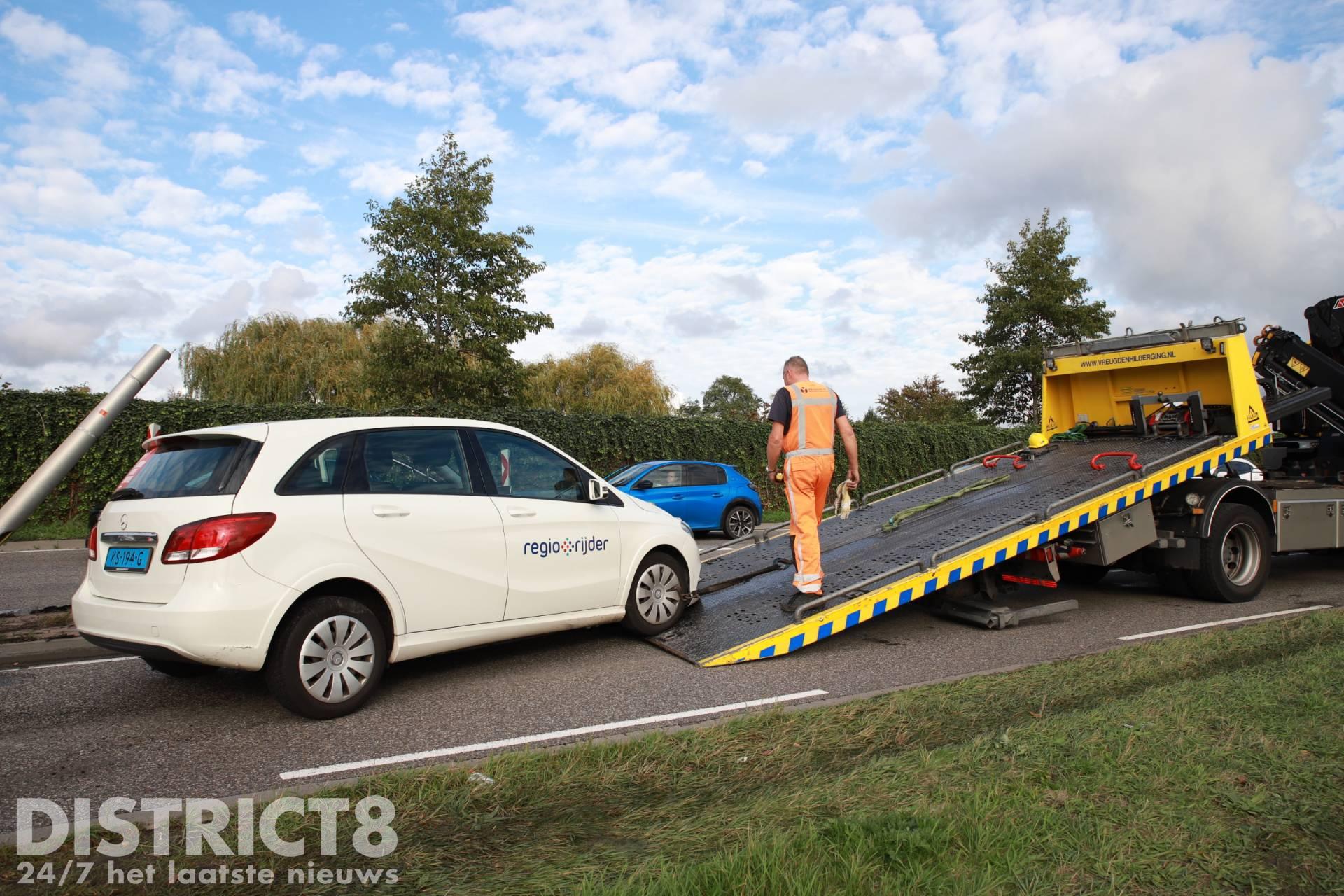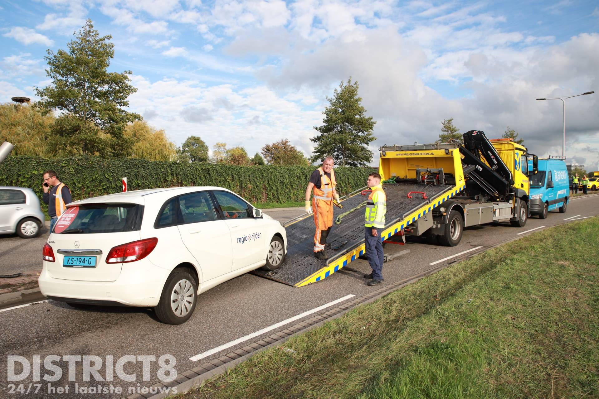 Bergingsbedrijf Vreugdenhil heeft de zwaar beschadigde auto afgevoerd.