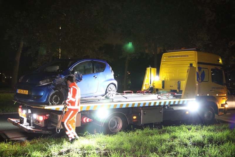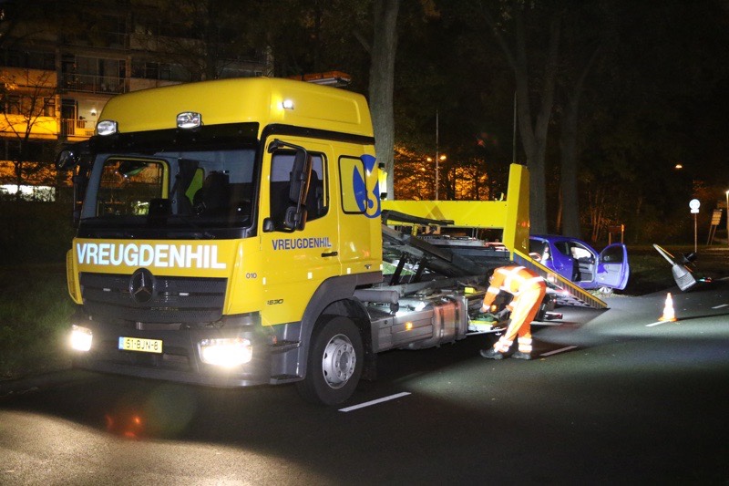 Een berger van Vreugdenhil kwam ter plaatse komen om het voertuig af te slepen. De gemeente is in kennis gesteld van de kapotte lichtmast.