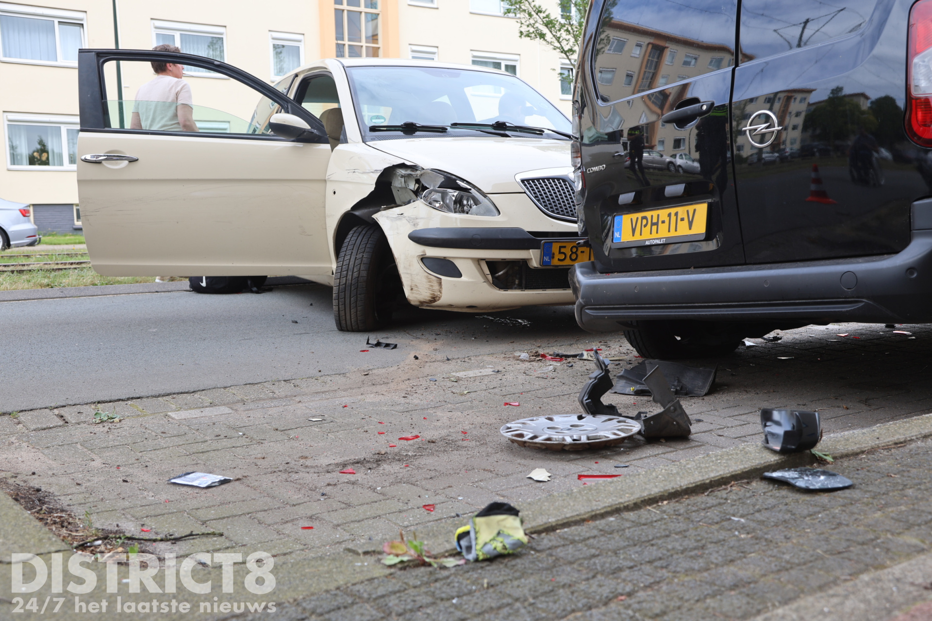 Volgens de bestuurder van de auto viel spontaan de zonneklep omlaag. De bijrijder nam daarop het stuur over. Dit ging niet goed en de auto klapte op twee geparkeerde autos.