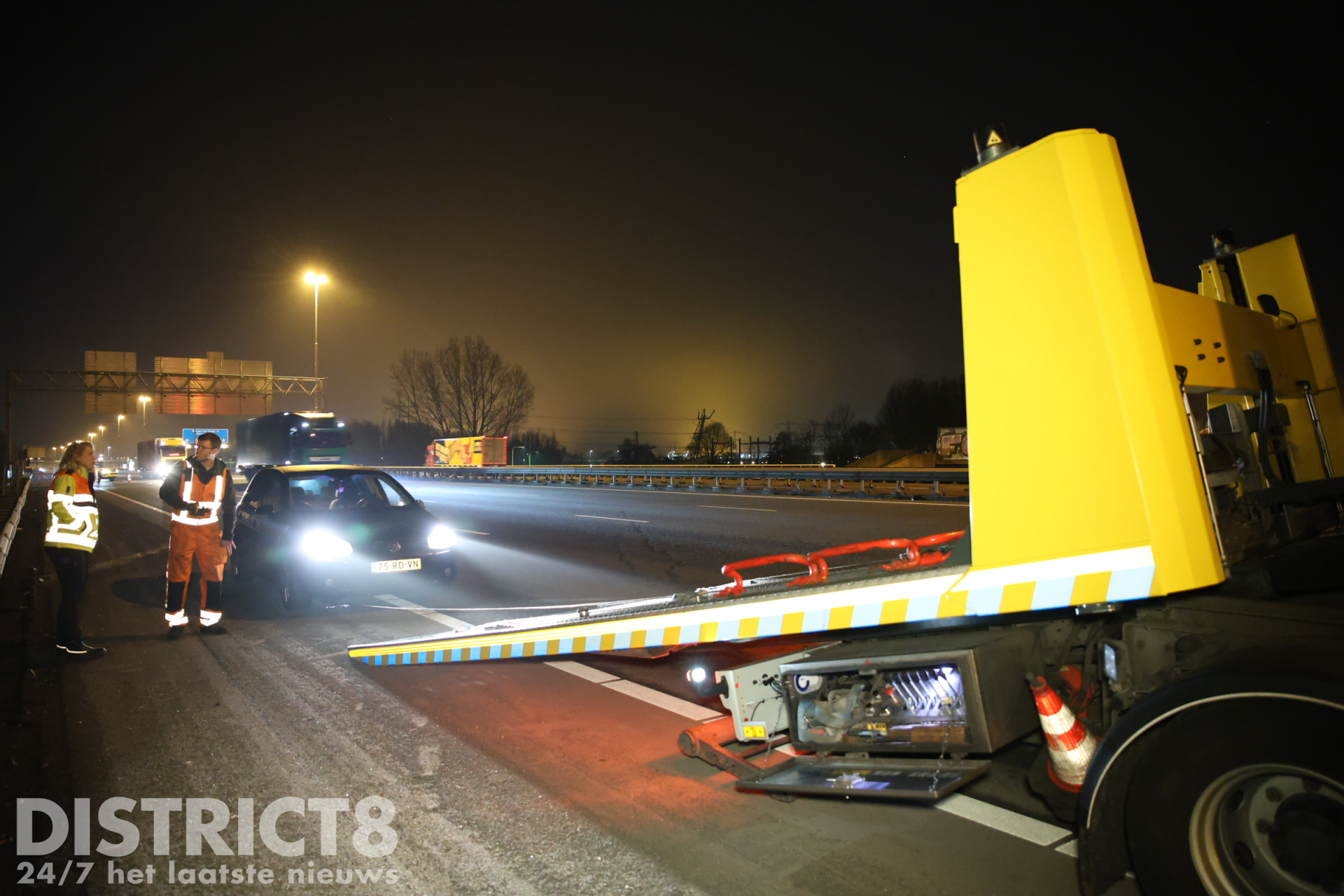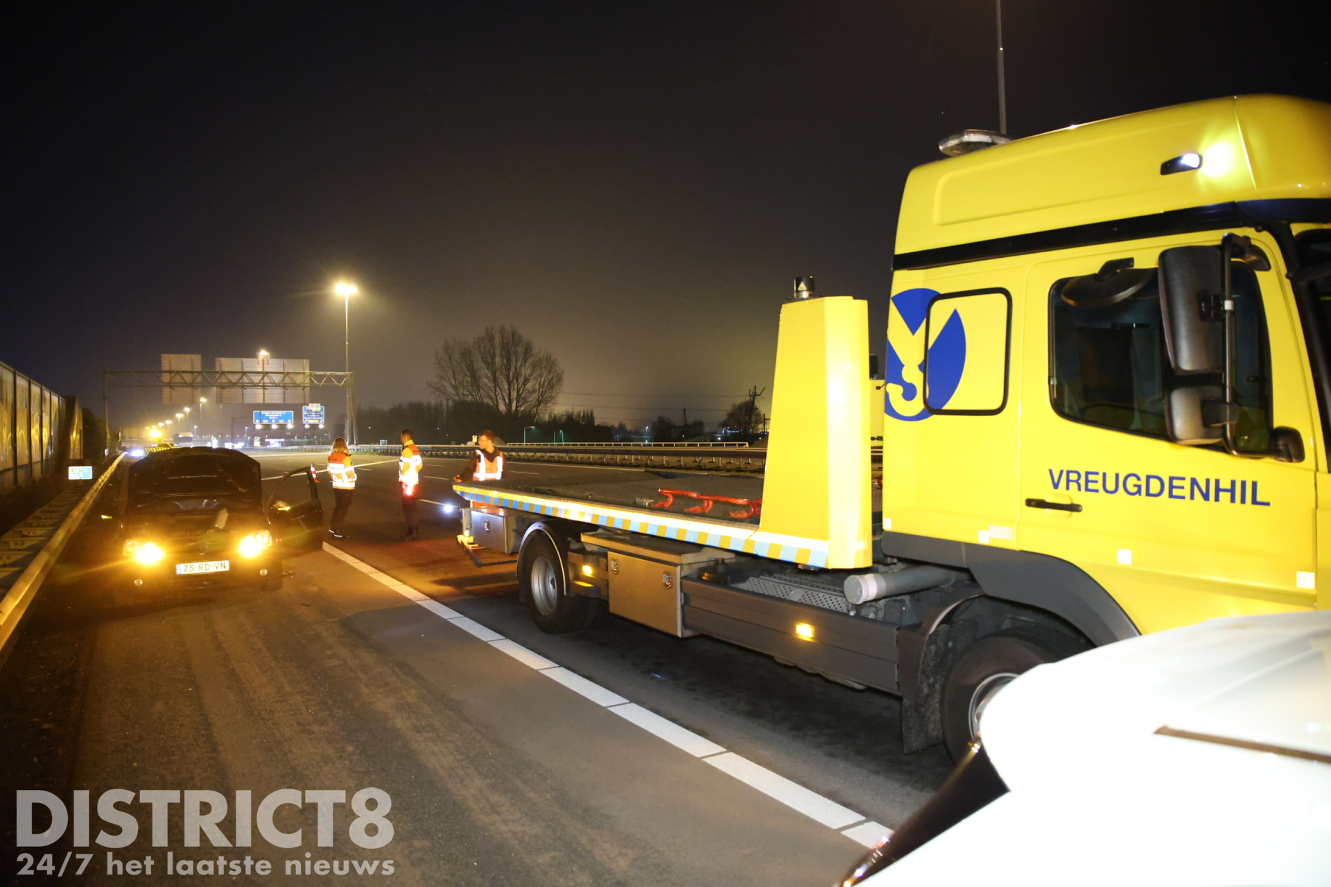 Een berger heeft de auto afgesleept, en de rechterrijstrook was tijdelijk afgesloten met een rood kruis.