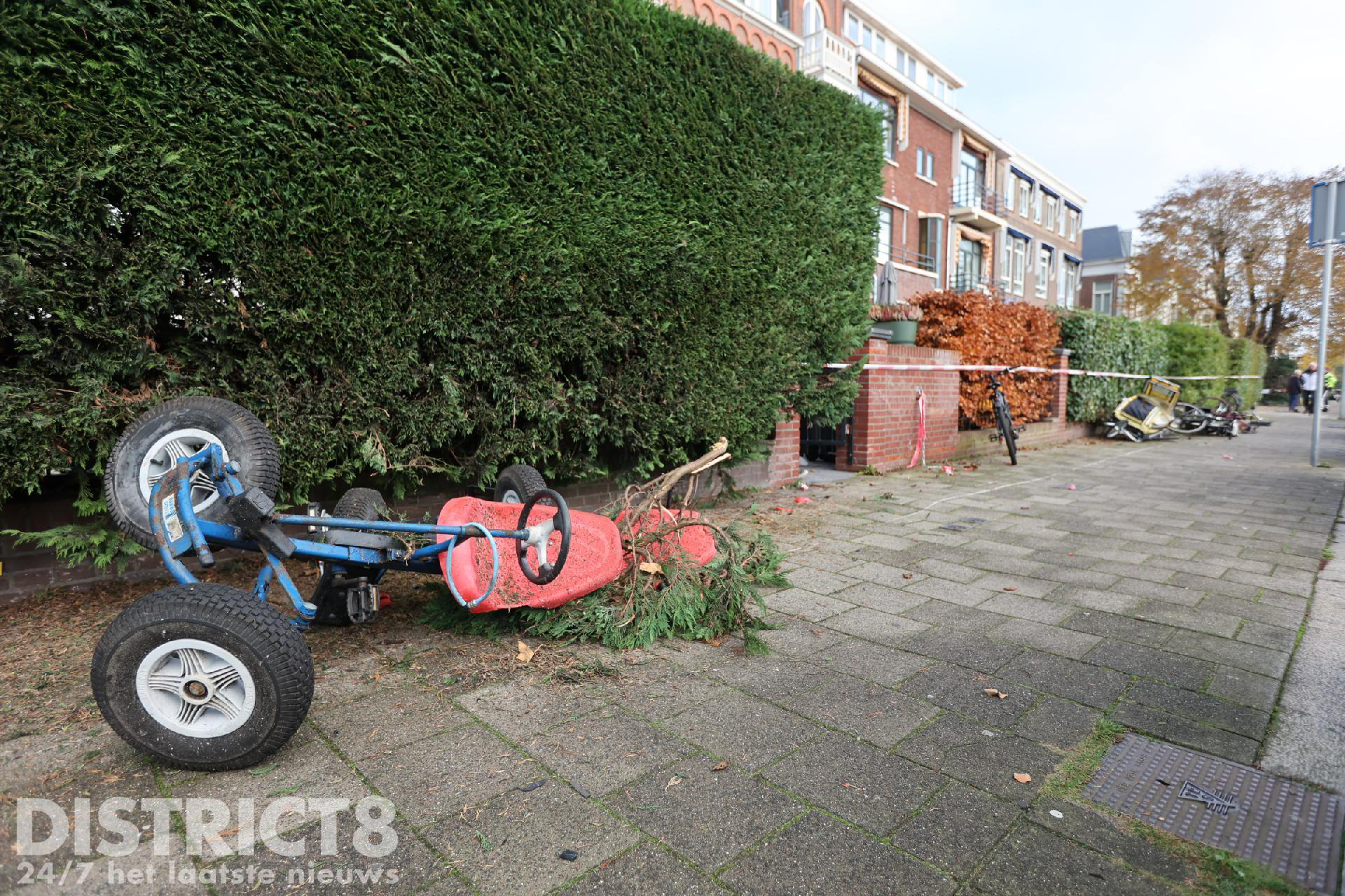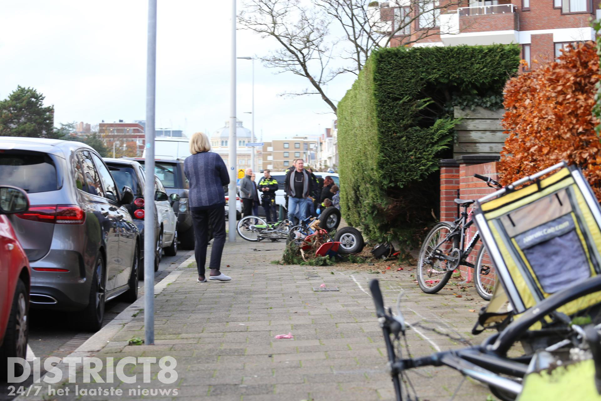 Den Haag – Op de Badhuisweg in de Haagse wijk Scheveningen heeft een automobilist een flinke ravage aangericht. Bij het bizarre ongeval raakte een meisje gewond.