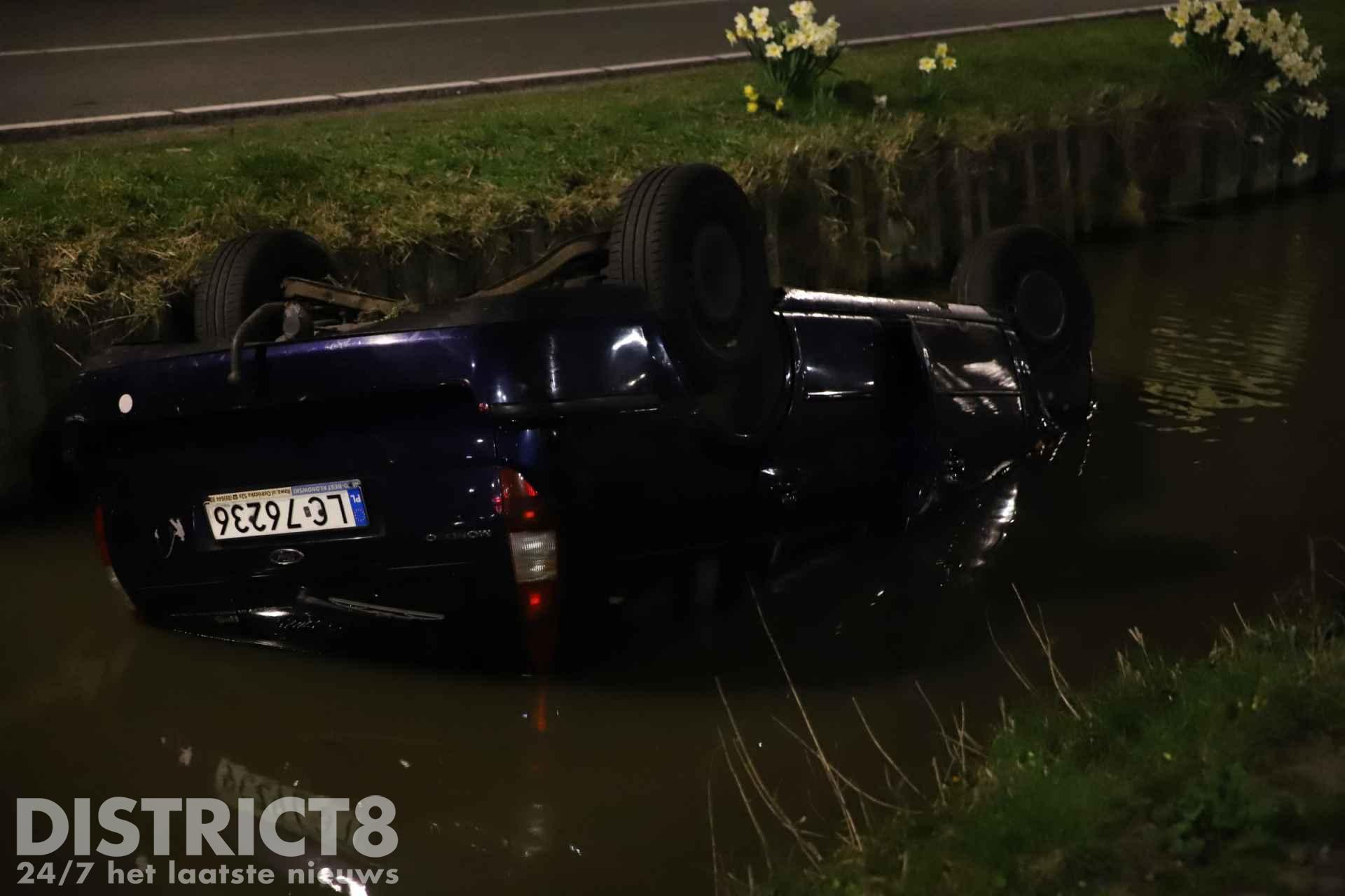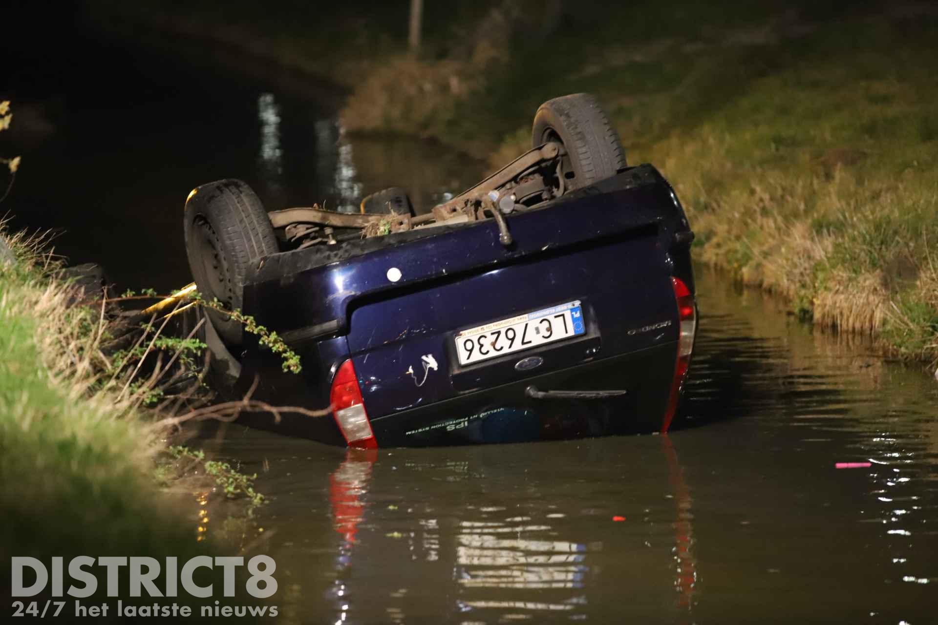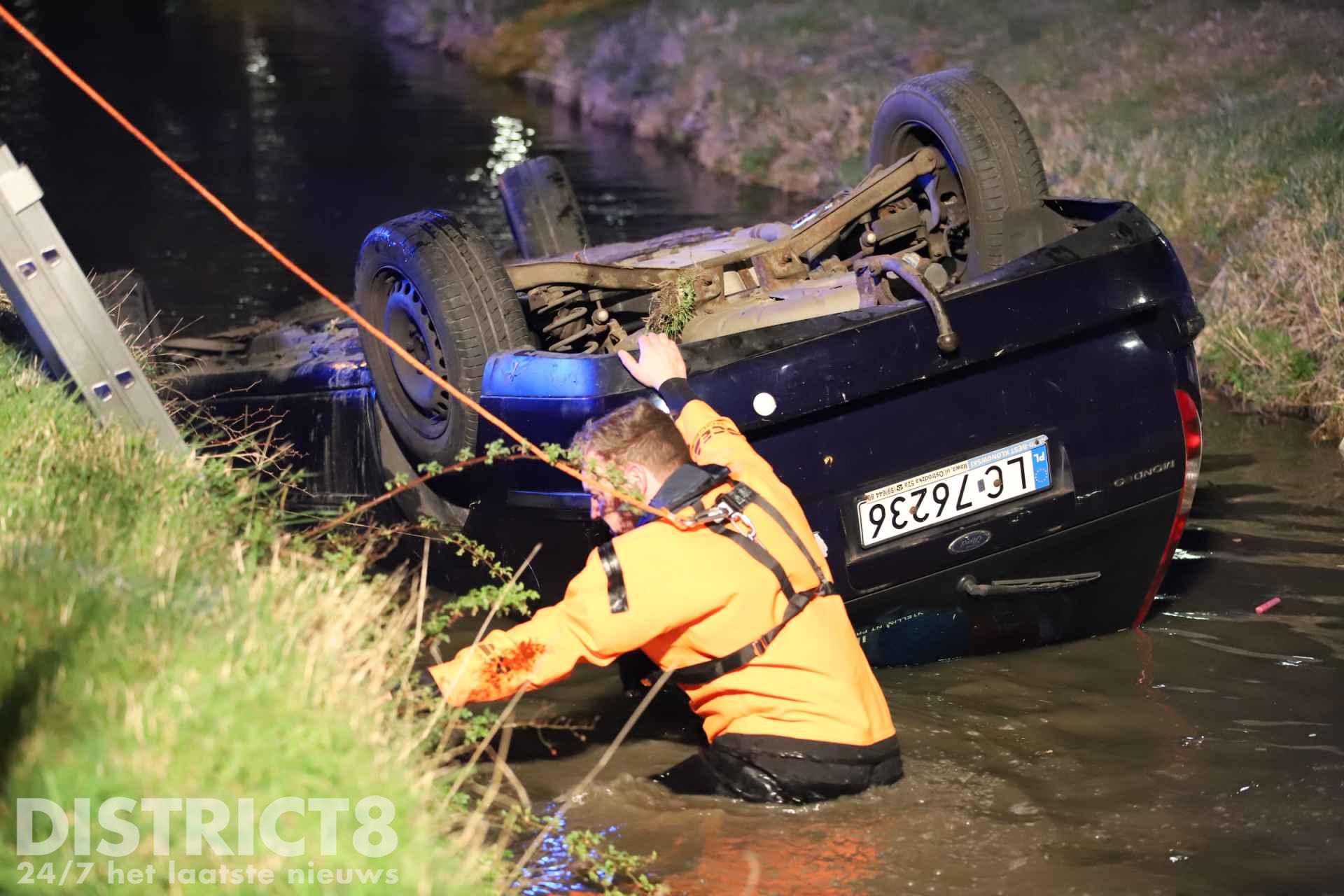 Om één uur ging het mis. De bestuurder wilde achteruit de oprit van zijn woning verlaten. Door te laat in te sturen kwam de auto in de berm terecht en zakte daarna weg de sloot in. De auto kwam uiteindelijk op z’n dak in het water terecht.