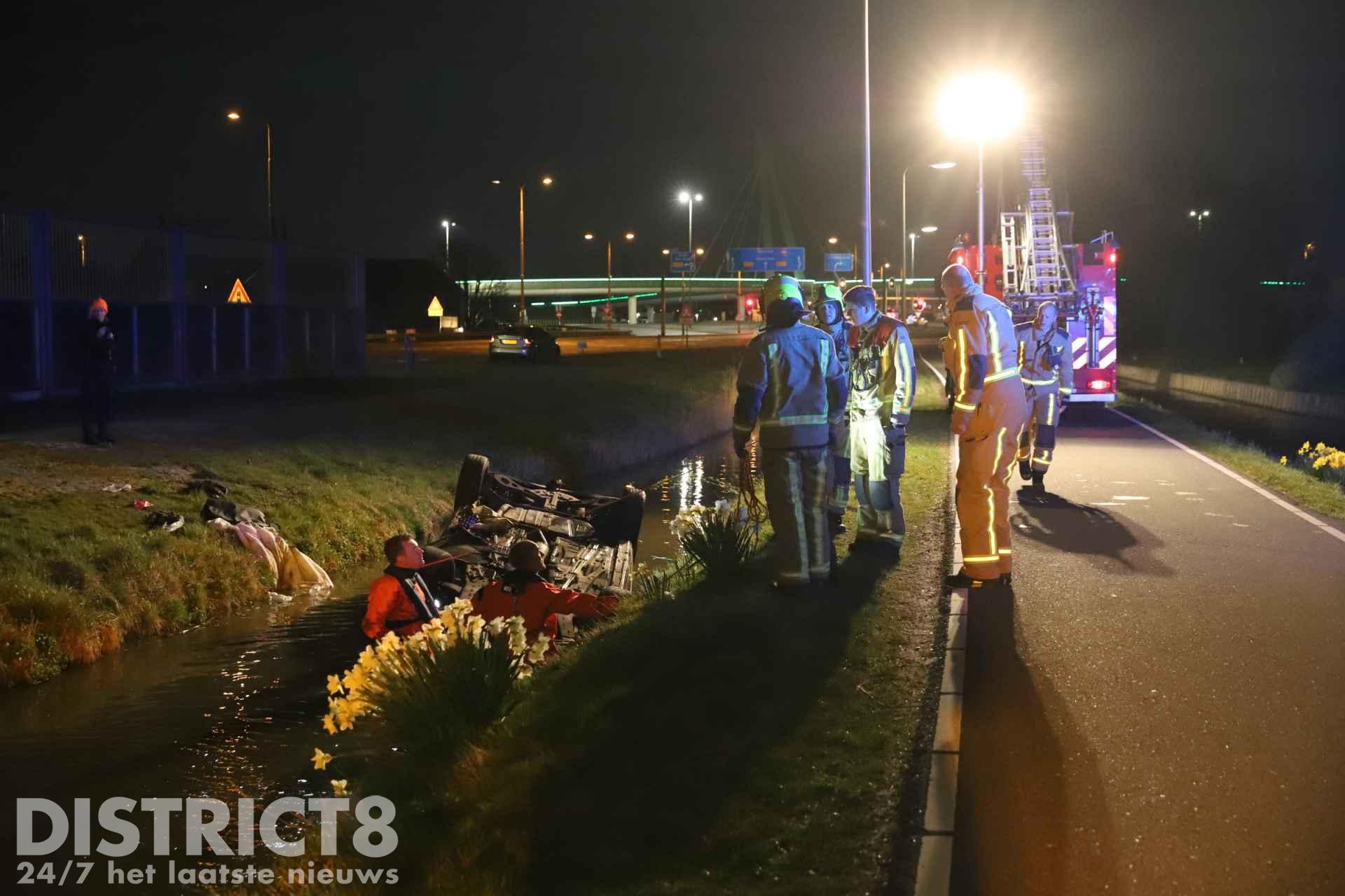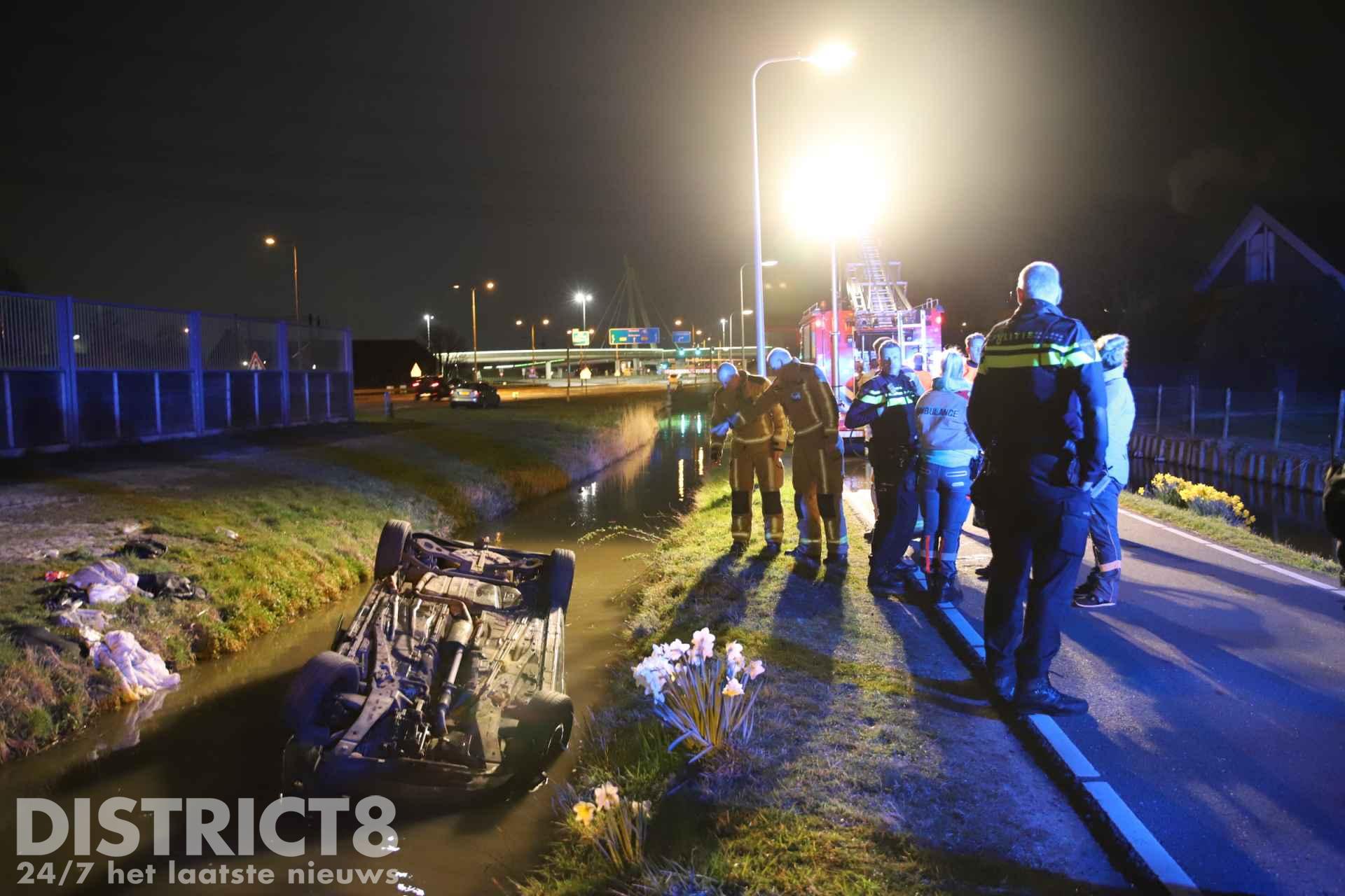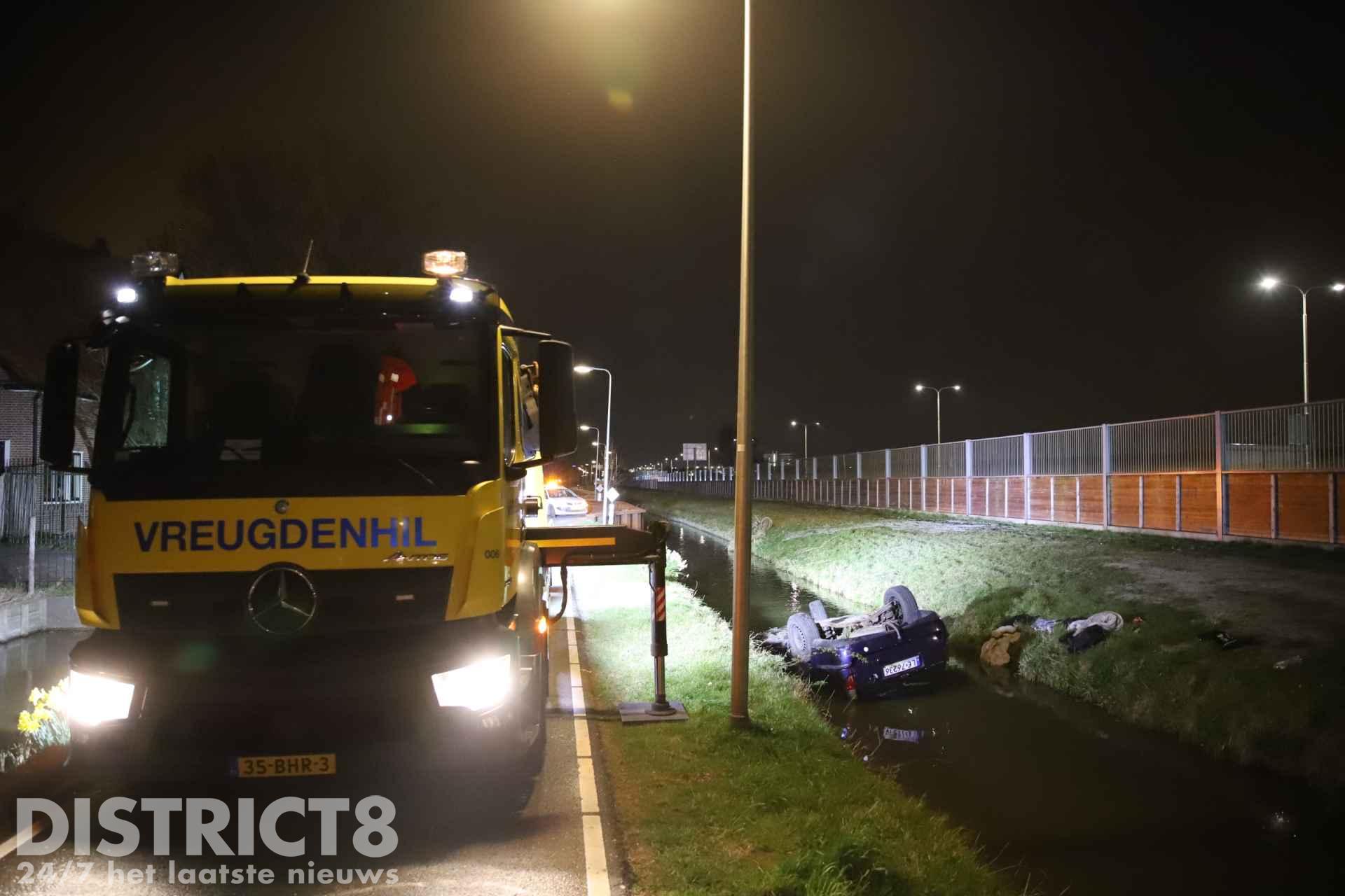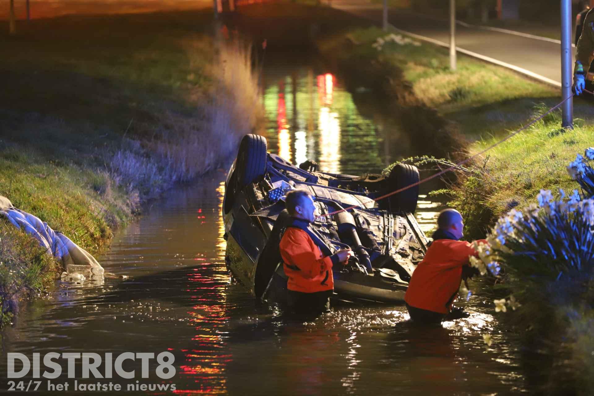 Om één uur ging het mis. De bestuurder wilde achteruit de oprit van zijn woning verlaten. Door te laat in te sturen kwam de auto in de berm terecht en zakte daarna weg de sloot in. De auto kwam uiteindelijk op z’n dak in het water terecht.