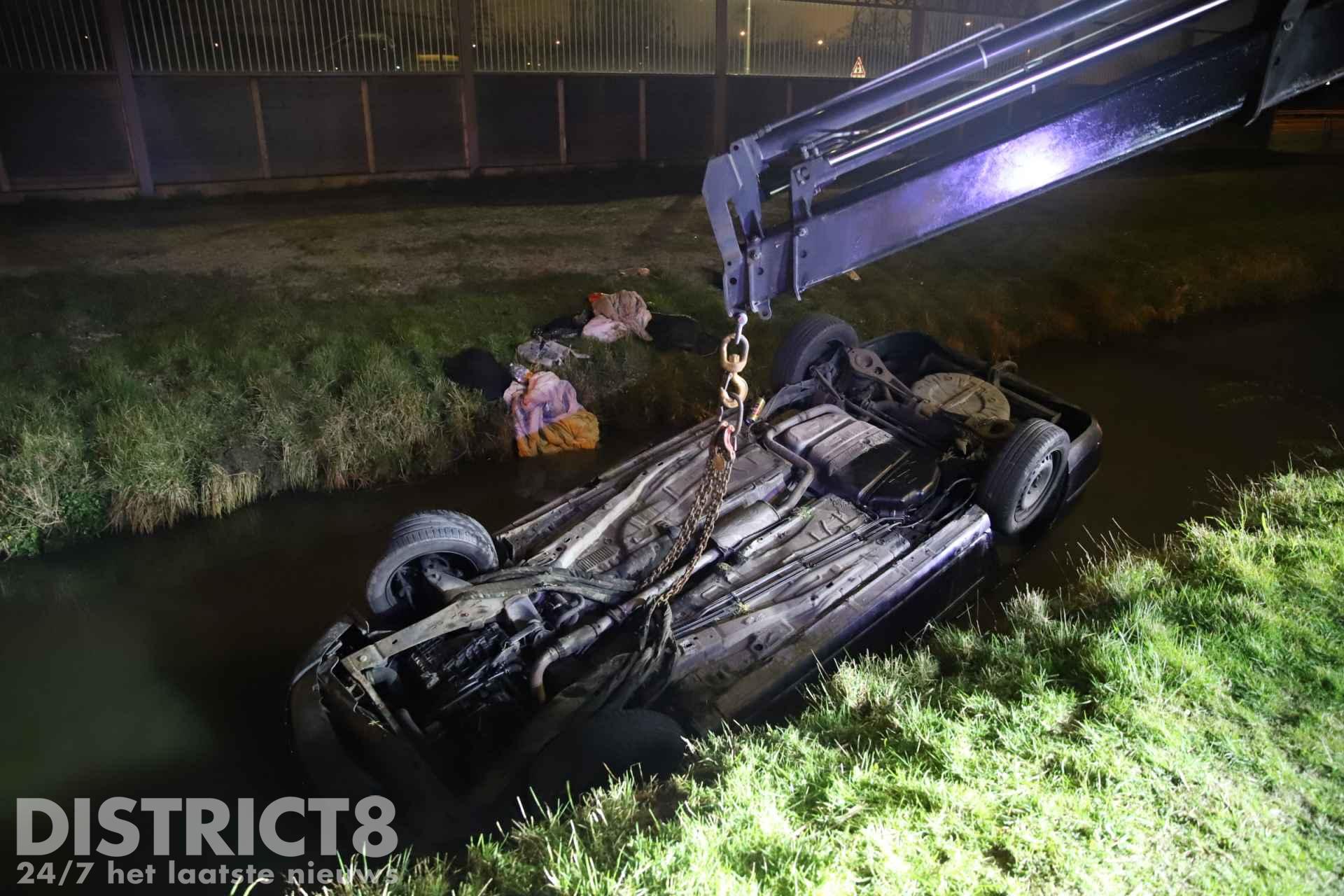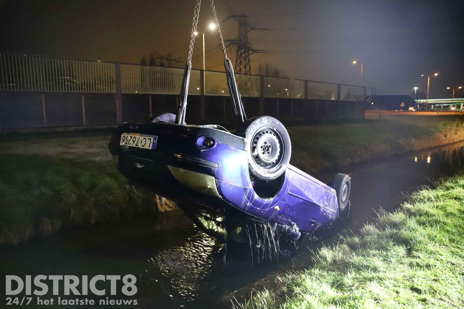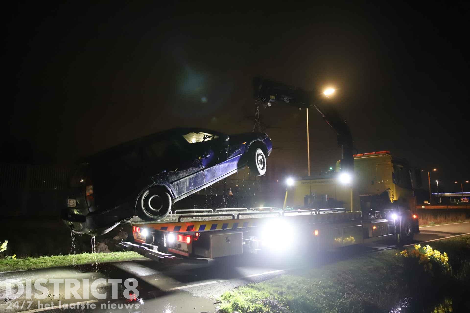 Een berger van Vreugdenhil is ter plaatse gekomen en heeft het voertuig uit het water gehesen.
