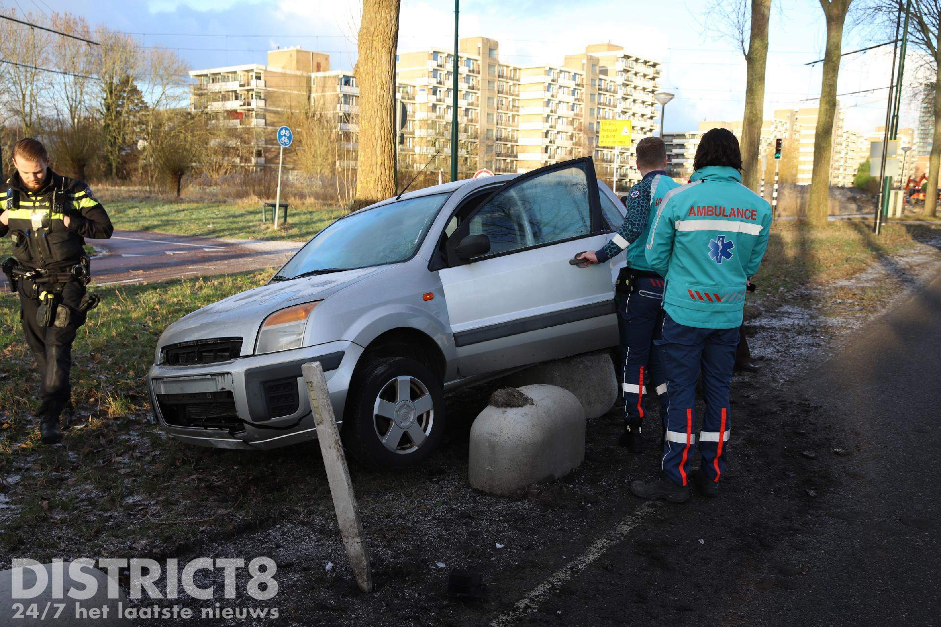 Rijswijk – Op de Prinses Beatrixlaan in Rijswijk is donderdagochtend 18 januari even na negen uur een automobilist op een betonblok gereden. De laagstaande zon was de boosdoener.