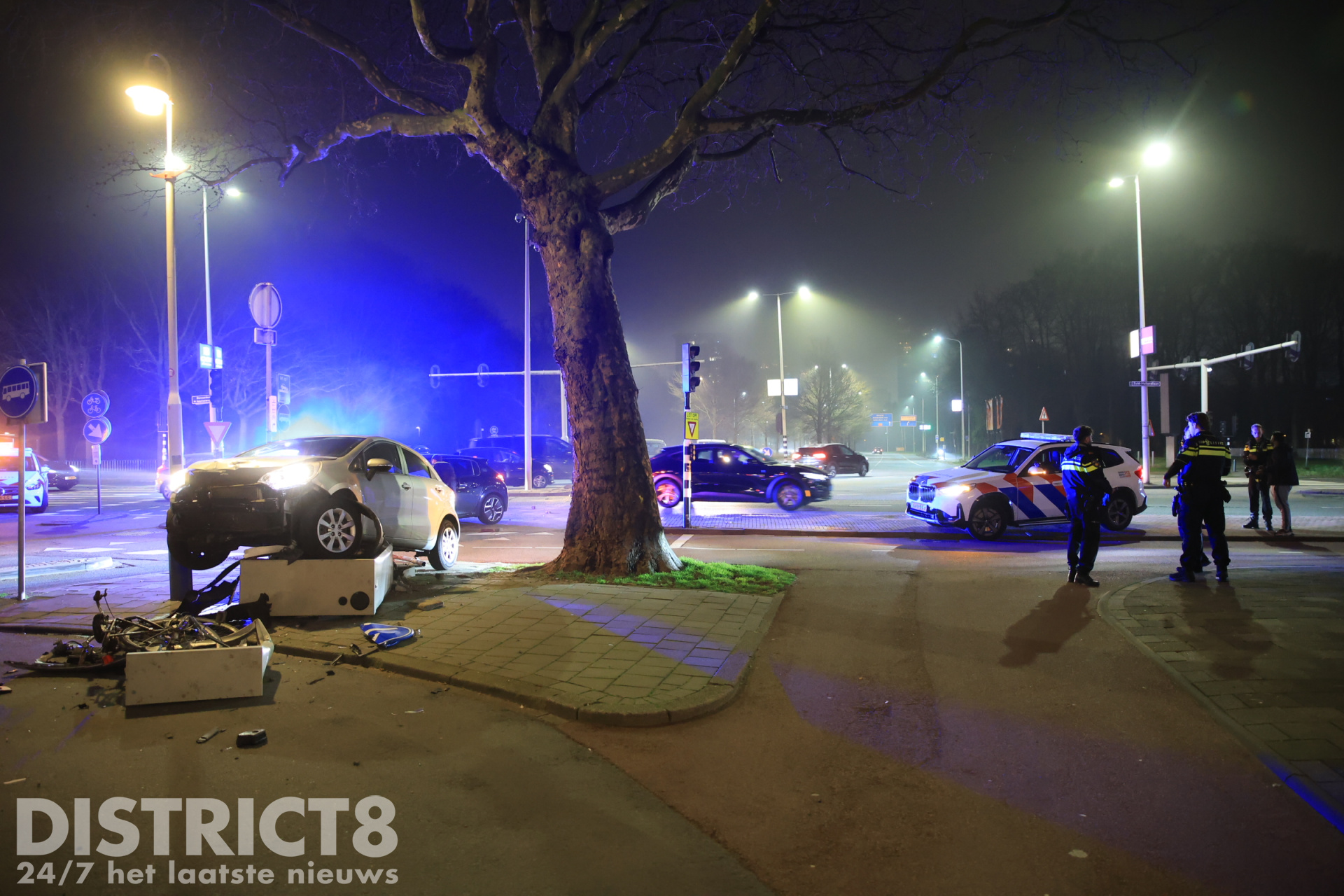 Den Haag – Op de Zuid-Hollandlaan in Den Haag heeft zich vrijdagavond 6 maart een ongeval voorgedaan waarbij een auto vanaf de A12 rechtdoor is gereden en een verkeersregelinstallatiekast (VRI) heeft geraakt. Door de aanrijding zijn de verkeerslichten op deze drukke kruising uitgevallen. De automobilist is vervolgens op de VRI kast tot stilstand gekomen, waarbij de auto met alle wielen los staat van de grond.