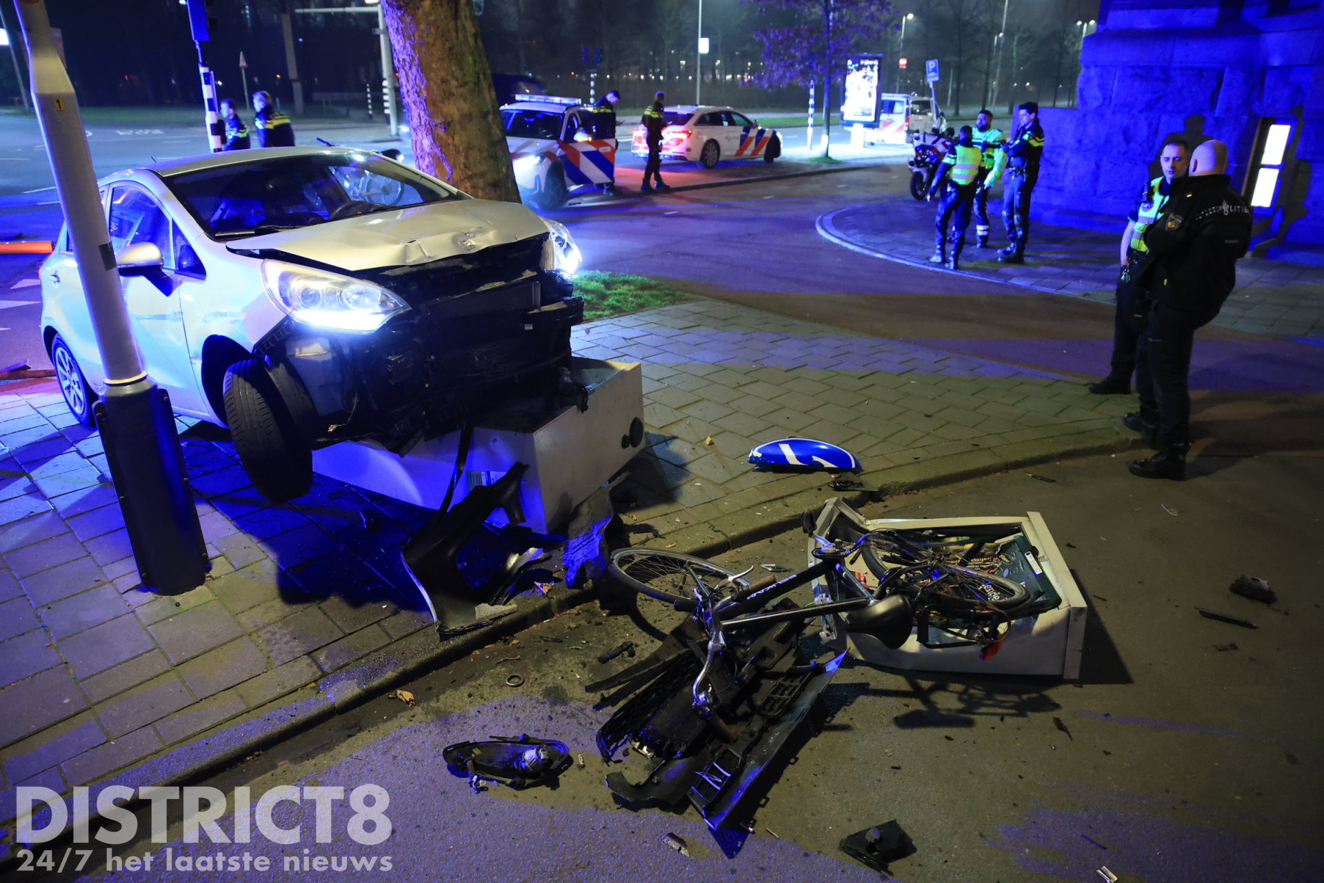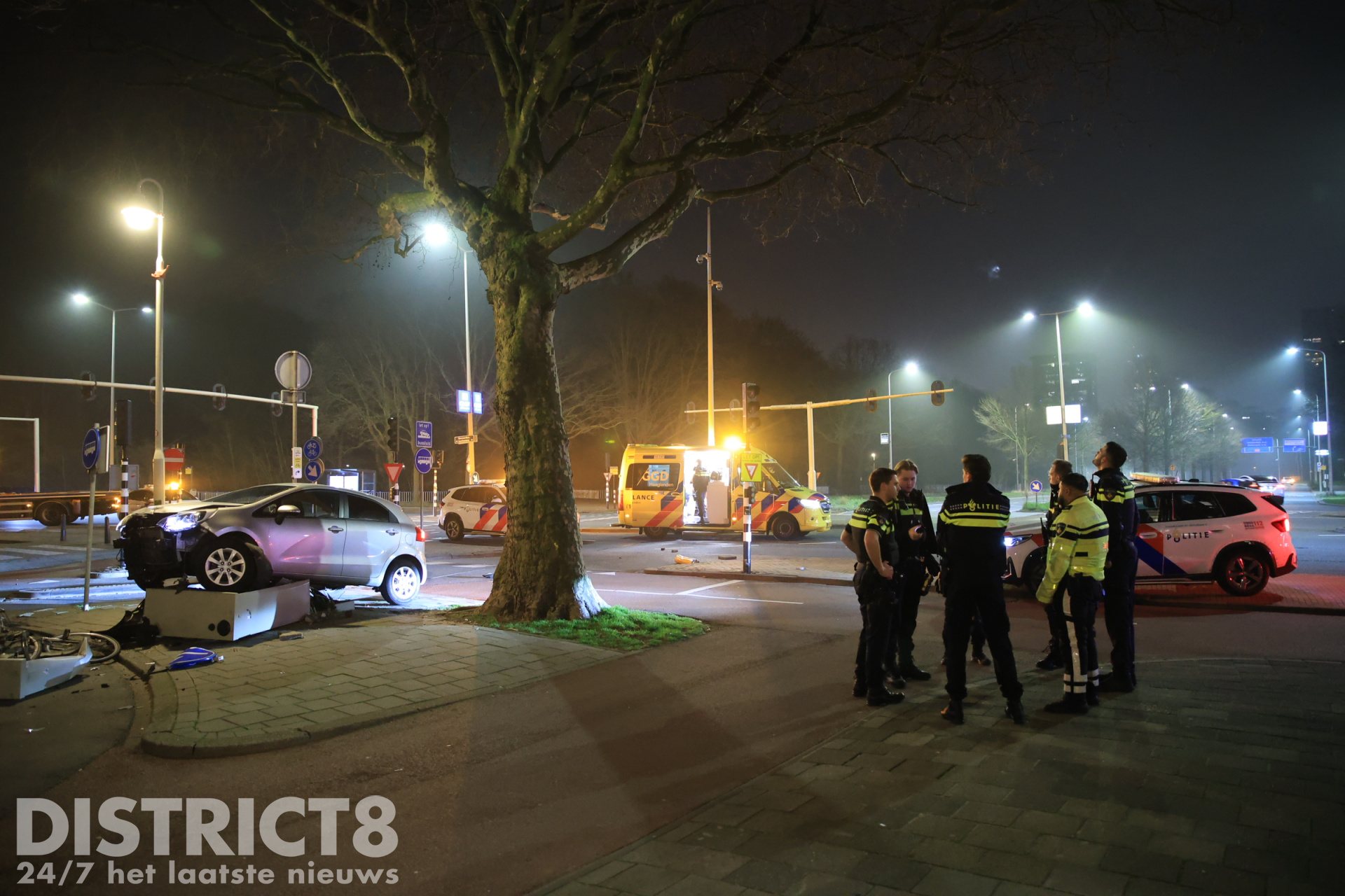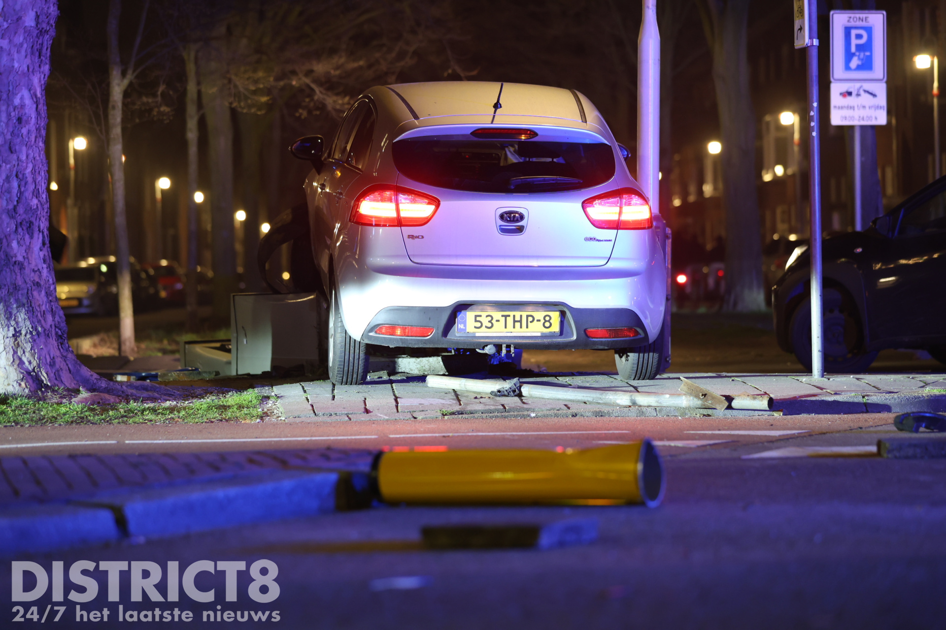 Automobilist rijdt rechtdoor en beschadigd verkeersregelinstallatiekast Zuid-Hollandlaan Den Haag