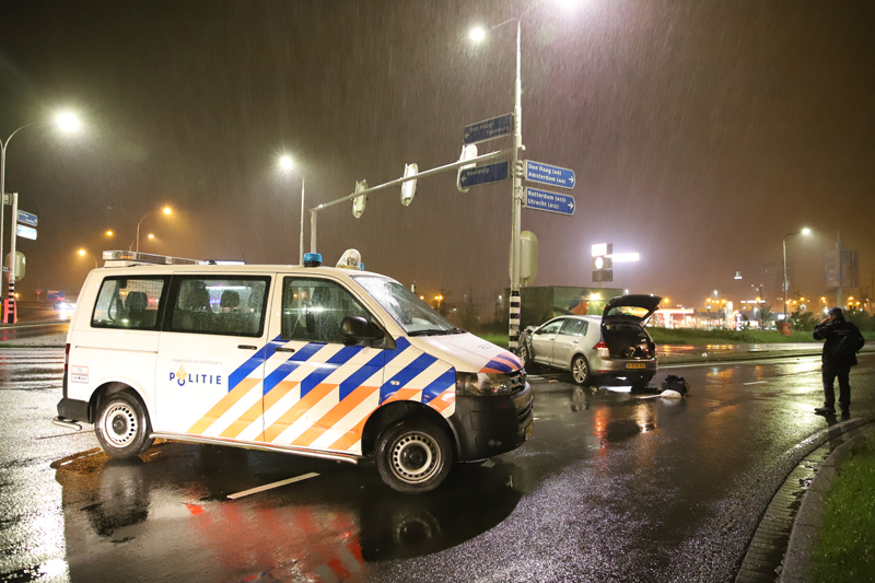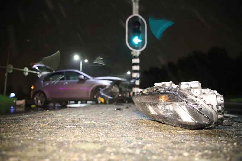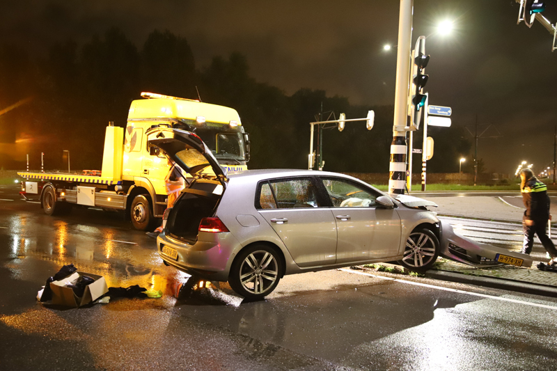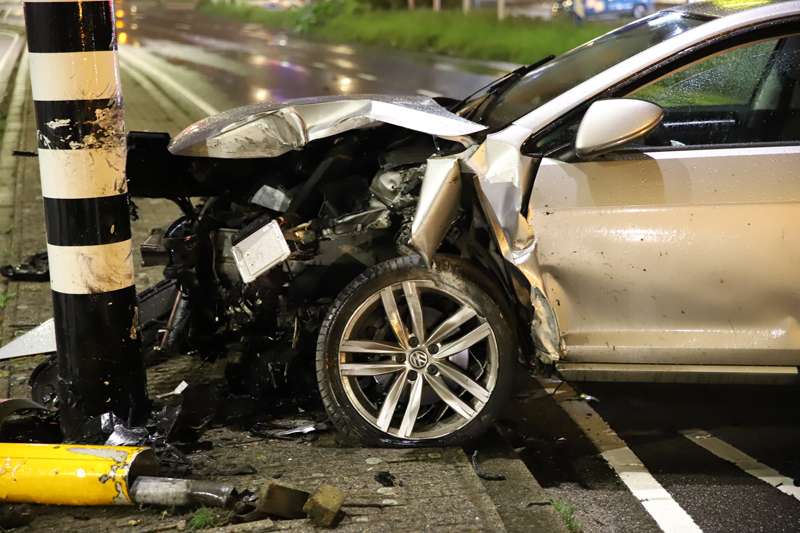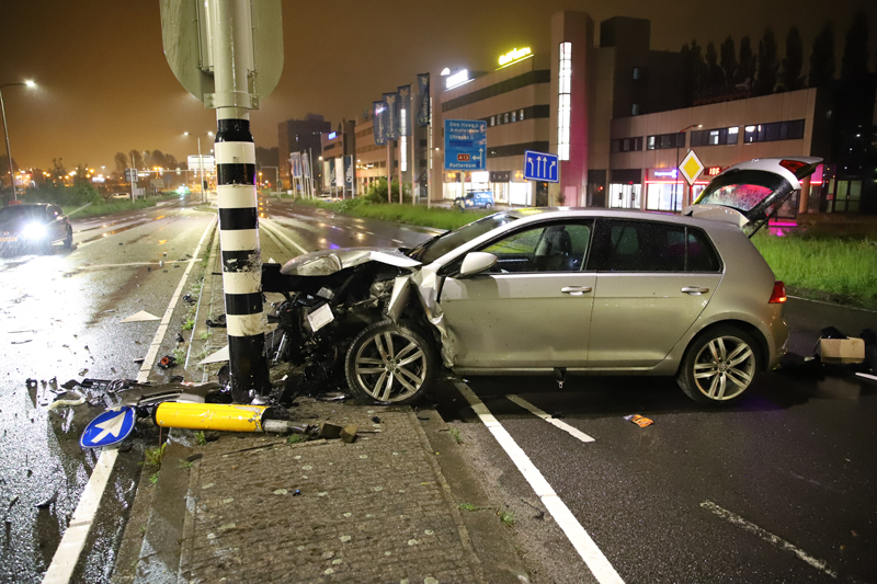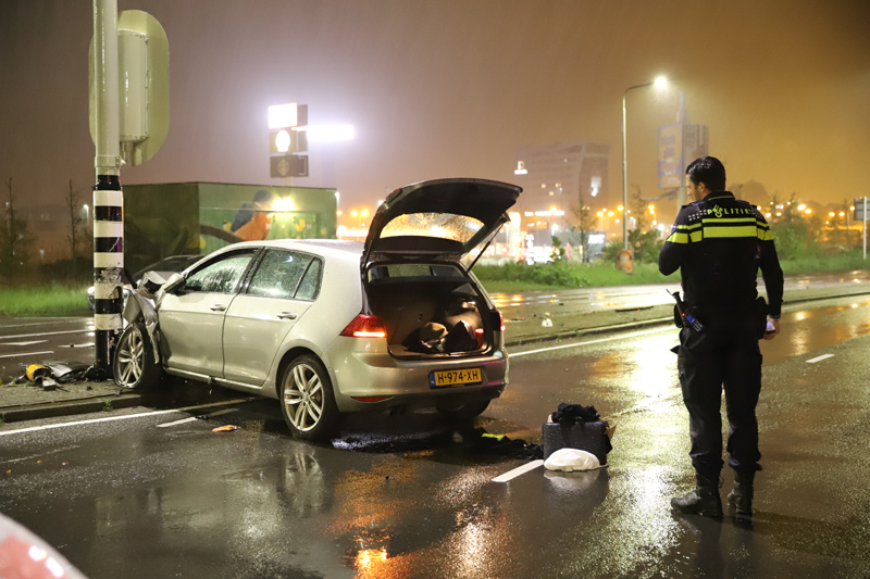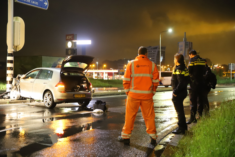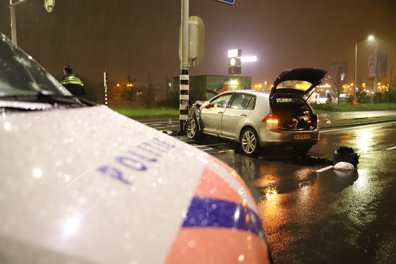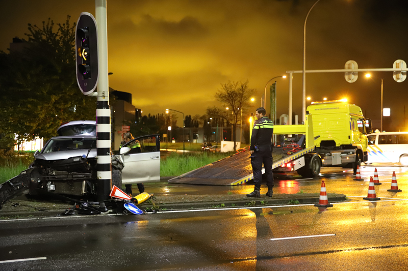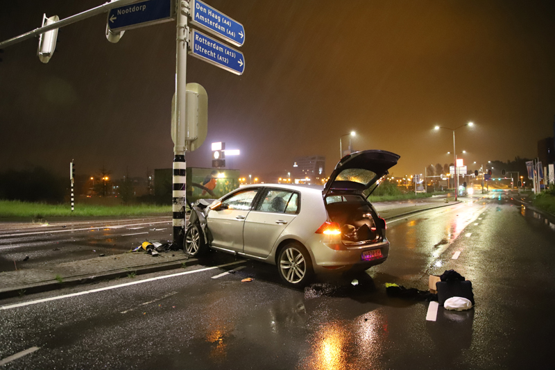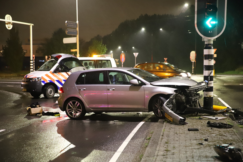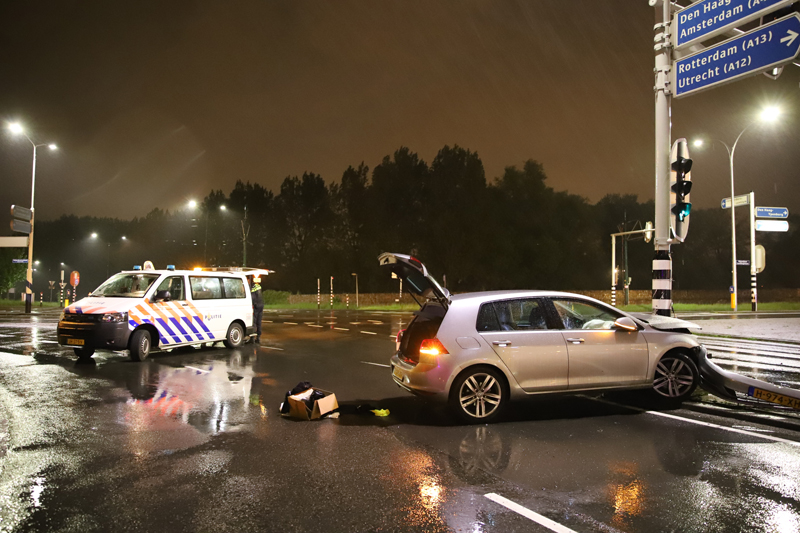 Even voor één uur ging het mis. Door nog onbekende oorzaak raakte de automobilist de macht over het stuur kwijt. Dit eindigde in een flinke knal tegen het verkeerslicht op de kruising met de Rijswijkse Landingslaan.
