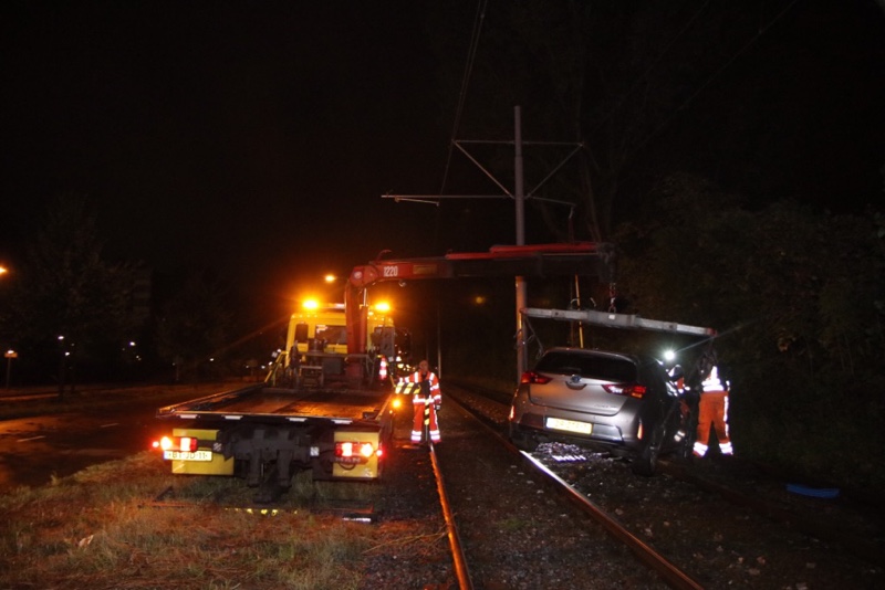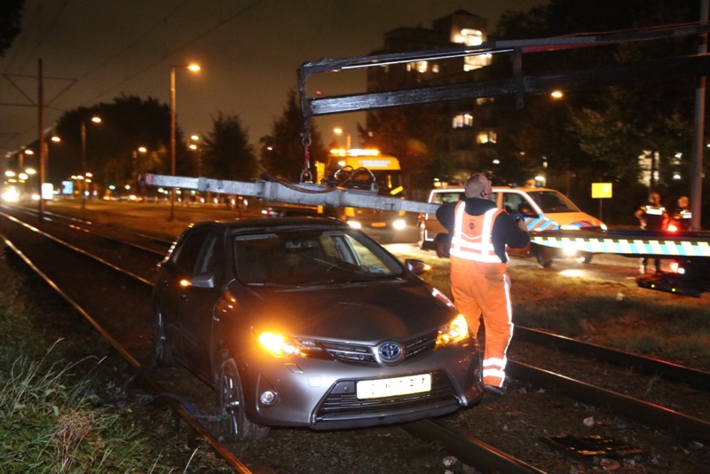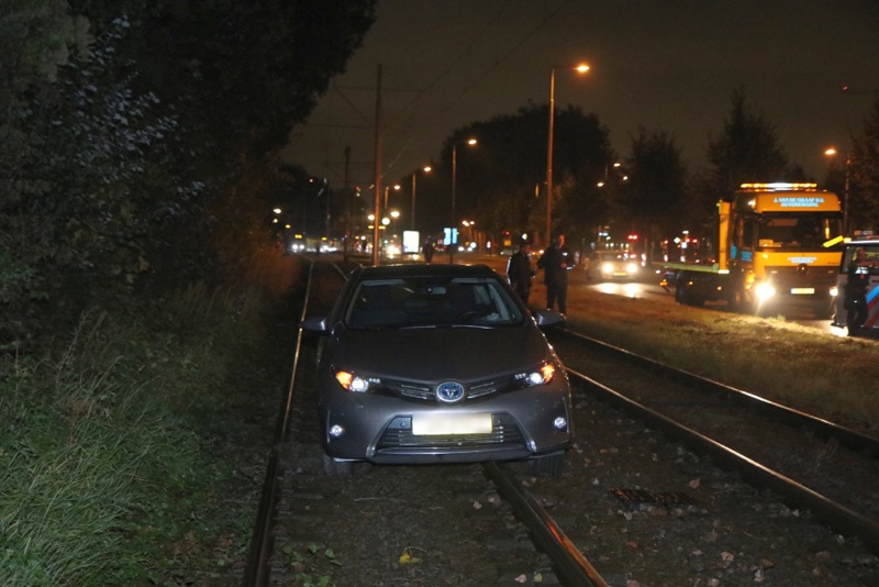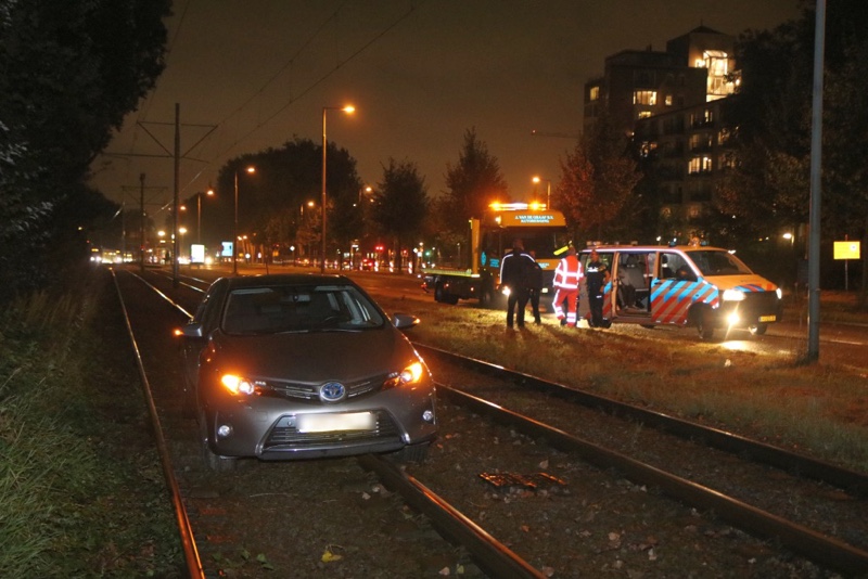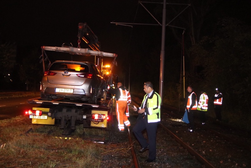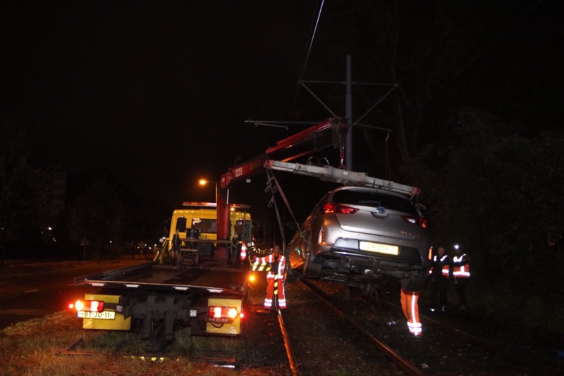 De auto is bij de Prinses Beatrixlaan de trambaan opgereden. De weg is daar afgesloten in verband met wegwerkzaamheden. Er moest een takelbedrijf aan te pas komen om de auto weer van de onverharde trambaan af te krijgen.