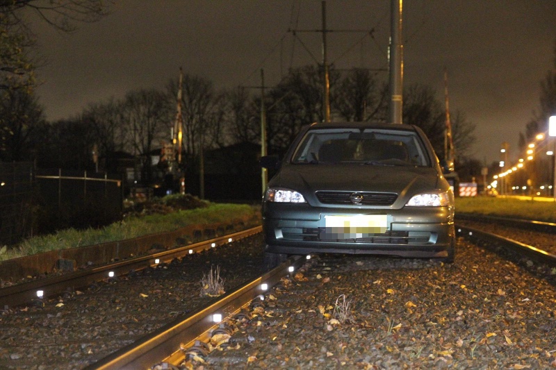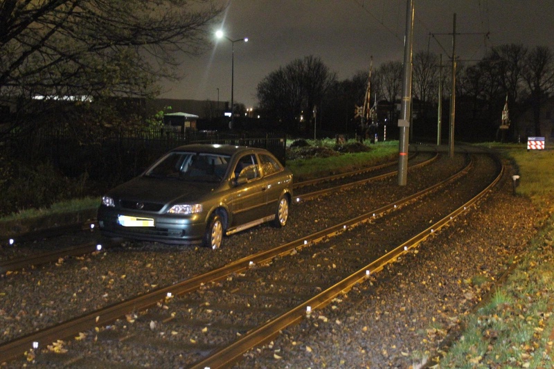 Home Haaglanden Automobilist rijdt zich vast op tramspoor Delftweg Rijswijk