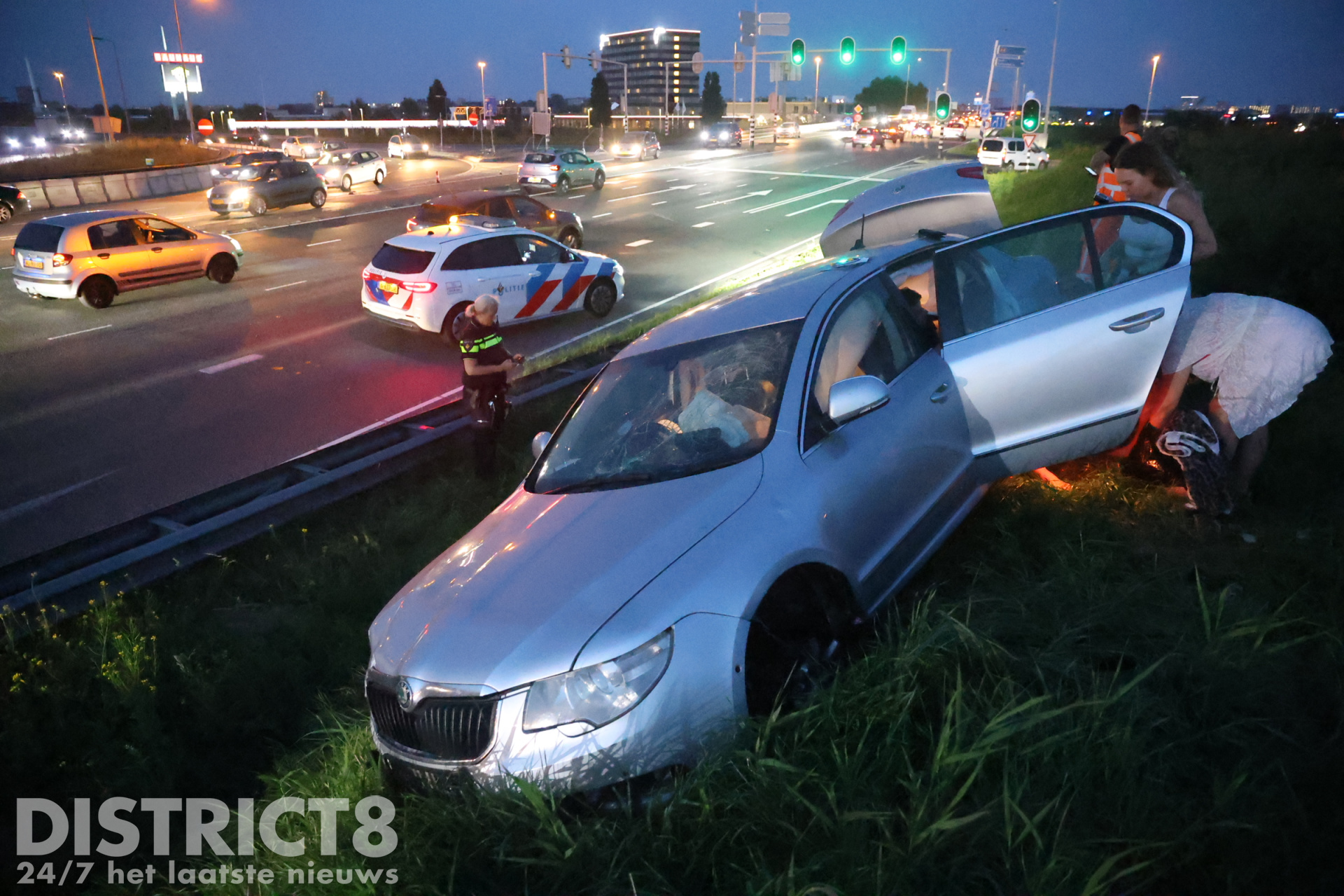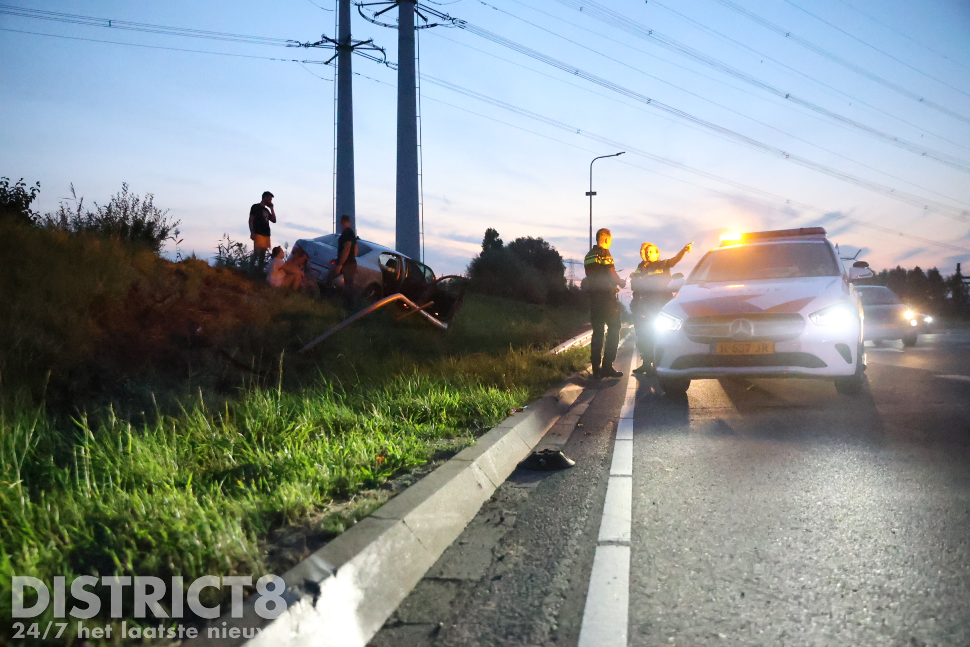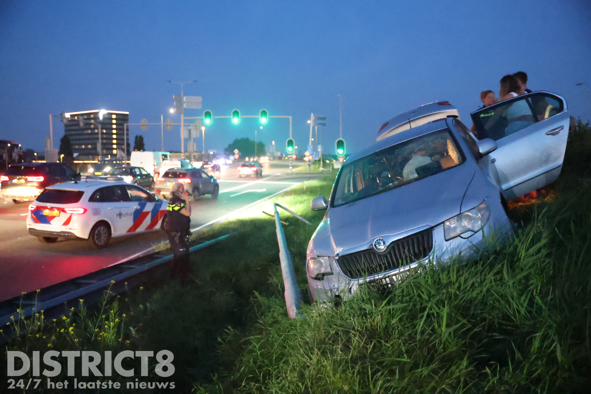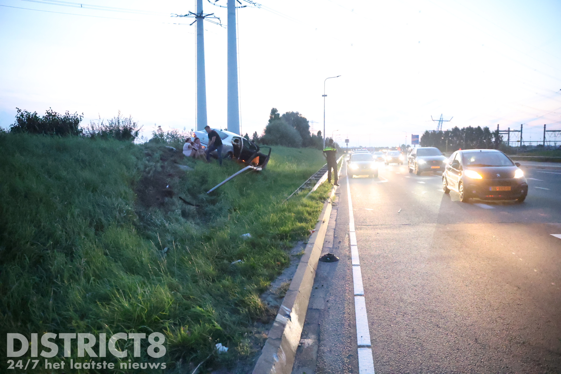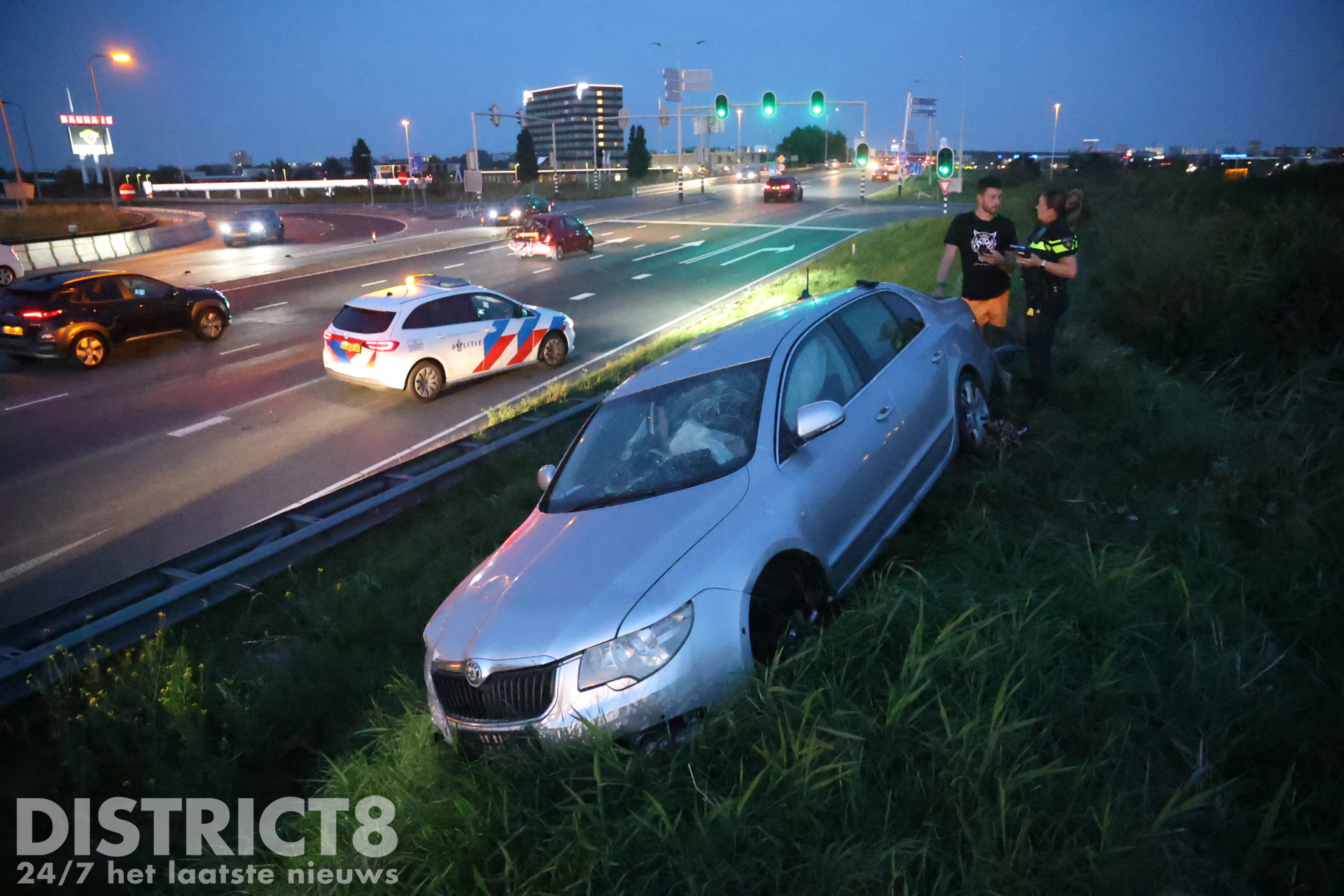 Den Hoorn – Een automobilist is zondagavond 1 september uit de bocht gevlogen. Omstreeks 20:35 kwam de automobilist vanaf de afrit van de A4, hij vloog bovenaan de afrit uit de bocht, kwam tegenovergesteld op de weg terecht en vloog uiteindelijk achter de vangrail langs. Onderweg ramde de auto nog een lantaarnpaal.