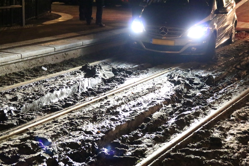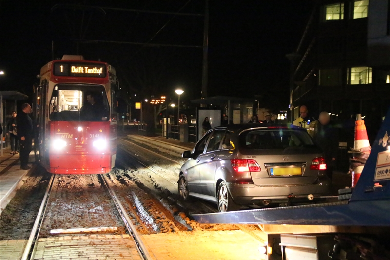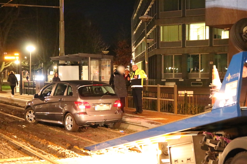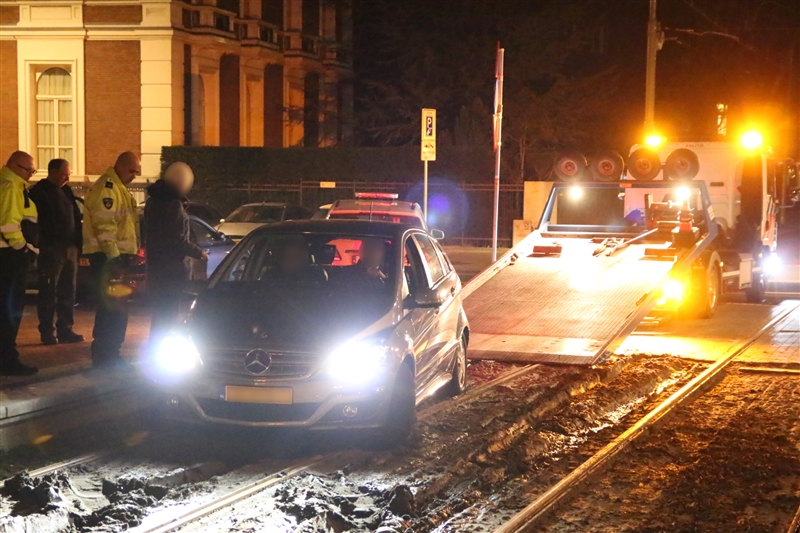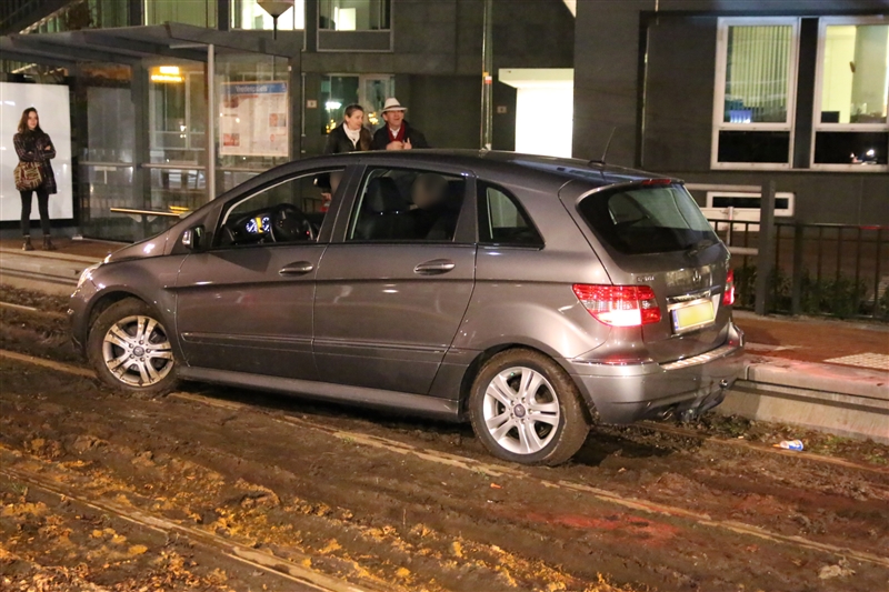 De automobilist was niet bekend in Den Haag en wilde rechtsaf slaan. Echter nam hij de bocht te kort en reed de trambaan op. De trambaan was hiervoor niet bedoeld en was door de afgelopen werkzaamheden aan de sporen volledig omringd door modder. De automobilist probeerde er zelf nog uit te rijden, maar reed zich alleen maar vaster.