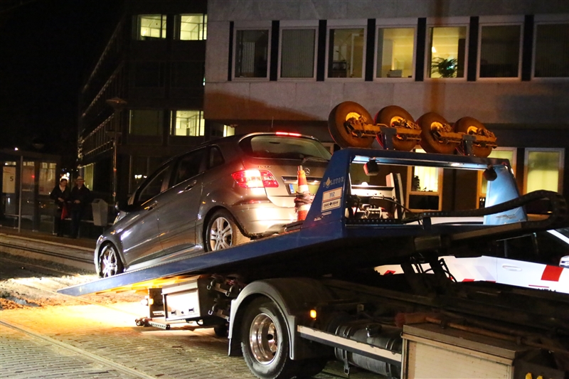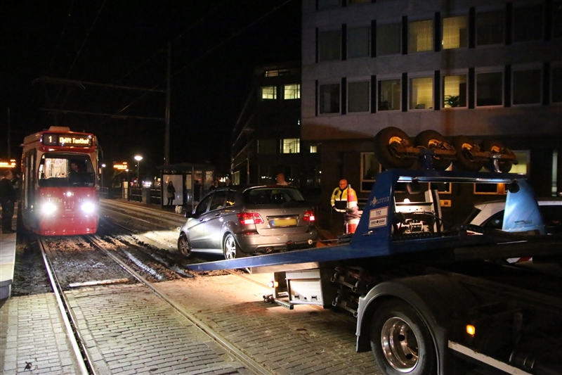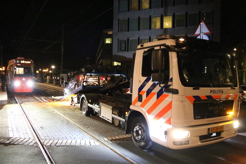 Doordat de auto op de trambaan stond raakte tram 1 richting Scheveningen kort gestremd. Een toevallig passerende politie berger van Team Transport zag het euvel en begon direct met het bergen van de auto.