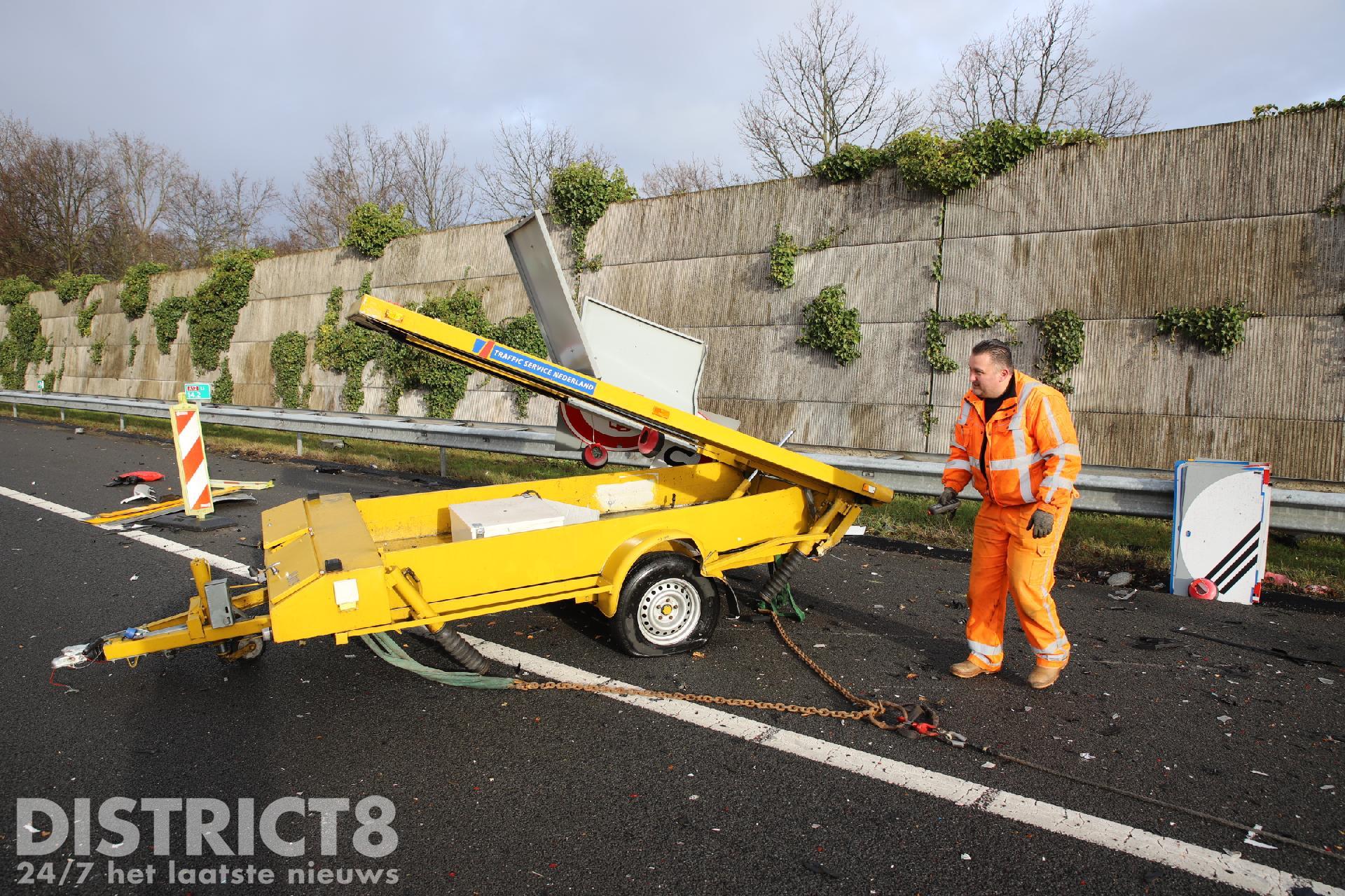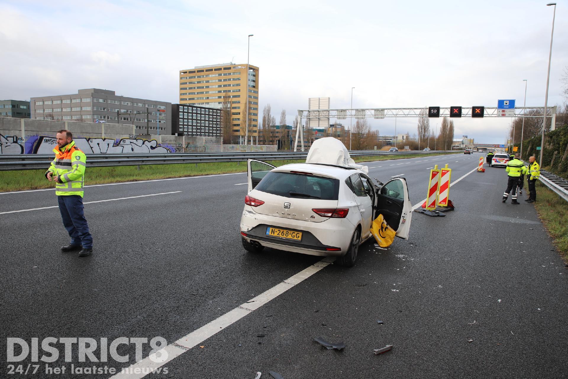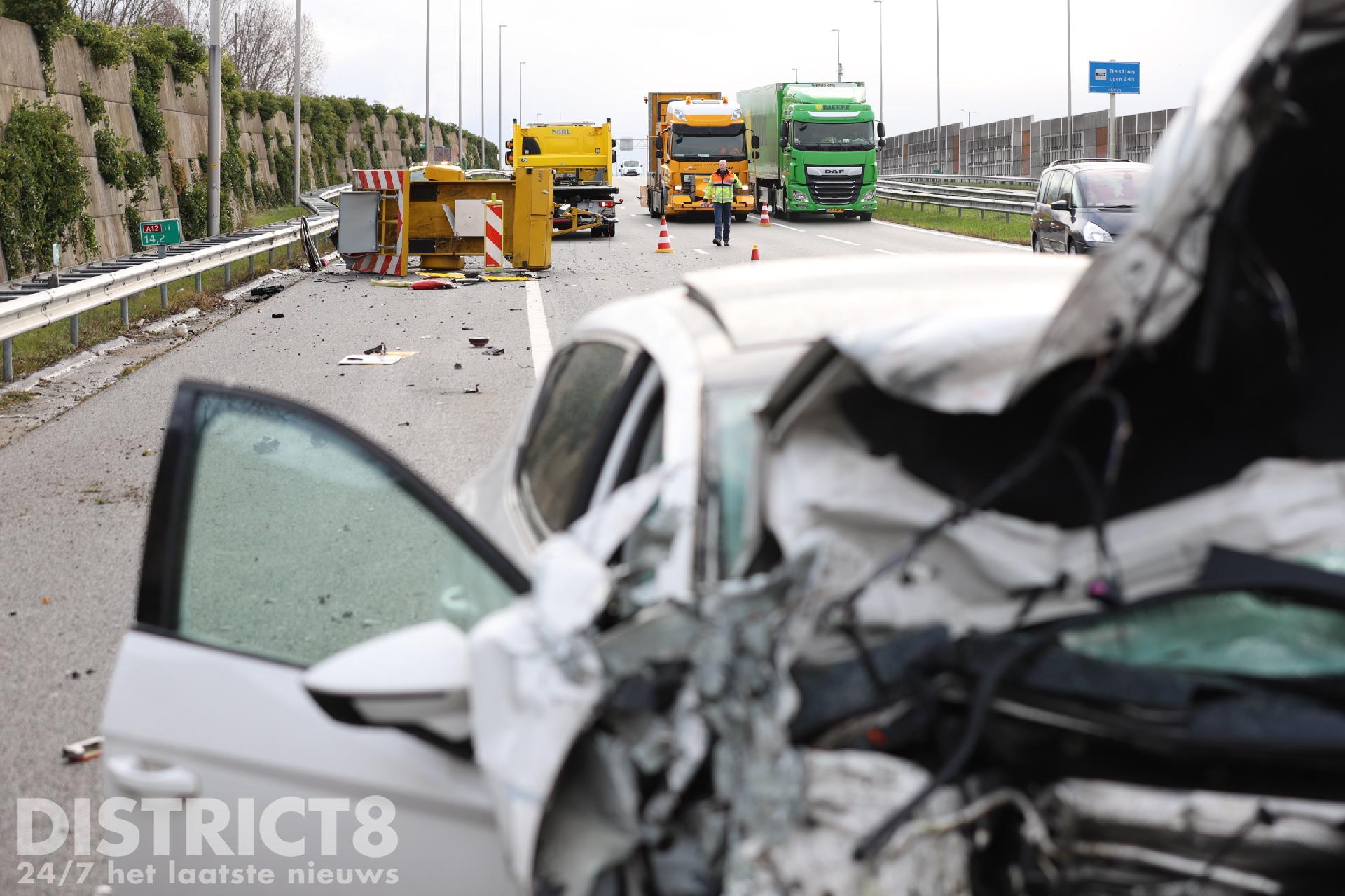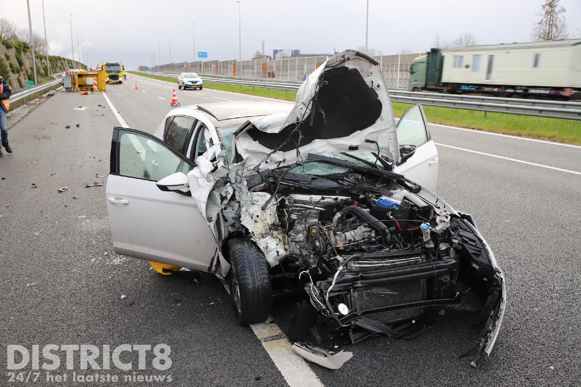 Hierdoor kwam de auto deels op de vluchtstrook terecht waar een actiewagen stond. De automobilist kon niet voorkomen dat hij met hoge snelheid op de wagen klapte.