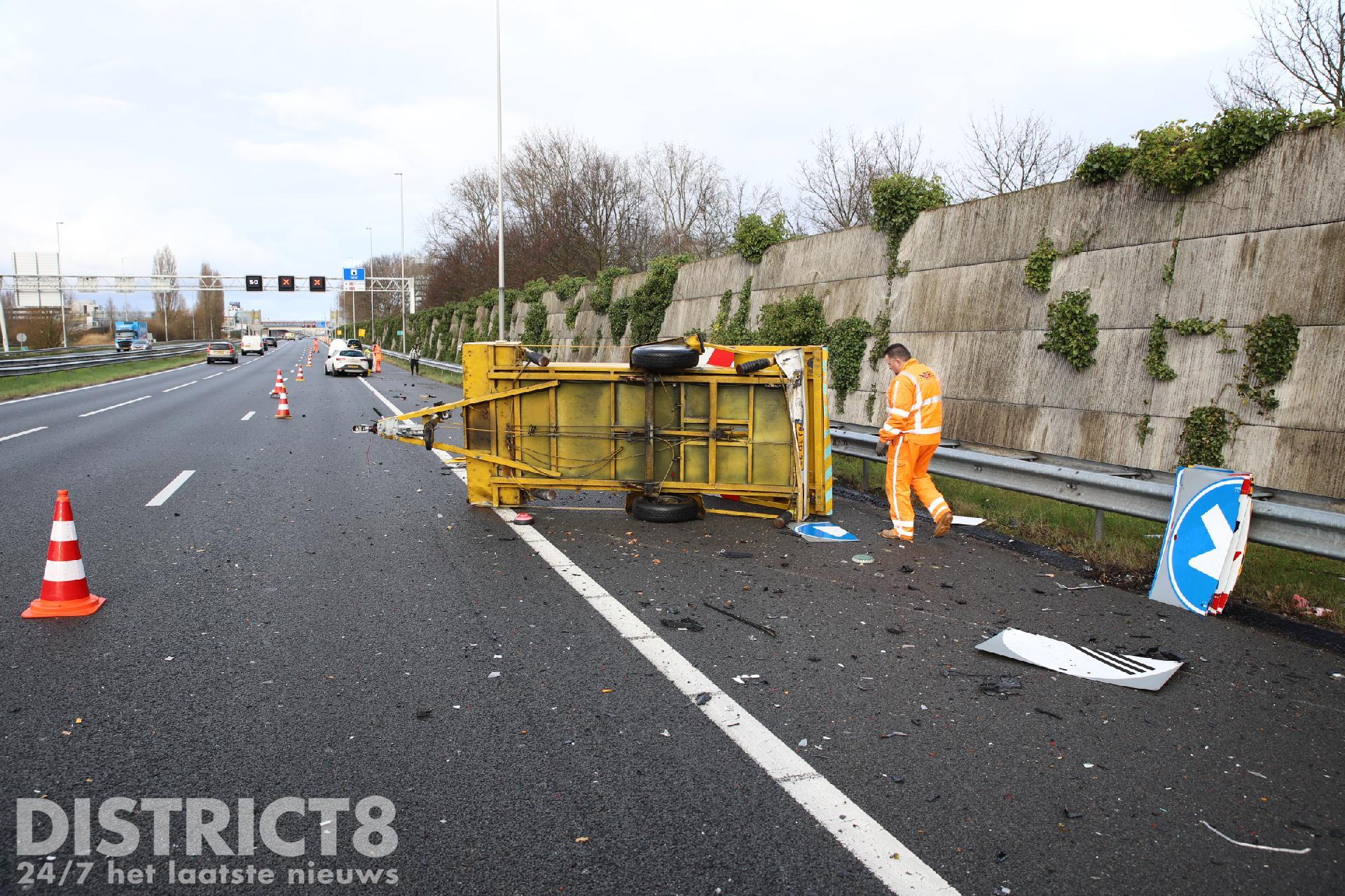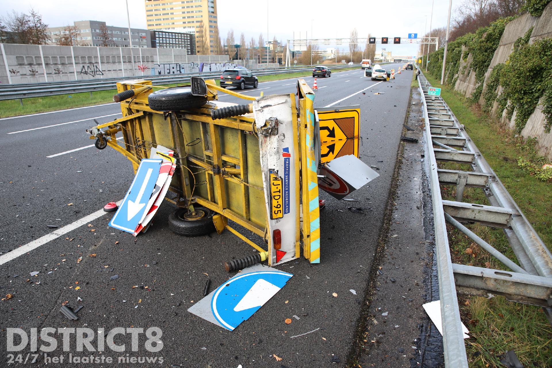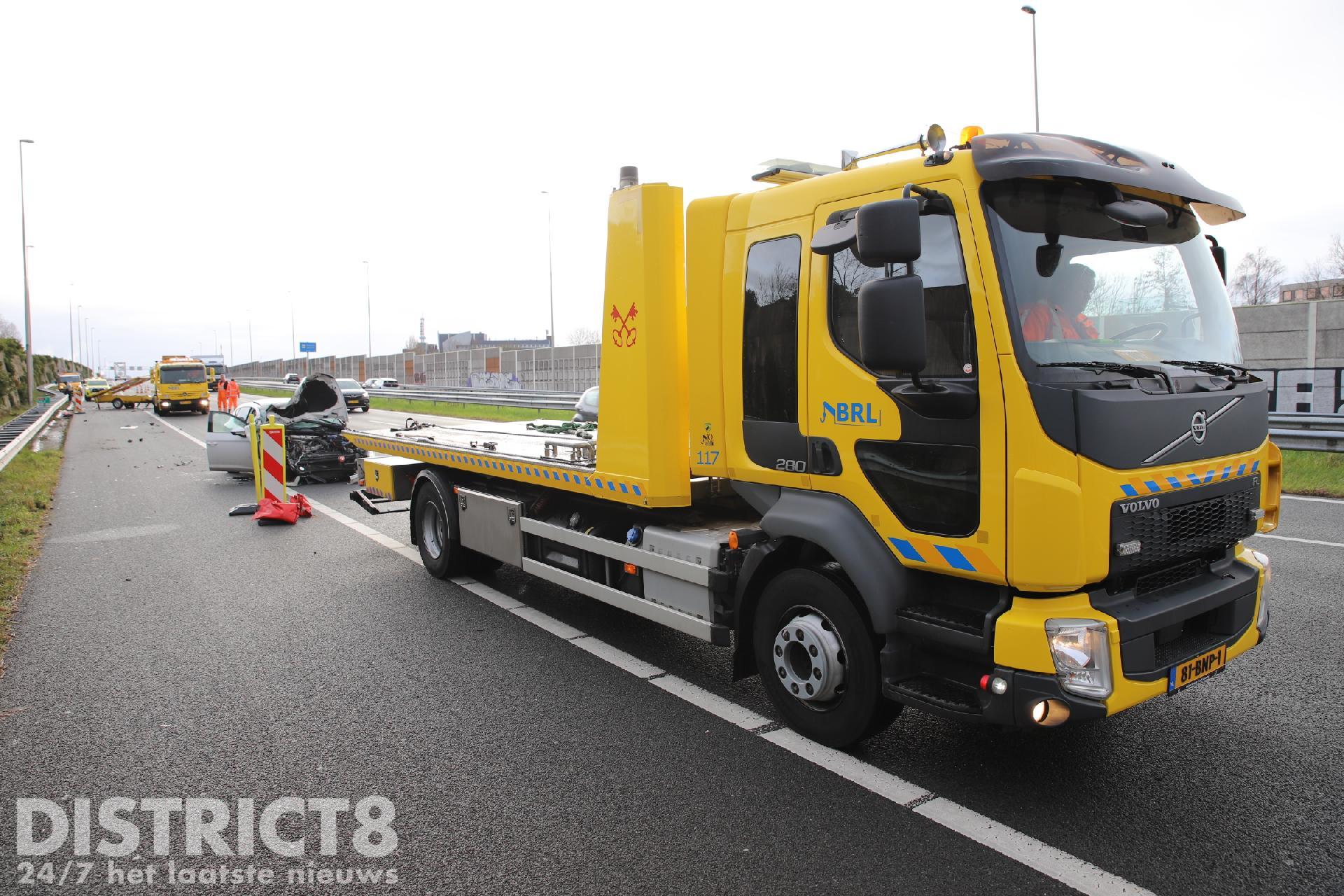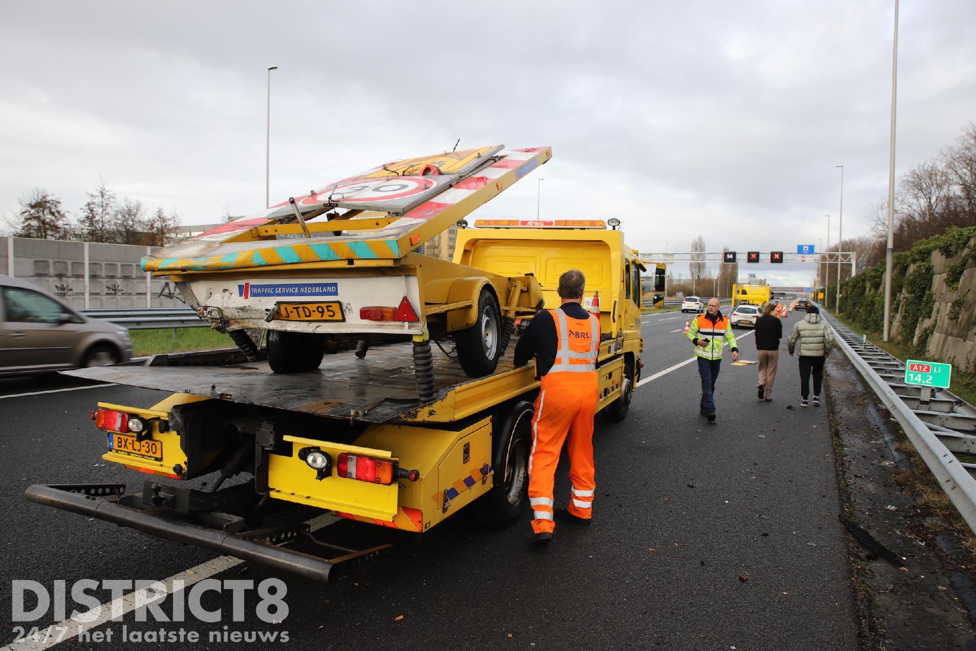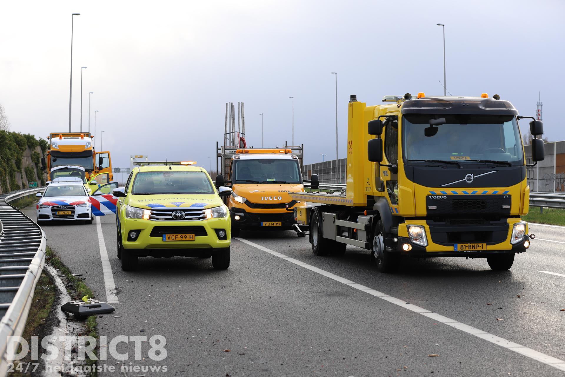Hierdoor kwam de auto deels op de vluchtstrook terecht waar een actiewagen stond. De automobilist kon niet voorkomen dat hij met hoge snelheid op de wagen klapte.