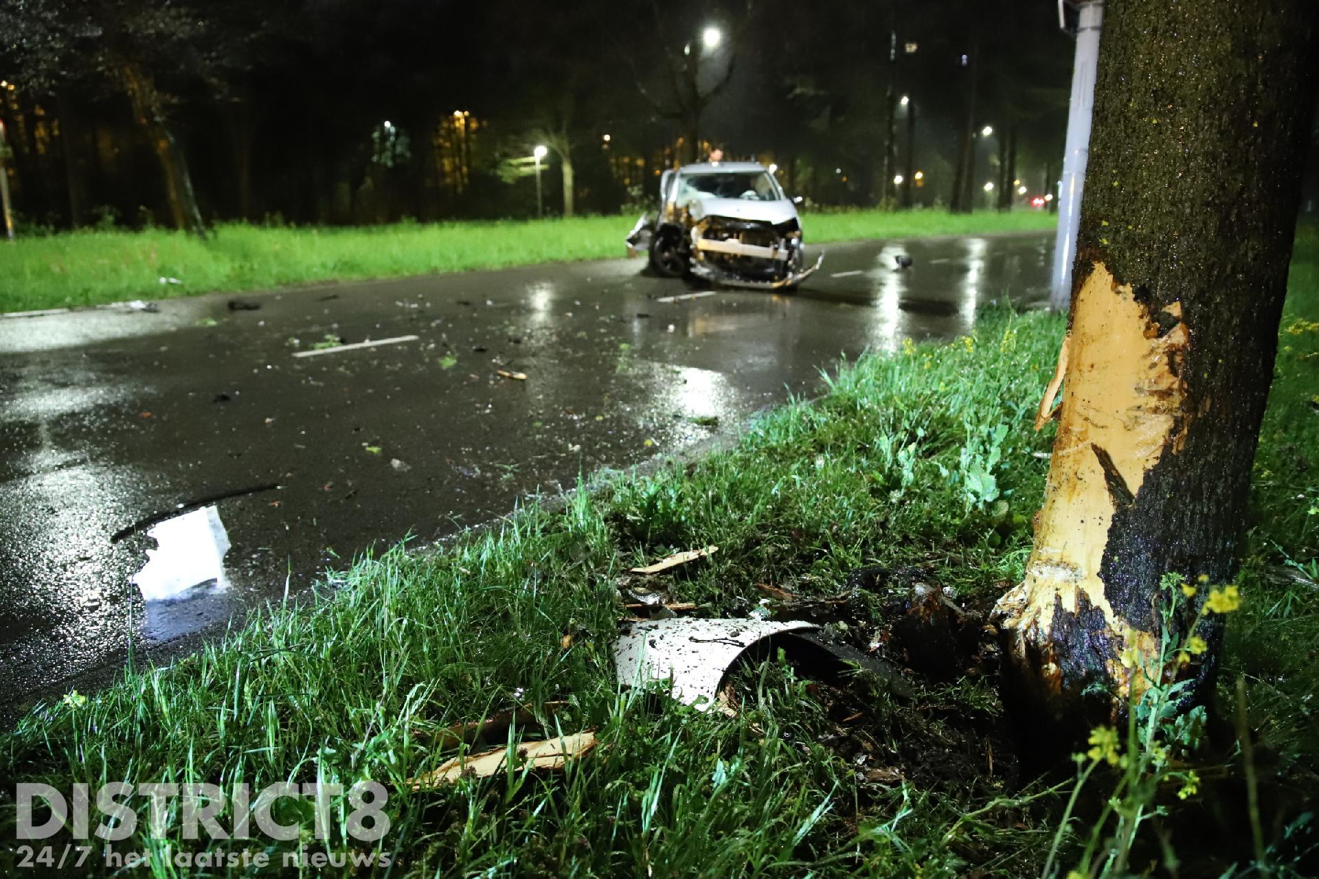 Automobilist valt in slaap en ramt boom Lozerlaan Den Haag