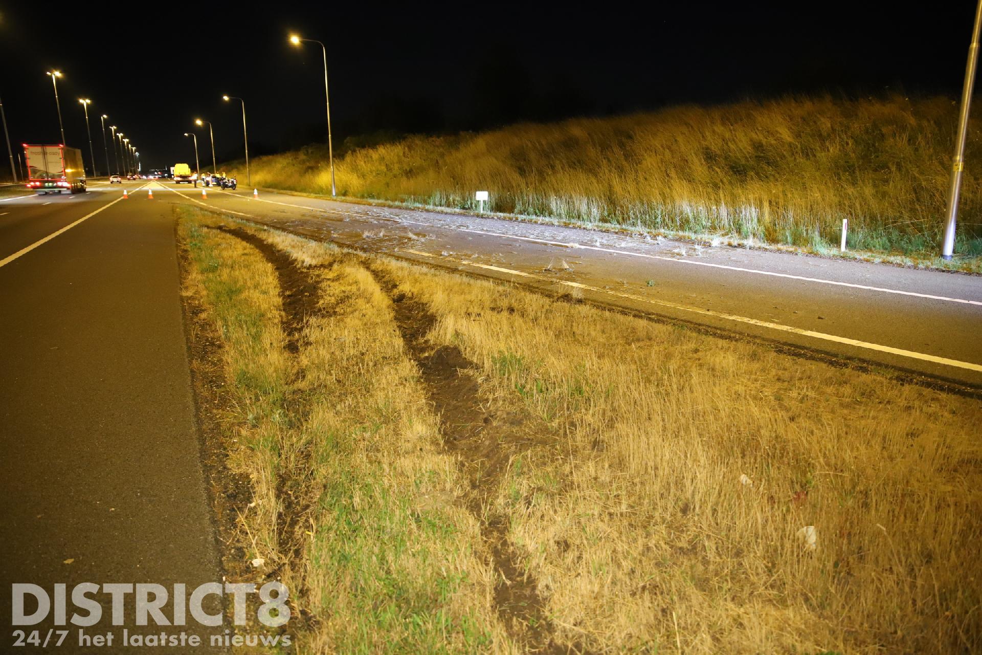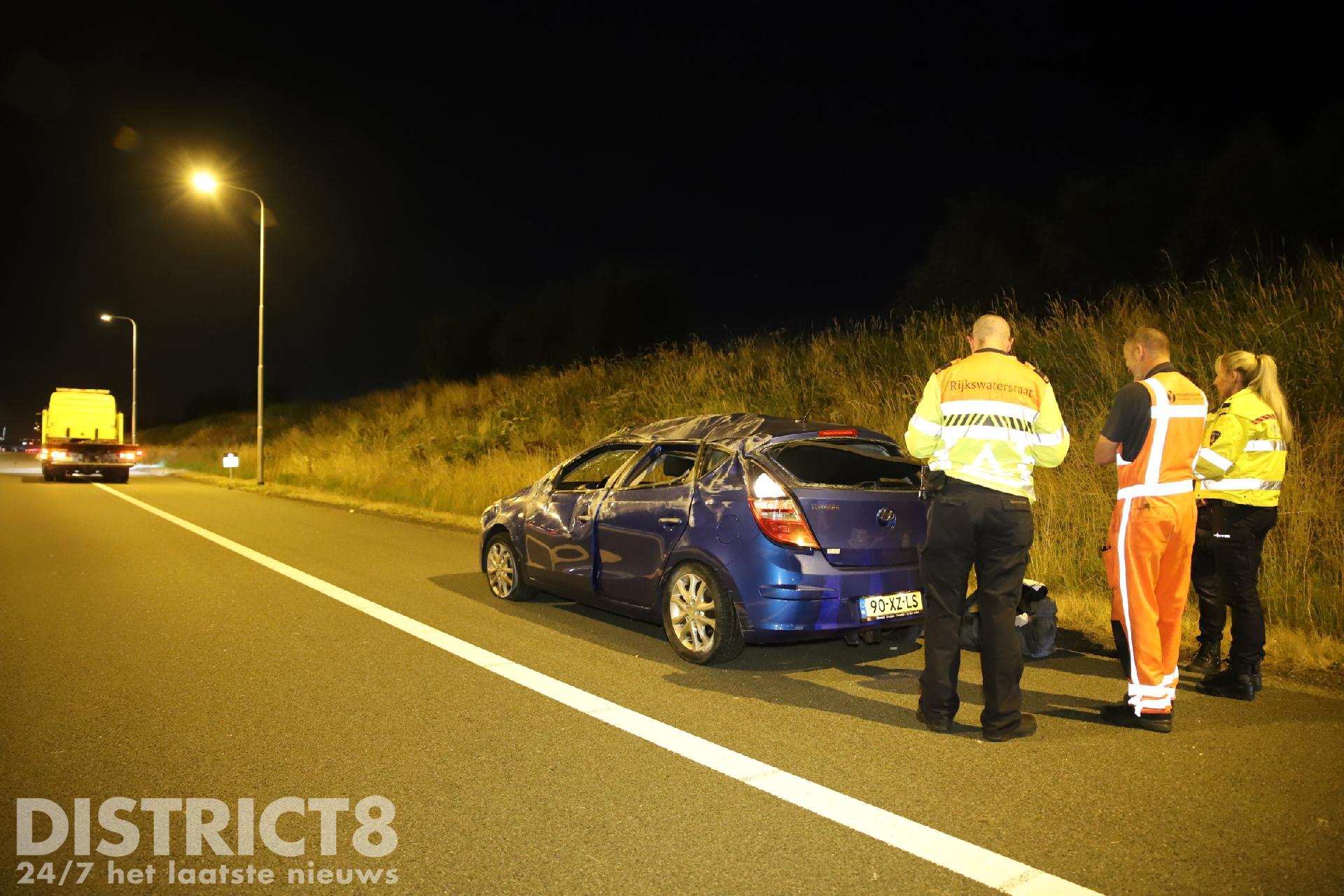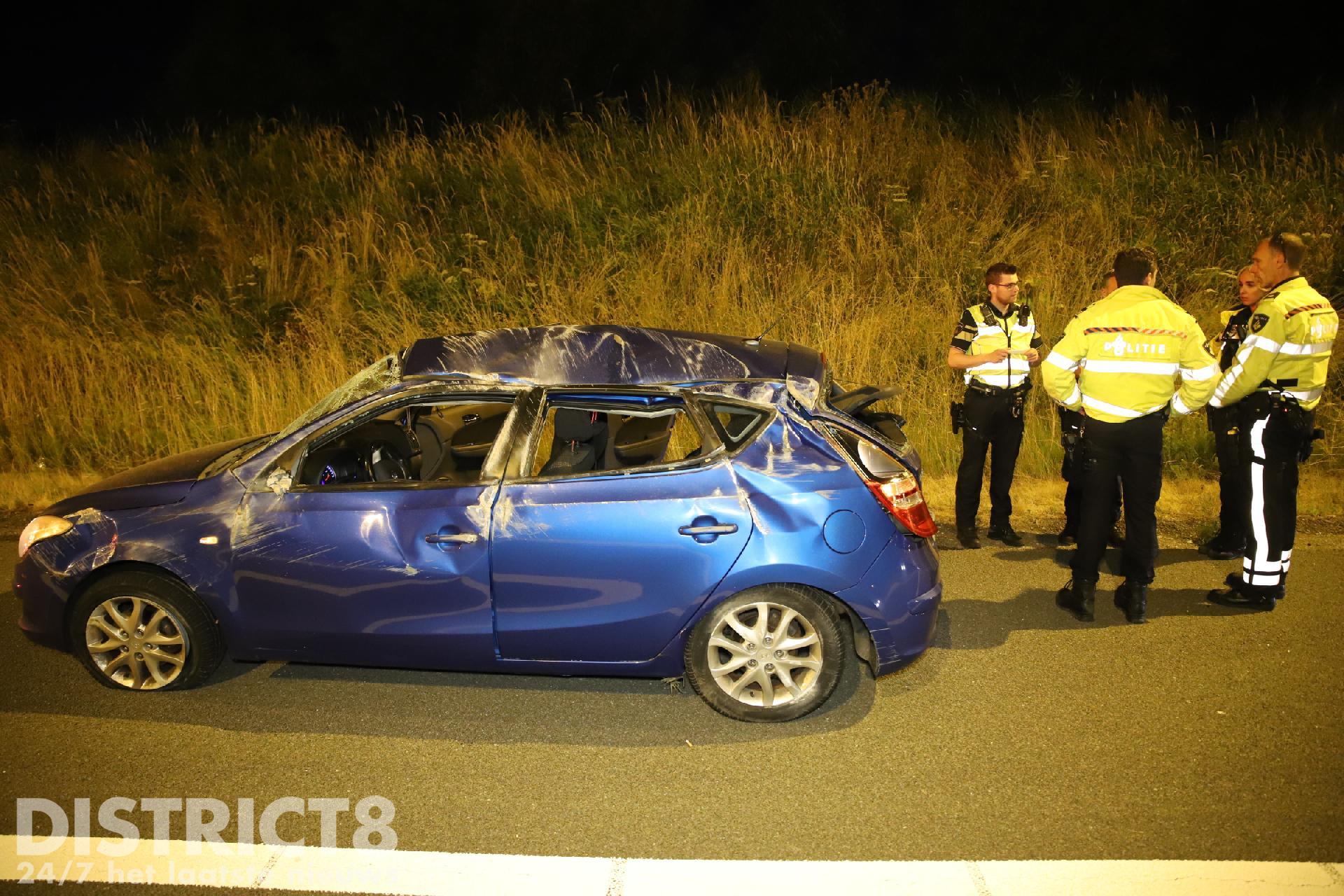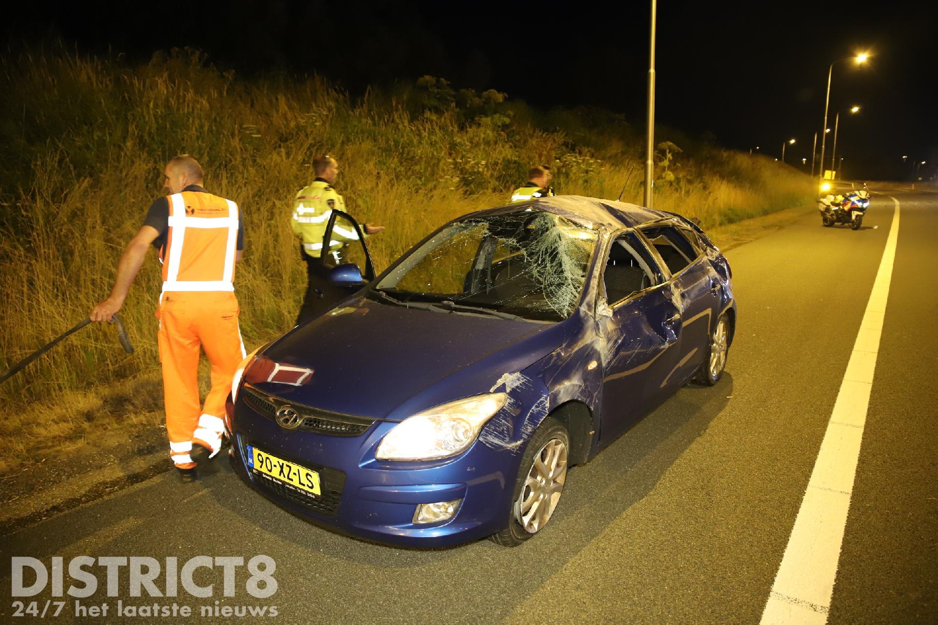 De bestuurder reed op hoofdrijbaan van de snelweg, maar raakte door een nog onbekende oorzaak de macht over het stuur kwijt. Hij kwam hierdoor op de toerit terecht, reed door de (schuine) berm waardoor hij over de kop vloog en een stuk op z’n kant over de snelweg schoof, vervolgens kwam de auto weer op vier wielen tot stilstand.