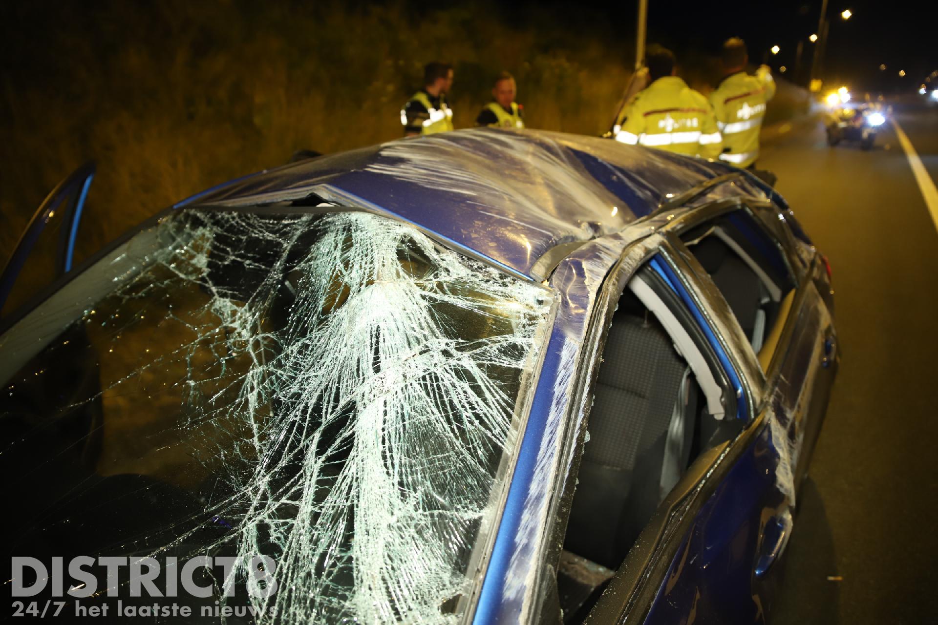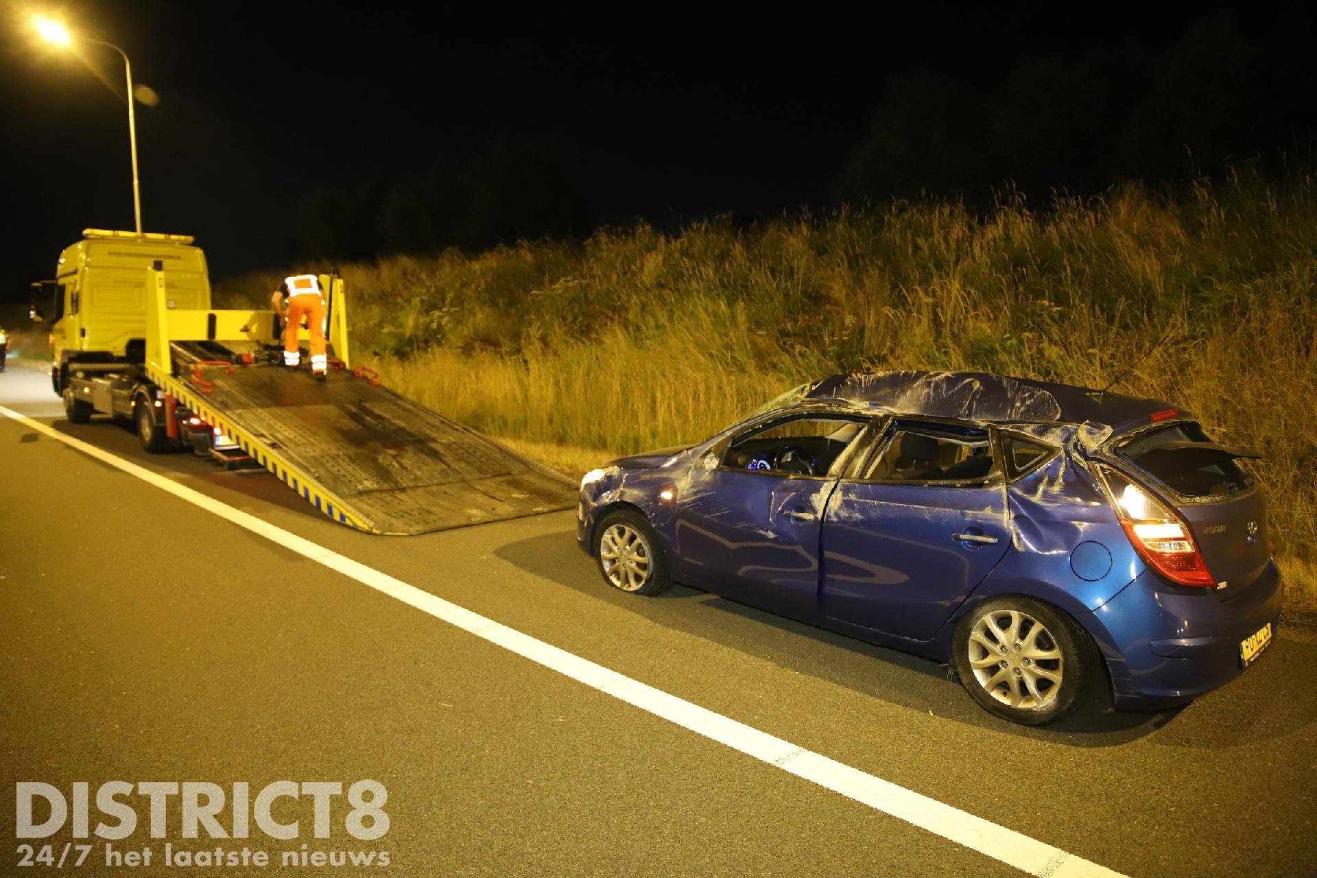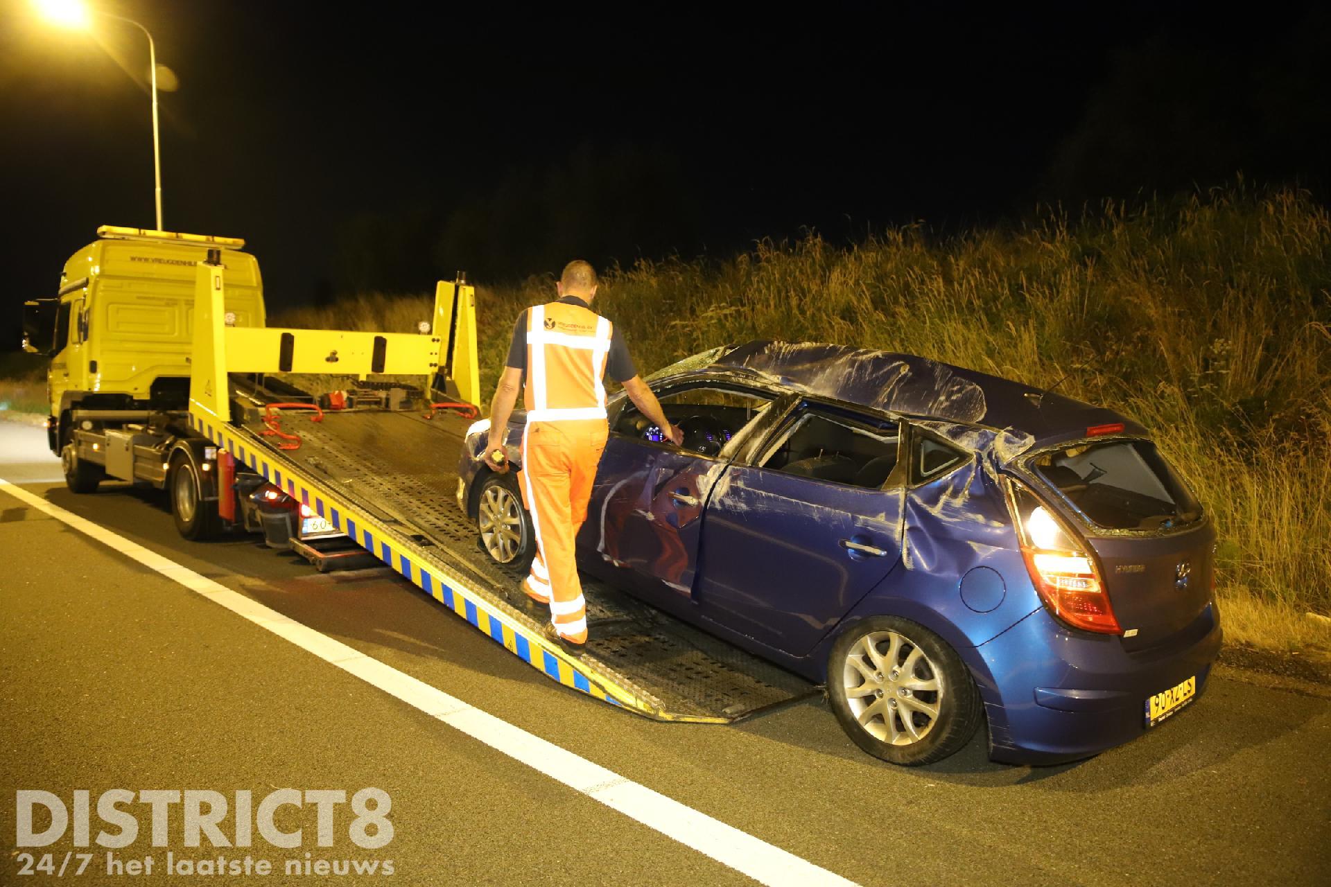 De auto, die door het ongeval hoogstwaarschijnlijk total-loss is, is door bergingsbedrijf Vreugdenhil afgevoerd.