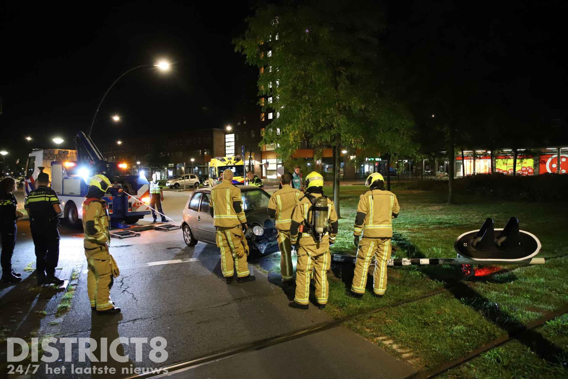 Een bergingsbedrijf zal het voertuig bergen. Het voertuig heeft flinke schade opgelopen door de harde klap.